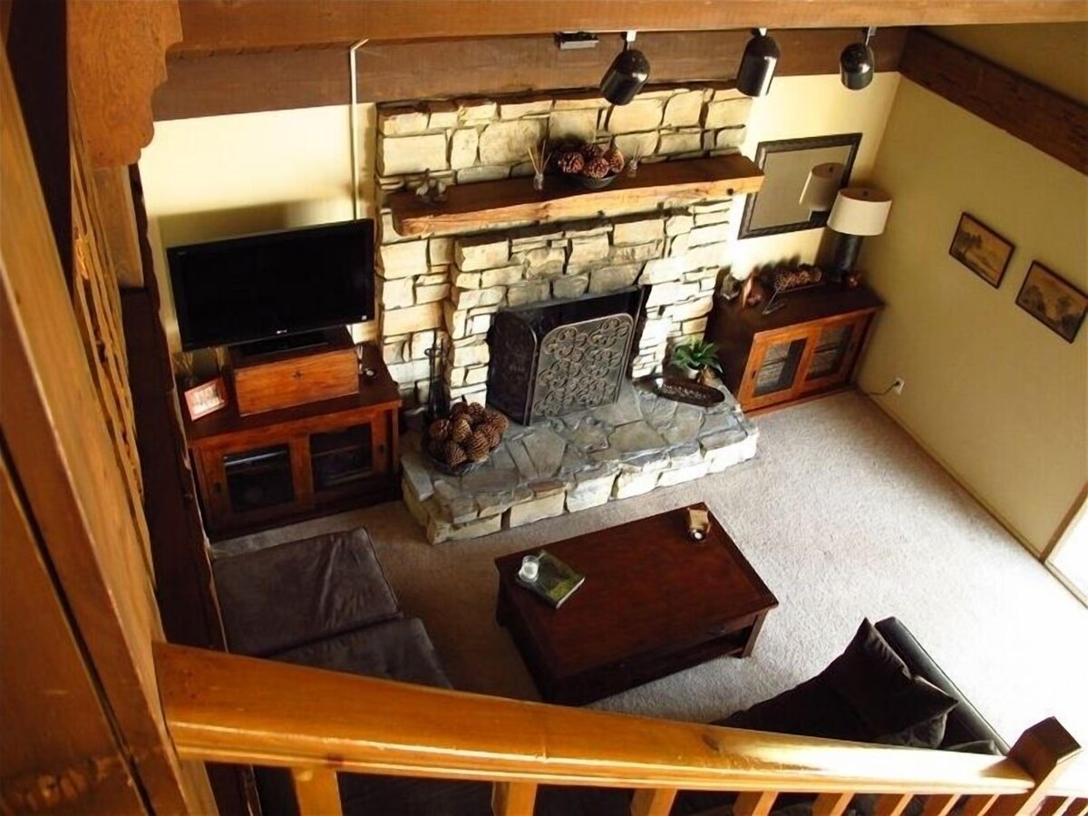 Located within several blocks to the center of The Village and just a five-minute drive to the Snow Summit Ski Lifts. Everything you will need is within close proximity once you land at this beautiful vacation rental. In the summer you can swim, boat, fish and sight-see from your own backyard. In the winter you can go skiing, snowboarding, sledding/tubing and enjoy the beautiful snow. This is lakefront at a fraction of the cost of renting lakefront. This beautiful lakefront chalet is one of three units on our property. There are two buildings on the lot. The 1st building facing the street has garages and a unit above. The rear building has two units. Our unit is the top floor of the rear building, which has no shared walls and a huge deck with unobstructed lake views. The two-story chalet feels much more like a private home. It has cathedral ceilings and tudor details. The lot is over 9000 square feet sitting 'on' the lake. There is plenty of room for activities while waiting for your next boat ride/water ski, your next big catch, snow play or simply watching the boats come and go from the nearby, adjacent marina. Bedding Configuration: The master BR has a queen-size platform bed featuring a down comforter with duvet plus down pillows with high thread count linens. The master features its own large closet with remote color 20-inch TV with Charter TV and DVD player. It also has end tables with lamps, alarm clock and antique armoire for storage of all additional linens, towels and blankets. The second bedroom has a queen-size bed with down comforter and duvet plus down pillows 'and' a matching bunk bed separated by an end table with lamp and alarm clock. A modest stackable washer/dryer is in the closet for easy storage and access. The third and fourth sleeping areas are dual lofts separated by one shared bathroom on the second floor. Each loft is open, with no walls, and has two single beds on each side sleeping four total in the loft area. There is a closet in the bathroom and a hanging rack in the hallway. The ceiling in this area is a bit lower so best for the kids in the family to enjoy or average height adults. Living Room: 40-inch Flat Screen TV with Charter, wireless internet (airport and ethernet), mac computer and DVD player. Enjoy a crackling fire in the rock fireplace on our comfortable ultra suede sectional couch. Deck: Just off the Kitchen sits the Deck, that includes views of tall pine trees and clear skies for stargazing or snowfall. Enjoy the sunset from the sit-down views, while melting away the stresses and strains of everyday life. Backyard: Oversized and huge, the backyard has room for any outdoor activity you can think of including, in the winter, making snow angels in the snow-covered backyard which lies just a few steps down from your own shared dock. Kitchen: Fully-equipped kitchen with travertine floors, dishes and settings for 12 persons, and all appliances - oven/range for big meals, microwave, toaster, dishwasher, coffee maker and a steak knife set for your steak dinners. With amazing views of the lake through the sliding windows above the sink, and all kitchen utensils, pots and pans - you'll be hard pressed to find a better-stocked kitchen. Parking: We have off-street parking for 2 cars maximum, (one garage parking spot and one driveway parking spot.) Please be mindful of noise when loading in and out. Our prices include all fees. No hidden fees.