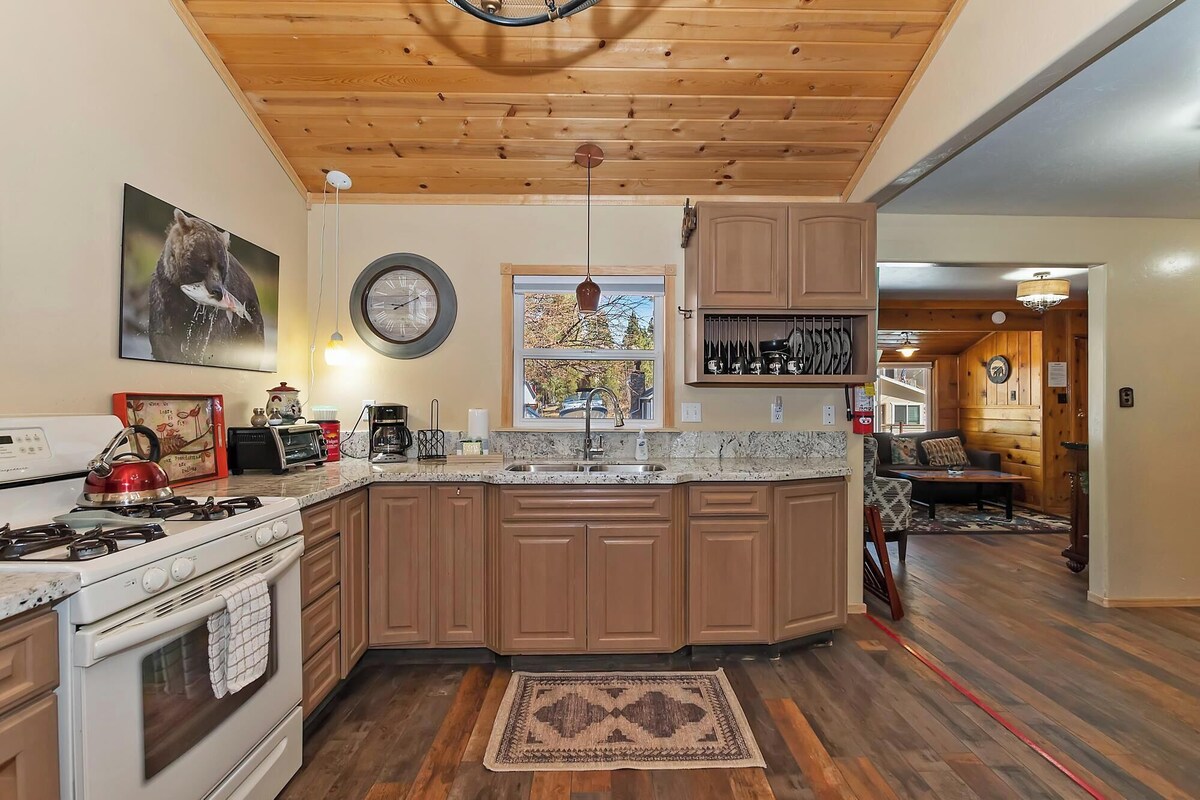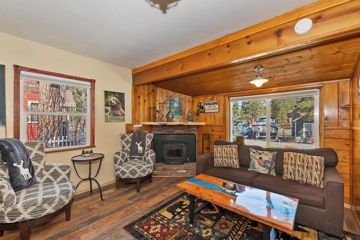 ★★ A year-round escape with rustic charm & modern comfort...Welcome to 4 Seasons Cabin, a delightful mountain retreat where classic Big Bear character meets cozy updates for a memorable getaway—any time of year! Nestled in a peaceful neighborhood near Boulder Bay, this charming home offers easy access to the lake, hiking trails, and the Village while providing a serene and private setting to relax, recharge, and reconnect. Whether you're enjoying snowy evenings by the fire or soaking in the gazebo-covered hot tub under the stars, this cabin is designed to make your Big Bear stay something special.★★ ★★ HIGHLIGHTS ★★ ✓ Convenient location just minutes from Boulder Bay, the Village, and marinas ✓ Wood-burning fireplace in the living room ✓ Cable TV, Netflix, YouTube, and DVD player ✓ Fully equipped kitchen with gas range, microwave, coffee pot & more ✓ Beautifully landscaped and fully fenced backyard with elevated terrace ✓ PET FRIENDLY ✓ Pine gazebo-covered HOT TUB for year-round enjoyment ✓ Charcoal BBQ grill ✓ Covered patio with cozy seating—perfect in any weather ✓ Two flat gravel driveways for easy parking year-round ✓ Ski racks ✓ Washer/dryer ✓ Linens and Towels Provided ★★ LIVING ROOM ★★ This warm and welcoming living room is the heart of the cabin, designed for comfort and connection. After a day on the slopes or out on the lake, gather around the wood-burning fireplace for a relaxing evening in. Whether you're watching a movie or just enjoying the mountain vibe, this cozy space invites you to slow down and settle in. ✓ Comfortable sofa sleeper and plush seating ✓ Wood-burning fireplace with rustic stone hearth ✓ Large flat-screen TV with cable, Netflix, YouTube & DVD player ✓ Open layout with views into the kitchen and dining area ★★ KITCHEN & DINING ★★ Enjoy the convenience of a well-stocked kitchen with everything you need to prepare home-cooked meals for your group. With open sightlines into the living room, the kitchen allows you to stay connected while you cook. The adjacent dining area offers plenty of room for shared meals and game nights. ✓ Gas range and toaster oven ✓ Microwave and standard coffee pot ✓ Ample counter space for meal prep ✓ Dining table with seating for everyone ★★ BEDROOMS & BATHROOMS ★★ Comfort and privacy await in two peaceful bedrooms located across two levels. Whether you're traveling with friends or family, each sleeping space is designed to feel like a restful retreat after a day of Big Bear adventures. ✓ Main Level Bedroom: Queen bed + Easy access to full bathroom with tub/shower combo ✓ Upstairs Primary Bedroom: Queen bed + Private en-suite ¾ bathroom with walk-in shower ★★ OUTDOOR SPACES ★★ Step outside into your own private oasis! The fully fenced backyard features a beautifully landscaped terrace, perfect for morning coffee or evening wine under the pines. No matter the season, the covered patio and hot tub make for the perfect mountain experience. ✓ PET FRIENDLY + fully fenced yard with mature trees and landscaping ✓ Elevated terrace for outdoor lounging ✓ Pine gazebo-covered HOT TUB for soaking in all weather ✓ Charcoal BBQ for classic outdoor grilling ✓ Covered patio with lounge seating—ideal for relaxing year-round ★★ Whether it’s snowflakes or sunshine, 4 Seasons Cabin offers the perfect setting for every season. Soak in the hot tub, gather around the fire, explore the lake, or stroll through the Village—your perfect Big Bear getaway starts here. Book your stay today and make unforgettable memories in the mountains!★★ 2025-1390 Important: Dear Traveler, you will be charged with USD 200 in case you include a Pet in your reservation as a Refundable Damage Deposit for Pets. Our prices include all fees. No hidden fees.