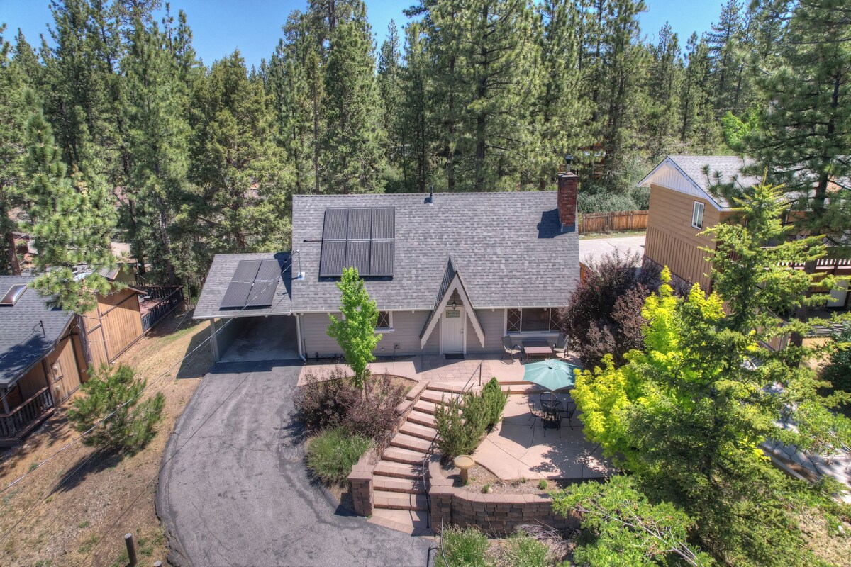 Nestled among mature pines on a private knoll, Pine Cone Alley is less than a mile from the lake, Snow Summit, and Bear Mountain. Walk to nearby restaurants and shops or take a quick five-minute drive to The Village. The easily accessible road and peaceful neighborhood make it perfect for family strolls.
