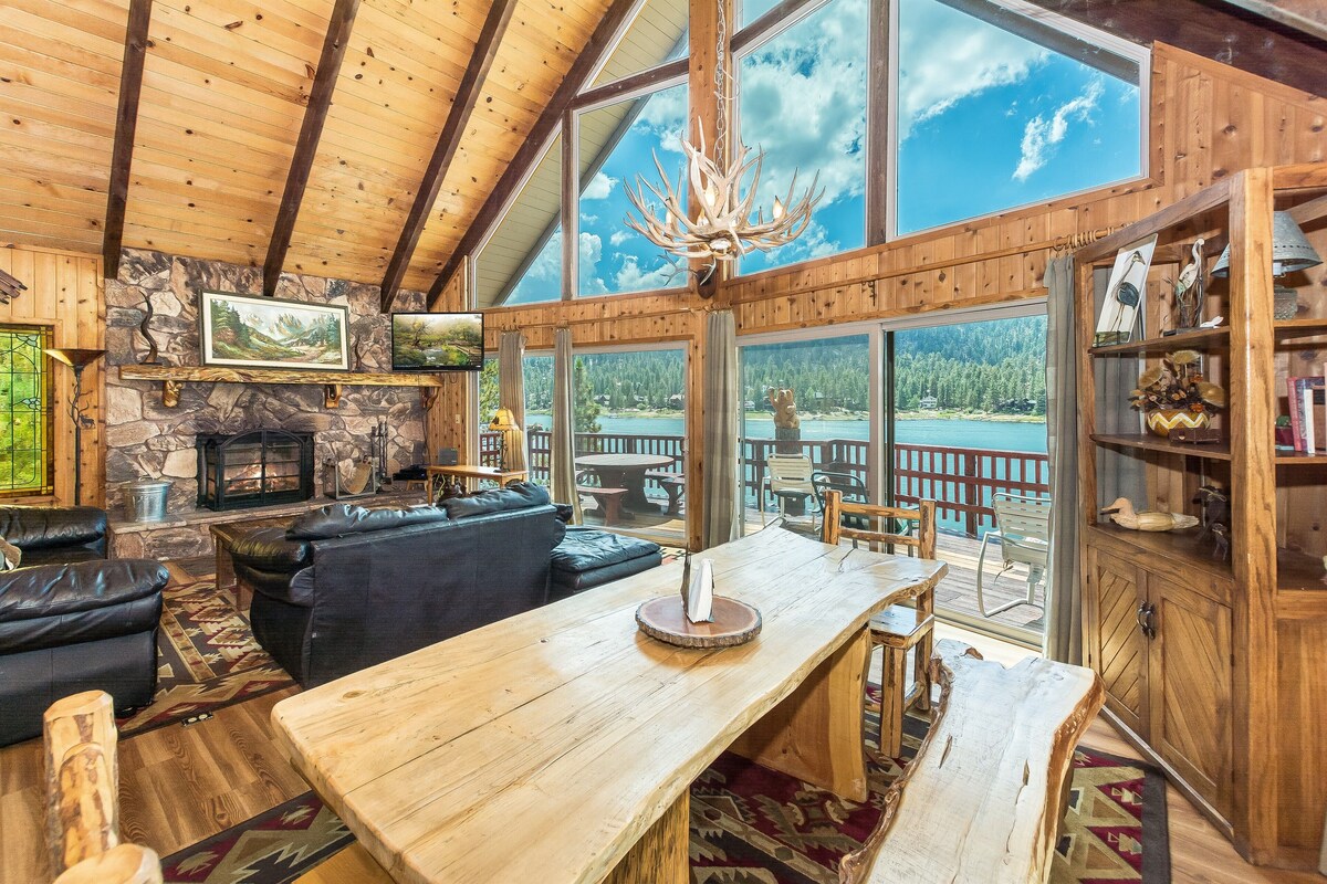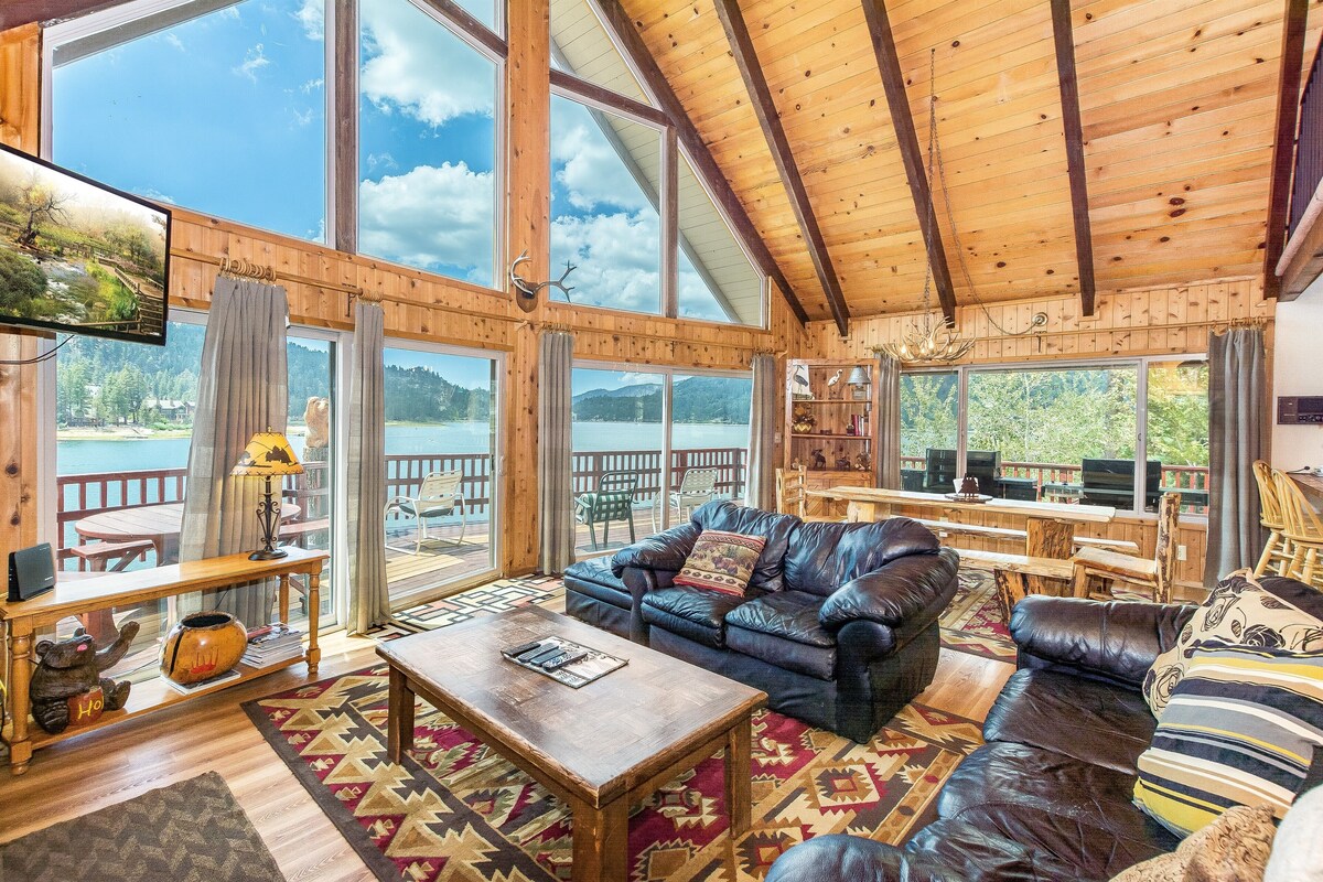 This cabin is not only a lakefront; it elevates over the lake and has the best water views Big Bear has to offer. With its own private dock and situated on almost a 1/2 acre with a fully fenced yard, this unique property has much to offer. In the winter, enjoy the views from your private hot tub overlooking the lake and snowcapped mountains. This cabin is very spacious and offers sleeping for 10, as well as a game room with a pool table. Big Bear has plenty of fun things to do, but you may just find yourself enjoying the views from this cabin all day long.