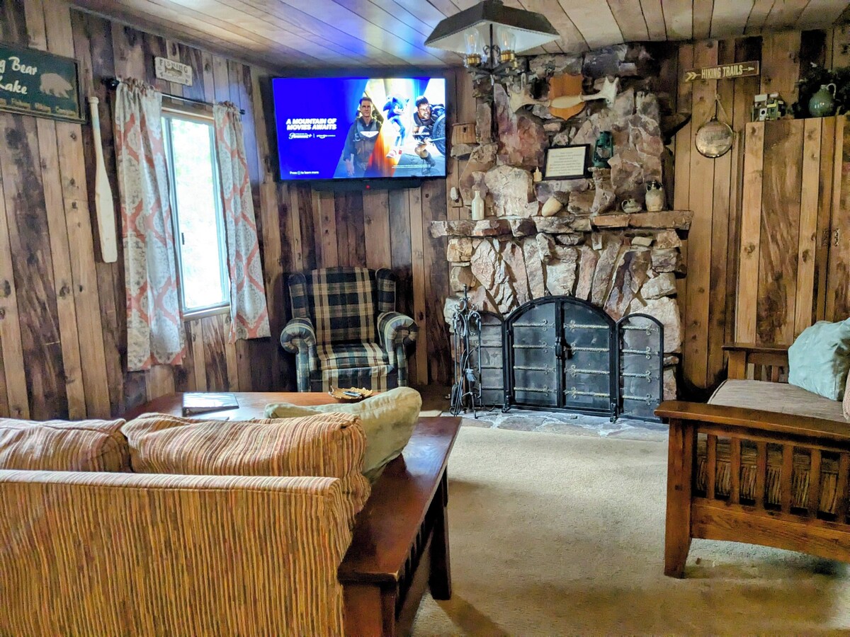 Free Snow Play just 2 doors away from your front door as pictured above! Need a get away? Welcome to our second home we call \ Whether you are looking for a quiet relaxing family getaway or an adventurous ski, lake or hiking vacation, the Georgia Peach is close to it all and can not be beat. The Georgia Peach was built in the 1920's when Big Bear Lake was a roaring gold mining boom town. In the 80's the Peach had some major additions added including a master bedroom with bath and a garage which doubled it's size. The Peach is located on Georgia Street and is one of the most beautiful streets in Big Bear Lake. At the turn of the last century when Big Bear was a gold boom town, Georgia Street was close enough to the town (now called the Village) for the miners to walk to and from, but far enough away, that the law didn't care what went on. It is said that back in the 1920's and 1930's that Georgia street was considered the wild west of big bear. Now this quiet historic street where the Georgia Peach sits, boasts peace and serenity. The perfect place to get away from the traffic and noise of the city. You will first notice the beauty of Georgia street when you enter it. The tall trees that flank it on both sides block the sun and give it a storybook feel. When the winds blow, the trees sway and it sounds like the forest itself is speaking to you. When you first arrive at the Peach you will notice how quiet it is except for the birds. The sweet smell of the mountain air will let you know you are truly in the national forest. We are honored to be mentioned in 2021 as One Of The \ by trip101.com (https://trip101.com/article/vacation-rentals-in-big-bear) We have free Sledding just two doors up , a few steps from our front door at the top of the street. Save your money and sled the day away with the whole family. You can see pictures of this area in our gallery. The \ is a hiking trail just above the Peach that can take you anywhere you want to hike on the mountain. With great views and trails that go everywhere, bring you camera because you are about to be WOWed! You could also explore the world of geocaching or just take a leisurely walk with your kids or dogs. The tail is for all types of hikers. We are dog friendly. We have water and pet food bowls so you have one less thing to bring for your pet. Don’t forget the leash, but if you do, we have you covered. The Peach is within walking distance to many of the fun spots in Big Bear. You can walk to the ski slopes or even mountain bike there to enjoy the trails. The lake is at the bottom end of the street, and you could walk to the village where you can eat and shop. Hours of great family fun await you at the Georgia Peach. The Peach is a 2 story rustic cabin approximately 1300 square feet with 2 bedrooms, 3 beds that can sleep 6 people comfortably. We not only wash all the linens and bedding but sanitize before the guests arrive. The downstairs bedroom has a queen size bed, dresser, closet and wall mounted TV. There is also a bathroom with shower located downstairs. The huge upstairs bedroom has a king size bed, as well as full size bed with dressers and closet. There is also a full bathroom with bathtub shower combo upstairs. The huge room upstairs is perfect for the kids to share and have access to a bathroom. With a tank-less water heater no one has to worry about getting a cold shower or bath. The living room and both bedrooms have flat screen high definition televisions with free local TV, and streaming services. There is a full kitchen with a dishwasher and the basic essentials. We provide a coffee pot as well as a coffee bar, which includes teas and fun stuff for the kids. The kitchen table can expand to accommodate 6 guests. We have included a professional Poker top to fit over the kitchen table for the poker players out there. This can be found under the downstairs bed. Nothing beats a great Poker Party in the woods. There is also a washer and dryer for your convenience. There are lots of great activities to enjoy inside the Peach, including a Foosball table, watch TV or a movie. We also include an Ethernet cable and an HDMI cable to (Bring Your own Gaming System) plug your favorite gaming console in for hours of gaming on the Den TV. Outside the peach there is a long driveway. This driveway can accommodate trailers. The Peach also has a garage and a carport to keep your cars out of the snow and the rain. The garage is a great place to store your bikes and kayaks between rides. Imagine sitting under the stars in your very own hot tub after a long day of skiing or biking or just hanging out. There is nothing better than enjoying the quiet grandness of the forest while relaxing in a bubbling hot tub. In the summer you can walk to the lake and enjoy a nice sunny day on the sandy beach and if you get too hot jump right in. In the winter you can enjoy the slopes near by. Snow Summit also has a free shuttle to Bear Mountain. To make sure you and your family and friends have a safe vacation, the Peach is has smoke detectors and carbon monoxide detectors throughout the house. Rest assured as we do have security cameras that cover the outside of the home for your safety. For security purposes, we have 3 cameras outside of the home. One is facing the front entry of the home including the upper driveway and the other two look up and down the driveway capturing the side door, garage door, Driveway East, Driveway West and carport. 1. Outdoor camera front (covering entry area) 2. Outdoor camera driveway (covering driveway entry East) 3. Outdoor camera driveway (covering driveway West and carport) We also take care of your household trash. Not many other rentals do, so you might want to ask. Nothing better than leaving the mountain and not having to wait in a trash line or worry about where you are going to dispose of your weekends trash stinking up your car. Our prices include all fees. No hidden fees.