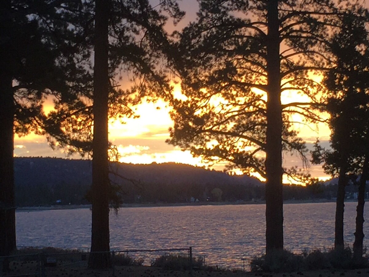 Eagle Cove Retreat is located directly across the street from the water’s edge in Big Bear’s most prestigious neighborhood, Eagle Point. You will have direct lake access by walking just two minutes down the street to the public access road. Come and enjoy our best of Big Bear UNOBSTRUCTED, SPECTACULAR, PANORAMIC LAKE VIEWS from the home’s upstairs great room that features vaulted ceilings, a spacious open floorplan, and floor to ceiling windows. You may also choose to enjoy the view from the huge front balcony that can be accessed from both the great room and master suite or the downstairs game room. The breathtaking lake views are sure to impress even the most particular of travelers. The home is spacious, well maintained, tastefully decorated and we have VERY HIGH CLEANING STANDARDS, as reflected in our very strong 4.9 review average. As a convenience to our guests, our property manager is on call daily to answer any questions that you may have during your stay. Eagle Cove is a two story luxury home boasting an open concept, spacious floor plan. The expansive interior allows plenty of room to accommodate large rental parties and multiple families traveling together. The upstairs great room and downstairs game room offer two large, separate living areas for guests to spread out. The kids can challenge each other to a game of pool or Pac-Man in the game room, while the adults enjoy a quiet dinner in the great room aside the sweeping lake views. Both rooms feature comfortable couches, smart tvs, floor to ceiling wood burning fireplaces to complete the modern, high-end, yet cozy atmosphere. The Pac-Man machine features 60 old school games, super fun for kids and adults alike! The home’s kitchen is conveniently located just off of the great room. It is clean, fully equipped with stainless steel appliances and very well stocked with all of the comforts of home. Eagle Cove Retreat is also a rare find for pet owners that are looking for a luxury home that allows their furry family members! The yard is fully gated and pet safe. We welcome up to three pre-approved dogs with a pet fee - $100 for one or two dogs, $125 for our max of three dogs. Centrally located, Eagle Cove Retreat is in the heart of Big Bear Lake and close to all of the best activities that Big Bear Lake has to offer! Big Bear Village: 1.5 miles Meadow Park: 0.5 miles Snow Summit: 1.5 miles Bear Mountain: 3 miles Alpine Slide/Magic Mountain Snow Play: 0.8 miles Big Bear Snow Play: 2.5 miles Vons and Stater Brother’s Markets: 1.5 miles **Because of the very high cost of utilities on the mountain, groups of 10 to 12 guests are subject to $75 large party fee. For a party of 12, that is only $6.25 flat additional per person, but it allows us to accommodate very large groups while keeping our nightly rates low. The upstairs/downstairs spacious/open floorplan works perfect for large groups and three showers makes getting ready in a large group more realistic. Fee charged after booking. License # 2021-5515 We have exterior cameras to monitor the home's security when unoccupied and automatic snow removal in driveway during the winter season. Our prices include all fees. No hidden fees.