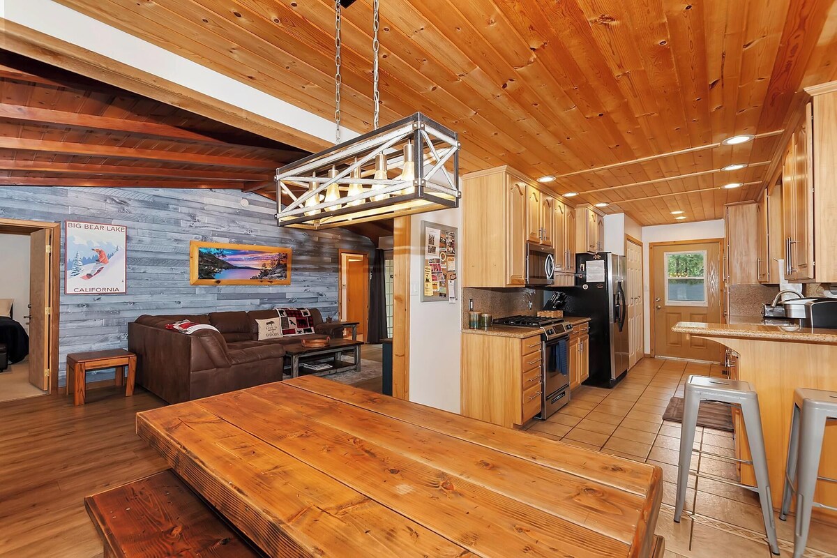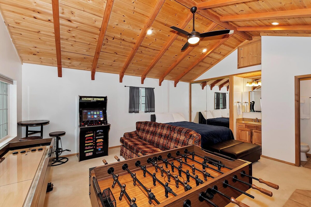 ★★Welcome to Bear Stone Lodge, a charming single-level mountain home just a short stroll from Snow Summit Ski Resort. With upgraded interiors, family-friendly amenities, and a spacious backyard with a private hot tub, this cozy lodge has everything you need for a relaxing Big Bear escape — all on one easy-access level.★★ ★★ HIGHLIGHTS & AMENITIES ★★ ✓ Walk to Snow Summit Ski Resort ✓ Single-story layout — easy access, no stairs ✓ PET FRIENDLY ✓ Cozy living room with wood-burning fireplace & large flat screen TV ✓ High-speed Wi-Fi & TVs in multiple rooms ✓ Game room with foosball, shuffleboard, arcade machine & sleeping options ✓ Upgraded galley kitchen with stainless steel appliances ✓ Keurig coffee machine, gas range, dishwasher, microwave & more ✓ Farmhouse-style dining table for group meals✓ Private hot tub & spacious backyard with patio seating ✓ Custom-built 8’ outdoor dining table with matching benches ✓ Horseshoe pit & seasonal cornhole set (not available in winter) ✓ Natural gas BBQ grill on the deck ✓ Washer and Dryer ✓ Linens and Towels Provided ★★ LIVING ROOM ★★ This welcoming living room is the heart of the home — perfect for winding down after a day on the slopes or gathering for a game night with loved ones. A cozy space to relax, reconnect, and recharge. ✓ Large leather sectional sofa for group lounging ✓ Wood-burning fireplace for warm, mountain ambiance ✓ Big flat screen TV with streaming access ✓ Direct patio access for indoor-outdoor flow ✓ Inviting space for movie nights or quiet mornings with coffee ★★ KITCHEN & DINING ★★ Cook, dine, and gather with ease. The newly upgraded galley-style kitchen offers everything you need to prepare home-cooked meals, snacks, or après-ski treats. ✓ Stainless steel appliances ✓ Gas range/oven combo with microwave ✓ Side-by-side fridge/freezer ✓ Dishwasher & trash compactor ✓ Keurig coffee machine & toaster ★★ GAME ROOM ★★ It’s the perfect space for kids, teens, or extra guests! Let the fun continue indoors. The bonus game room has something for everyone: ✓ Foosball table ✓ Shuffleboard table ✓ Classic arcade machine with multiple games ✓ Queen bed, queen sleeper sofa & twin sleeper ottoman ✓ Wet bar and large flat screen TV ✓ Private bathroom for convenience ★★ BEDROOMS & BATHS ★★ All the comfort of home, all on one level. No stairs to climb — just walk in and unwind. ✓ Master Bedroom – King bed, en suite full bathroom, flat screen TV, and direct deck access ✓ Second Bedroom – Twin-over-twin bunk + full bed ✓ Game Room Sleeping Options – Queen bed, queen sleeper sofa & twin sleeper ottoman ✓ Two full bathrooms total ★★ OUTDOOR LIVING ★★ Enjoy Big Bear’s beautiful outdoors right in your own backyard. It’s the perfect setting for summer fun or relaxing après-ski evenings. ✓ Large private yard with hot tub and patio seating ✓ Custom-built 8’ dining table with matching benches ✓ Horseshoe pit & cornhole set (note: cornhole not available in winter) ✓ Natural gas BBQ grill on the deck ★★Whether you're hitting the slopes, gathering for a family weekend, or simply enjoying the fresh mountain air, Bear Stone Lodge offers comfort, convenience, and charm in every season. Walk to the lifts, soak in the hot tub under the stars, and make lasting memories in this thoughtfully upgraded retreat.★★ 2025-1852 Important: Dear Traveler, you will be charged with USD 200 in case you include a Pet in your reservation as a Refundable Damage Deposit for Pets. Our prices include all fees. No hidden fees.