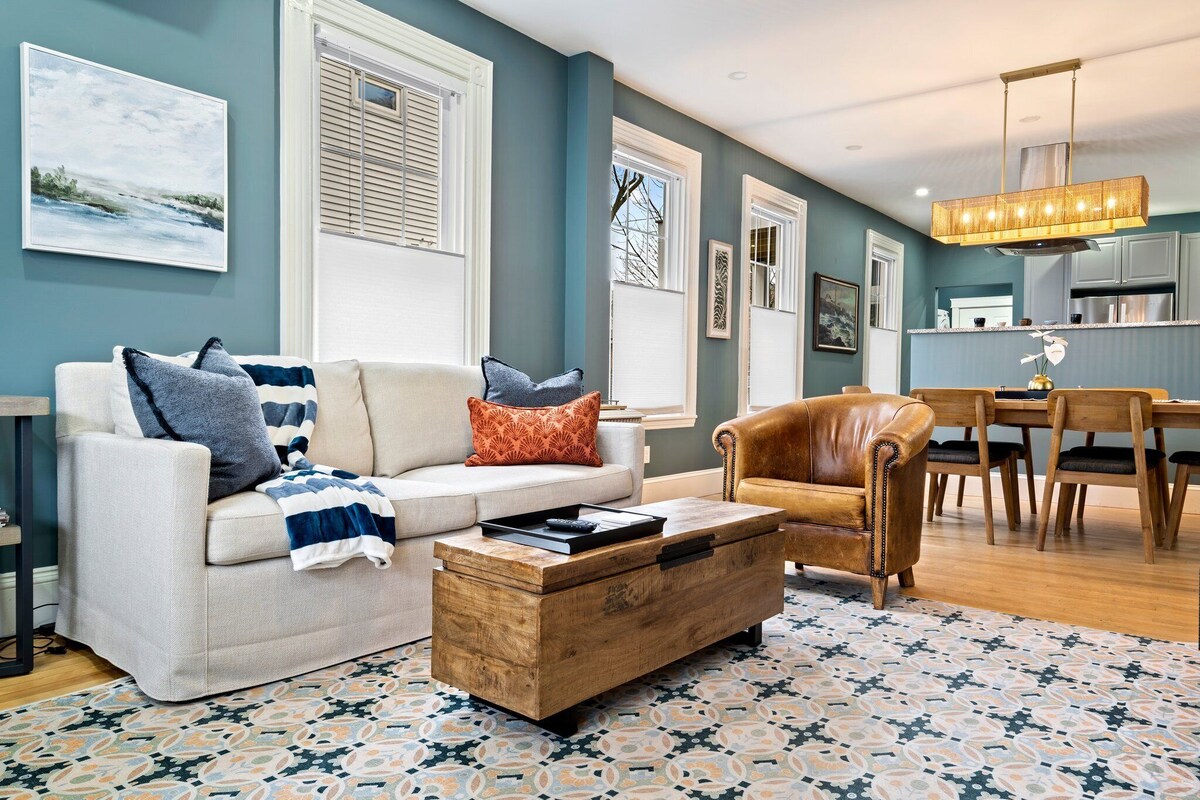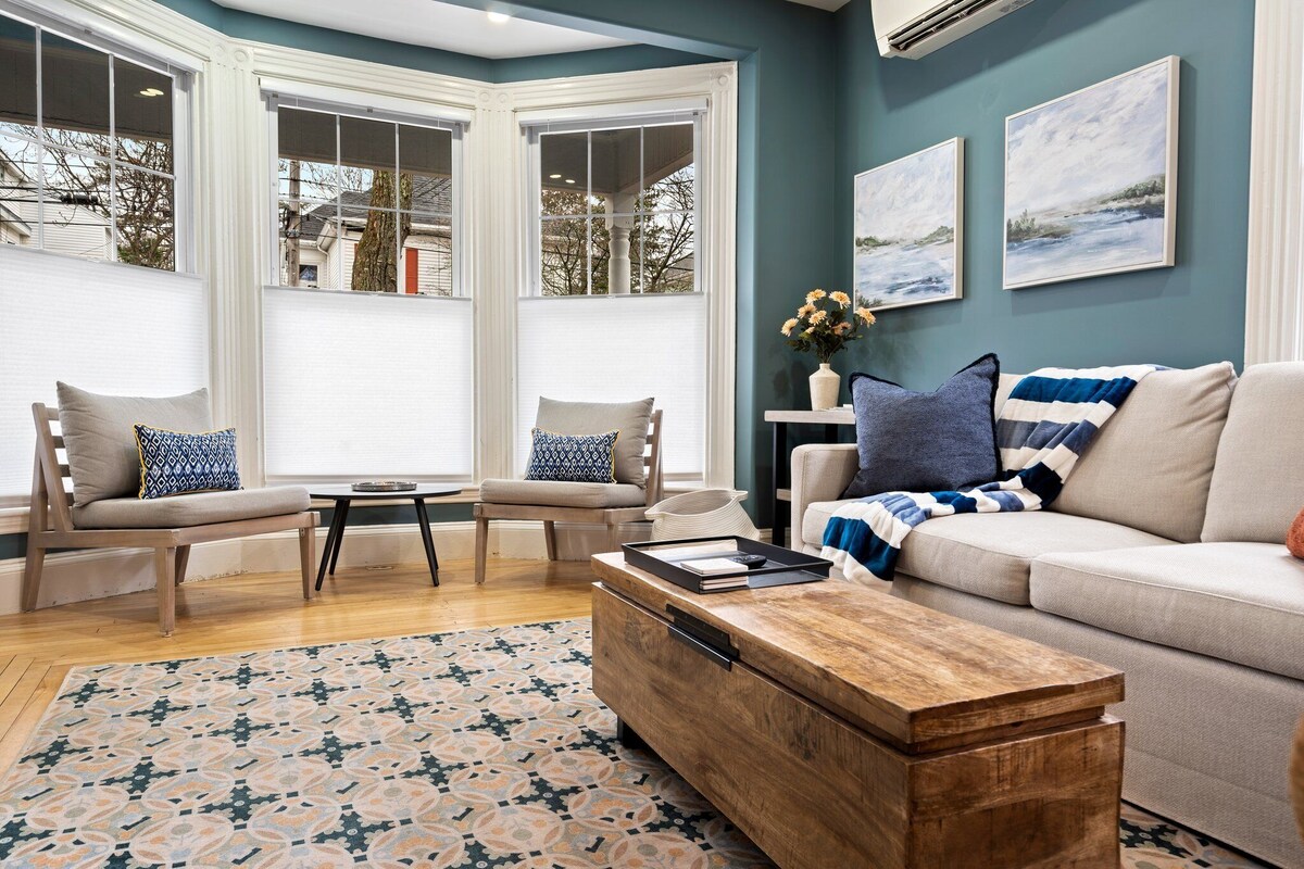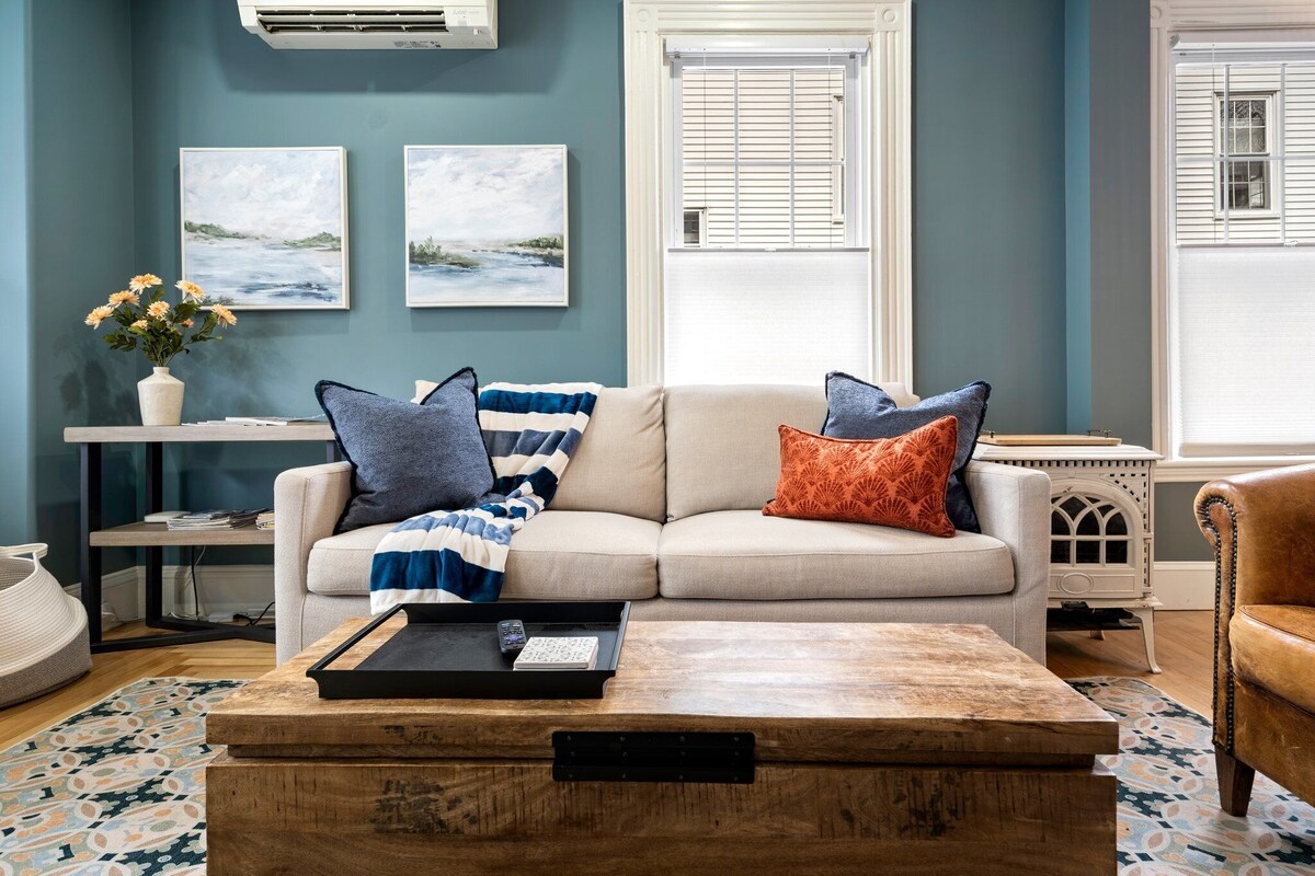 Stay in style at this newly remodeled (May 2025) 3-bedroom, 2-bath apartment, perfectly located just 5 minutes from downtown Portland in a quiet, walkable neighborhood. With modern finishes, flexible sleeping arrangements, and space for up to 8 guests, it’s ideal for both quick getaways and extended stays. Key Amenities • Sleeps 8: 1 king bed, 2 queen beds, + queen air mattress • Fully equipped kitchen: Stainless appliances, granite counters, butcher block island • 2 full bathrooms: Clawfoot soaking tub + walk-in showers • Smart TVs + high-speed Wi-Fi • Dedicated workspace: Natural light & desk • In-unit washer & dryer • Free on-site parking • Climate control: Heat pumps, baseboard heating, ceiling fans • Coffee & tea provided • Family-friendly: Pack ’n play available The Space This bright, stylish first-floor apartment offers all the comforts of home with a fresh, modern touch, perfect for travelers who value both convenience and charm. Living Area Comfy sofa & leather armchair Two window seats, ideal for reading or morning coffee Smart TV for streaming Bedrooms & Sleeping Setup Bedroom 1: King bed, large closet, ceiling fan Bedroom 2: Queen bed, Smart TV, ceiling fan Bedroom 3: Queen bed, stylish wood frame with built-in drawers Additional sleeping: Queen air mattress available upon request Family-friendly: Pack ’n play provided Kitchen & Dining Granite counters + butcher block island Stainless steel appliances & dishwasher Double oven gas range & toaster oven Keurig coffee maker (coffee provided) Dining table for 6 under a modern chandelier Bathrooms Main bathroom: Clawfoot soaking tub + separate glass walk-in shower Second bathroom: Modern walk-in shower, updated fixtures Workspace & Extras Small desk in laundry area with great natural light In-unit washer & dryer for extended stays Fast Wi-Fi throughout Climate control with heat pump, baseboard heating & ceiling fans Guests have private access to: Entire first-floor apartment Private entrance All bedrooms, bathrooms, kitchen, and living spaces On-site parking Location Highlights Downtown Portland: Dining, shopping, and the Old Port (~8 min drive) Back Cove Trail: Scenic walking and biking (~15 min walk) Portland Museum of Art: Cultural hub (~10 min drive) Eastern Promenade: Harbor views & park space (~10 min drive) Easy access to I-295 for commuting or exploring greater Maine (~2 min drive) Additional Note: For reservations of 29 nights or longer, a security deposit will be required. This is a standard policy for extended stays and helps cover any potential damages or excessive wear and tear. The deposit will be collected prior to check-in and is fully refundable after your stay, provided the property is left in good condition. We appreciate your understanding and cooperation, and we look forward to hosting you. Security Deposit: $1050 Our prices include all fees. No hidden fees.