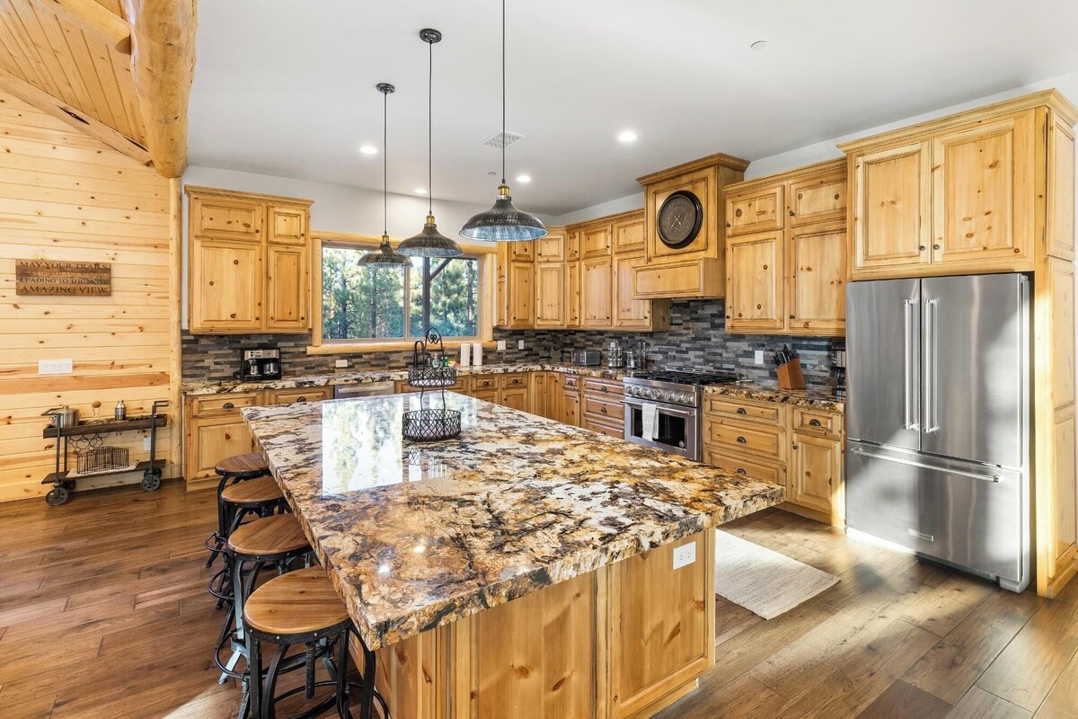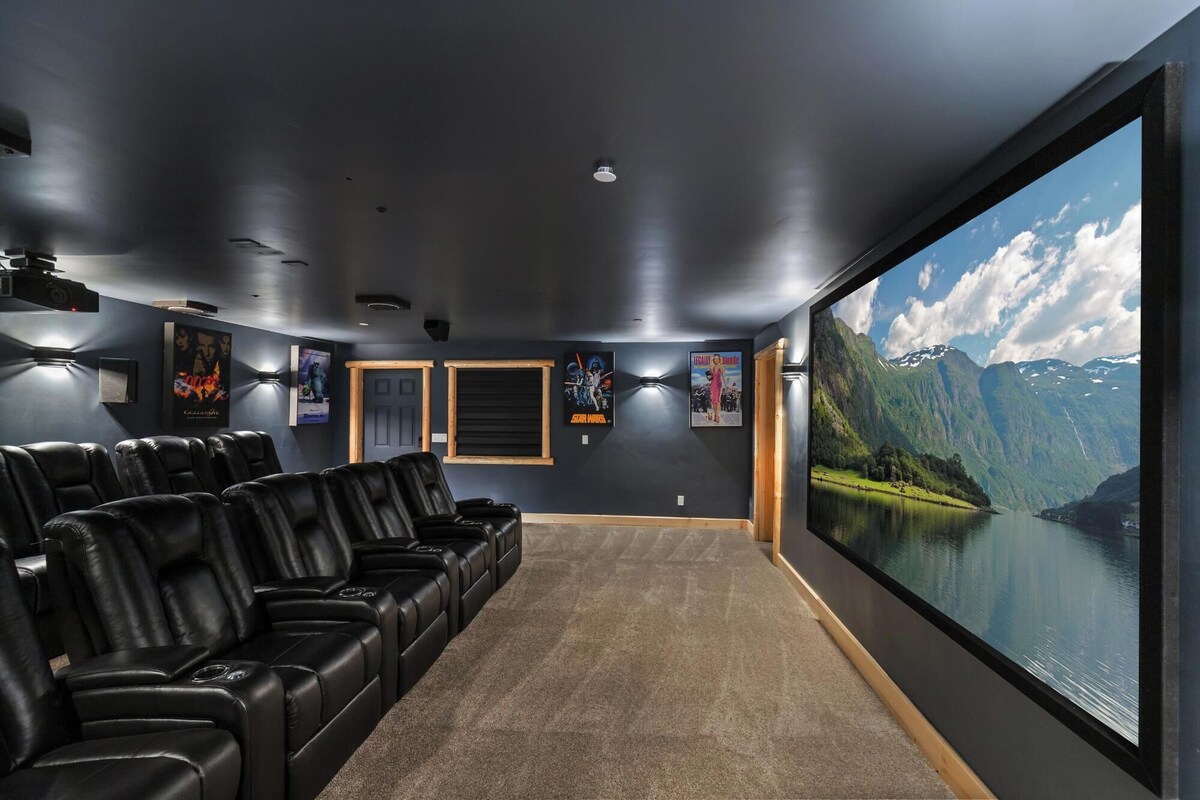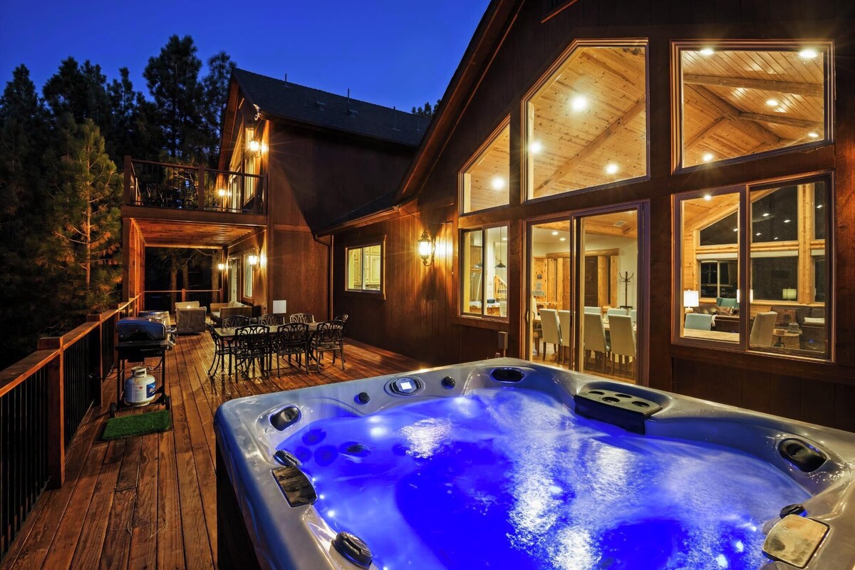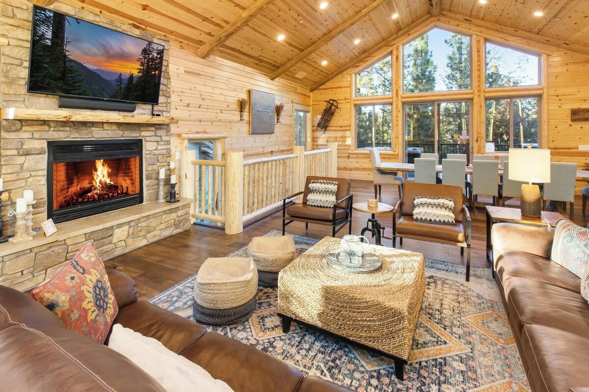 ★★Discover Your Dream Mountain Paradise - Luna Lodge! If you're searching for a luxurious mountain escape that perfectly balances log cabin charm with modern opulence, look no further and welcome to Luna Lodge! Located in the prestigious Heavenly Valley Estates neighborhood, this stunning log cabin offers over 5,000*** square feet of living space with all the contemporary comforts you desire. With six generously appointed bedrooms, each featuring en-suite bathrooms, a gourmet chef's kitchen, an expansive open floor plan, a game room, and a state of the art theater room, this retreat is the epitome of mountain luxury. Luna Lodge will captivate you with mountain-inspired elegance and an array of exceptional amenities, this cabin promises an unforgettable stay!★★ ★★ Highlights ★★ ✔ Over 5,000*** Sq Ft of Open Living Space w/ Vaulted Ceilings & Impeccable Craftsmanship ✔ Prestigious Heavenly Valley Estates Neighborhood, Close to All Big Bear Amenities ✔ Six Bedrooms, Each w/ En-Suite Bathrooms + Smart Flat Screen TV’s ✔ Gourmet Chef's Kitchen, Fully Stocked w/ Top-Of-The-Line Appliances, Gas Oven/Range, Coffee Maker, Toaster, Espresso Machine + Drink Cart ✔ High Speed Internet + Smart Flat Screen TVs w/ Soundbars & Streaming Services ✔ Game Room w/ Pool Table, Foosball Table, Shuffleboard, Sectional Couch + Smart Flatscreen TV + MORE ✔ State-of-the-Art Movie Theater Room w/ Concession Stand Area + Beverage Refrigerator, Microwave, and 11 Electric Reclining Theater Seats w/ Cupholders ✔ Outside Deck Area w/ Tree’d Privacy, Hot Tub, Propane BBQ, Outdoor Dining + Seating ✔ Laundry Room w/ Washer + Dryer ✔ Pet Friendly! ✔ Linens & Towels Provided ★★ Inviting Living Spaces ★★ As you step inside, the vast living spaces will immediately captivate you. The open floor plan, vaulted ceilings, and rich wood accents create a warm and inviting atmosphere. The living room is the perfect place to unwind, offering a gas fireplace surrounded by 2 leather couches + 2 leather sitting chairs, enjoy the relaxing environment & watch your favorite shows or movies on the 75” Smart Flat Screen TV w/ Soundbar. ✔ Open Floor Plan, Vaulted Ceilings, Exquisite Craftsmanship ✔ Rock Gas Fireplace + 2 Leather Couches & Side Chairs ✔ 75” Smart Flat Screen TV w/ Soundbar ✔ High End Mountain Decor & Finishings ★★ Gourmet Kitchen & Dining ★★ Enjoy hosting your group for the ultimate gatherings in the gourmet chef's kitchen and dining area. Combining these spaces creates a welcoming setting for quality time with family and friends. The large solid wood dining table comfortably seats 12, while an additional 4 barstools are available at the oversized kitchen island. The gourmet kitchen is a dream for culinary enthusiasts, offering top-of-the-line appliances, granite countertops and wine refrigerator! ✔ Gourmet Chefs Kitchen Fully Stocked w/ Top-of-the-Line Appliances, Gas Oven/Range, Espresso Machine, Coffee Maker, Toaster, Wine Refrigerator ✔ Oversized Kitchen Island w/ Granite Countertops + Breakfast Bar w/ 4 Barstools ✔ Large Solid Wood Dining Table w/ Seating for 12 ✓ Laundry Room + 1/2 Bath ★★ Six Luxurious Bedrooms ★★ Luna Lodge offers six well appointed bedrooms, each featuring its own en-suite bathroom. Every bedroom is tastefully decorated with premium bedding and linens to ensure your utmost comfort and relaxation during your stay. This cabin is well thought out to accommodate your group's needs with ease, whether you have multiple families or a large group of friends. ✔ Master Bedroom 1: Main Level, French Door Entry, King Size Bed, Sleeper Sofa, Gas Rock Fireplace, Working Desk Area, Smart Flat Screen TV, Sliding Glass Doors to Back Deck, Walk-In Closet, Large En-Suite Bathroom w/ Freestanding Soaking Tub, Walk-In Glass Enclosed Shower, Double Sink Vanity ✔ Master Bedroom 2: Upper Level, King Size Bed, Gas Rock Fireplace, Smart Flat Screen TV, Sliding Glass Doors to Upper Deck, Walk-In Closet, Large En-Suite Bathroom w/ Freestanding Soaking Tub, Walk-In Glass Enclosed Shower, Double Sink Vanity ✔ Bedroom 3: Upper Level, Twin over Full Bunk Bed, Walk-In Closet, En-Suite Bathroom w/ Single Sink Vanity + Walk-In Glass Enclosed Shower ✔ Bedroom 4: Upper Level, Queen Size Bed, Smart Flat Screen TV, Walk-In Closet, En-Suite Bathroom w/ Single Sink Vanity + Walk-In Glass Enclosed Shower ✔ Bedroom 5: Lower Level, King Size Bed, Smart Flat Screen TV, Glass Sliding Doors to Lower Level Exterior, En-Suite Bathroom w/ Single Sink Vanity + Walk-In Glass Enclosed Shower ✔ Bedroom 6: Lower Level, King Size Bed, Smart Flat Screen TV, Glass Sliding Doors to Lower Level Exterior, En-Suite Bathroom w/ Single Sink Vanity + Walk-In Glass Enclosed Shower ★★ Outdoor Paradise ★★ Stepping outside, you'll discover 2 levels of open decking surrounded by mature pines. The ultimate place to relish in the beautiful mountain surroundings and breathe the crisp mountain air. Enjoy grilling on the propane BBQ, sipping your morning coffee at the outdoor dining table or stargaze from the hot tub after a long day of adventures, the outdoor deck space is perfect for peaceful mountain relaxation. ✔ 2 Levels of Serene Decking w/ Privacy From Mature Pine Trees ✔ Outdoor Dining Table + Propane BBQ ✔ Hot Tub ✔ Ample Seating ★★ Game Room & Theater ★★ Entertainment is what sets Luna Lodge apart from the rest. Revel in multiple entertainment options with the delightful game room offering a variety of games and activities or the state-of-the-art movie theater room which is perfect for movie nights and cinematic experiences. Whether you're having fun in the game room, enjoying a thrilling movie in the theater, or taking in the natural beauty from the deck, Luna Lodge ensures a memorable mountain vacation for your group. ✔ Game Room w/ Pool Table, Foosball, Shuffleboard, Sectional Couch, Smart Flat Screen TV w/ Soundbar ✔ State-of-the-Art Movi