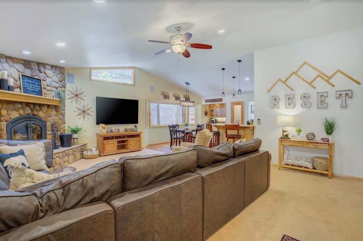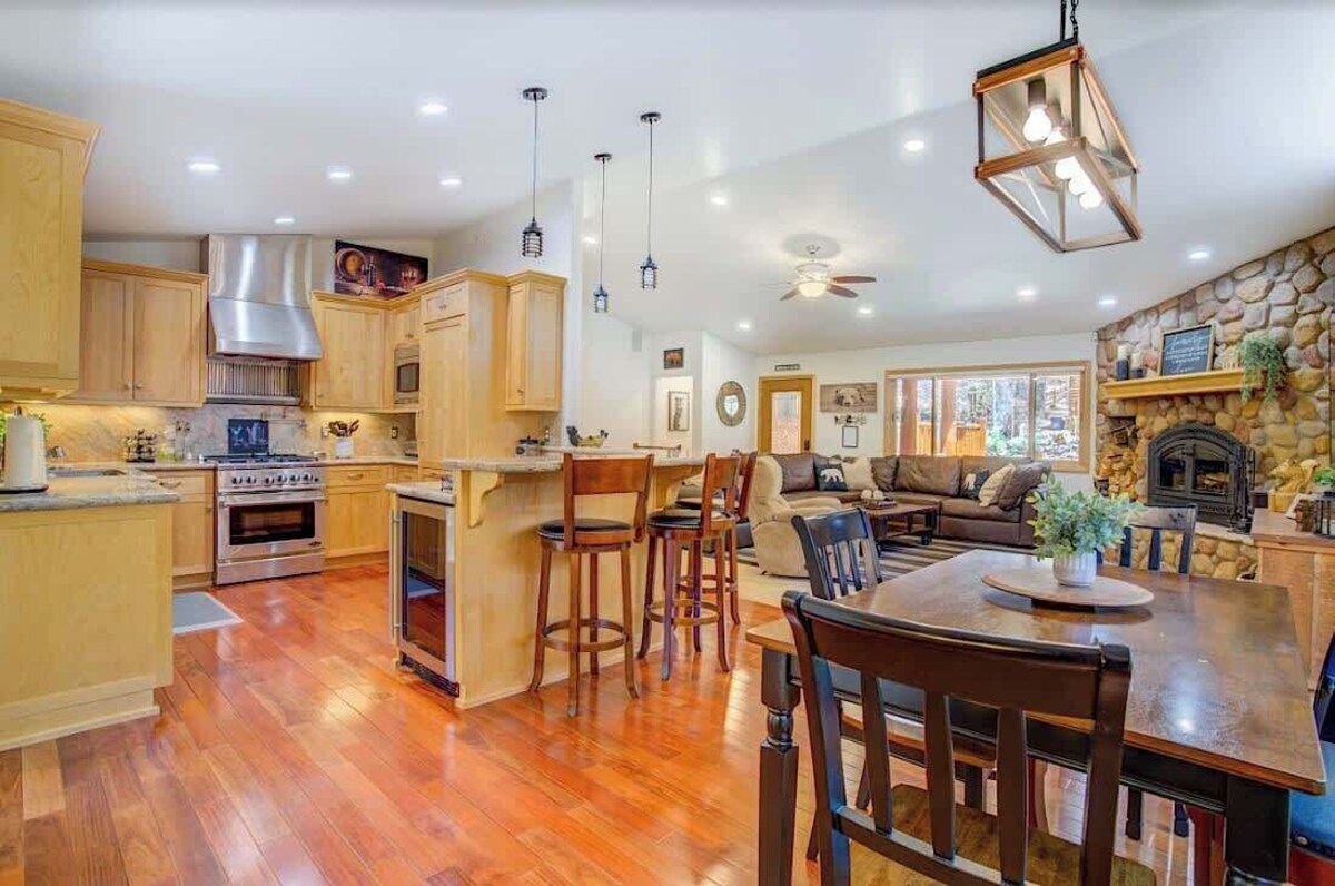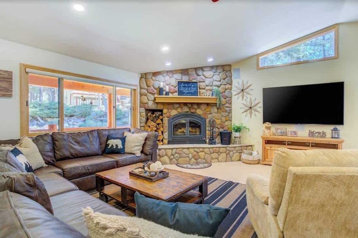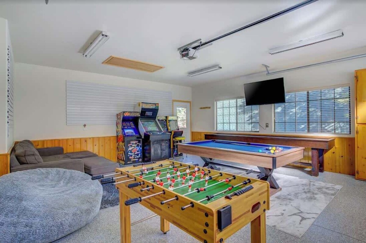 Summary: Welcome to Big Bear Reset. The perfect mountain getaway tucked in the trees to reset and unwind! We are located .6 to the new Big Bear Zoo, and .8 to Bear Mountain Resort. - Sleeps 8 - Large deck - BBQ grill - Spa - Large quiet lot - Wood burning fireplace - Large game room - Full kitchen with oven, fridge, dishwasher and beverage fridge. - Laundry room - Central heating The Space: The Home- Single story 1680 sq feet, with carpet and hardwood flooring throughout. This home has 3 bedrooms, 2 bath, gourmet kitchen, washer dryer. Large game room with all types of games for the youngest visitor and oldest! Parking for 2 cars only Bedroom 1(master bedroom, attached bath)- includes a king bed, wood burning stove, sitting nook, large closet, dresser, 55\ smart tv and dresser. Bedroom 3- Includes 2 sets of twin bunk beds, and 43\ television for streaming all your favorite apps, and dvd player. Fireplace- Natural wood burning fireplace. We do not provide wood. It can be purchased and delivered to the home. Reach out to arrange drop off. Game Room- Converted 2 car garage. Has everything to keep the youngest to seasoned traveler entertained. Pool table, arcade games, and 55\ ,