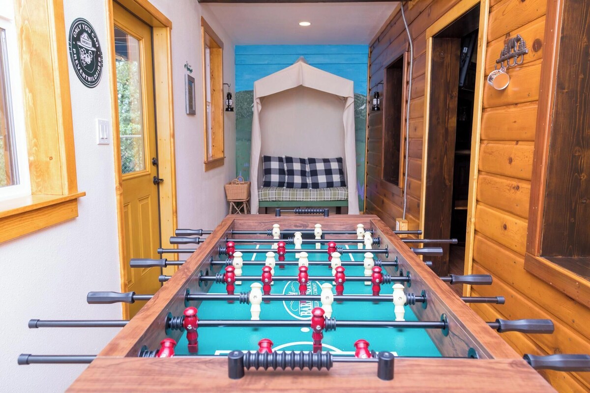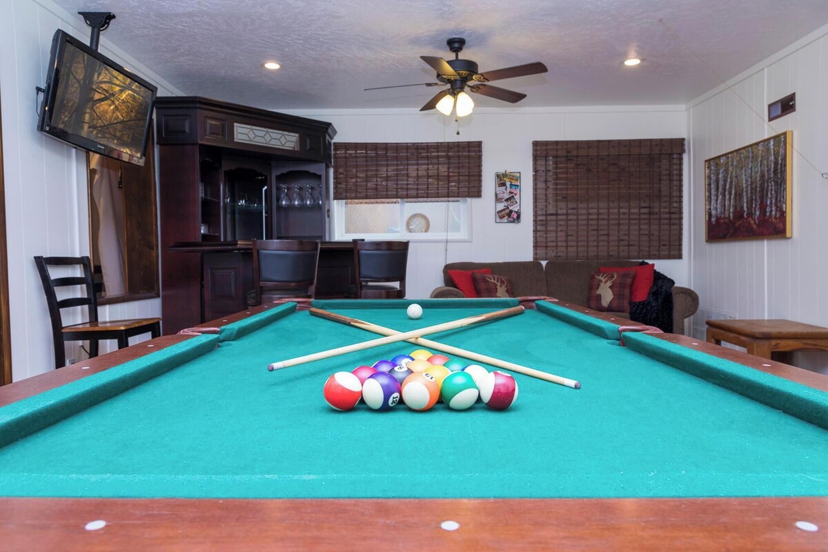 ★★ Camp Conklin is a forest-inspired 3-bedroom retreat offering the nostalgia of camping with all the comforts of home. Nestled in a beautiful mixed forest of oak and pine trees, this multi-level cabin is packed with fun for every member of the family—from peaceful nature-viewing spots to a full-blown game room and private movie den. Perfectly located between Snow Summit and the Village, Camp Conklin is ready to host your next unforgettable mountain adventure. ★★ ★★ HIGHLIGHTS ★★ ✓ 3 Bedroom, 2 Bath Cabin w/ Spacious Multi-Level Layout ✓ Camping-Inspired Decor Meets Modern Amenities ✓ Grand Natural Stone Wood-Burning Fireplace ✓ Fully Stocked Galley Kitchen w/ Stainless Steel Appliances ✓ Sunroom w/ “Zoom-Room,” Reading Nook, and Game Table ✓ Game Room w/ Pool Table, Bar, Ring Toss, Card Table, & Queen Sleeper Sofa ✓ Foosball Area + Indoor Tent for Family Fun & Photos ✓ “Theater Under the Stars” Lounge w/ Roku TV & Comfy Seating ✓ PET FRIENDLY ✓ Propane BBQ w/ Rotisserie + Propane Fire Pit on the Back Deck ✓ Central Location Between Village & Snow Summit—Walkable to Both! ✓ WiFi, Roku TVs in Every Bedroom, and Linens/Towels Provided ★★ OPEN LIVING & DINING SPACES ★★ Step into the main level where forest views and rustic charm set the mood. Cozy up by the grand wood-burning fireplace after a day on the slopes or gather the group on the comfy sectional to stream a movie on the large flat screen Roku TV. The adjacent dining area features a classic wooden table with seating for eight, ideal for hearty meals or family game nights. ✓ Wood-Burning Fireplace w/ Natural Stone Surround ✓ Large Roku TV + Plush Seating ✓ Dining Table w/ Seating for 8 ✓ Updated Galley Kitchen w/ Gas Range, Dishwasher, Microwave & Coffee Maker ★★ SUNROOM RETREAT ★★ Just off the main living space, the enclosed sunroom offers the perfect balance of relaxation and productivity. One side features a “Zoom Room” for remote work or gaming, while the other is a peaceful tea nook with large windows—ideal for reading, birdwatching, or quiet reflection. A checkers/chess/card table brings the fun indoors. ✓ Sunlit “Zoom Room” w/ Desk Setup ✓ Relaxing Reading Nook ✓ Game Table for Cards, Checkers & More ✓ Access to Back Deck w/ BBQ, Fire Pit & Outdoor Seating ★★ COZY BEDROOMS & BATHROOMS ★★ After a day of forest hikes or snowy slopes, retreat to one of Camp Conklin’s three welcoming bedrooms. ✓ Bedroom 1 (Main Level): Queen Bed, Roku TV, Easy Access to Full Bath w/ Tub ✓ Bedroom 2 (Upper Level): Queen Bed, Roku TV, Treetop Views ✓ Bedroom 3 (Upper Level - “Camping Room”): 2 Twin Beds, Forest Views ✓ Bathroom 1 (Main Level): Full Bath w/ Tub/Shower ✓ Bathroom 2 (Upper Level): Cedar-Paneled Bathroom w/ Shower ★★ THE ULTIMATE GAME ROOM ★★ Downstairs, the Fun Zone awaits! The spacious lower level is home to a full-size pool table, pub-style card table, bar, Roku TV, and queen sleeper sofa. Around the corner, you’ll find a foosball table and a whimsical indoor tent—perfect for kids and silly snapshots. ✓ Pool Table + Ring Toss + Card Table ✓ Built-In Bar & Roku TV ✓ Foosball Table + Indoor Tent for Photo Ops ✓ Sofa Area Converts to Queen Sleeper ★★ THEATER UNDER THE STARS ★★ No bugs, no tents—just cozy vibes and big screen entertainment! Camp Conklin’s indoor movie den features a plush sofa and flat screen Roku TV, tucked away just off the game room for a true home-theater experience. ✓ Flat Screen Roku TV ✓ Comfy Sofa Seating ✓ Perfect for Movie Nights ★★ OUTDOOR LIVING ★★ Step out back to the elevated deck surrounded by towering trees. Grill up dinner on the propane BBQ with built-in rotisserie, gather around the propane fire pit, or stargaze from your seat as squirrels and chipmunks scamper through the yard. ✓ Large Propane BBQ w/ Rotisserie ✓ Propane Fire Pit & Outdoor Seating ✓ Treed Backyard w/ Wildlife Watching Opportunities ★★ CAMP CONKLIN is the perfect blend of rustic adventure and modern comfort. Whether you’re gathering the family for games, curling up with a book, or exploring all that Big Bear has to offer, this forest retreat is the place where memories are made. Book your stay today! ★★ 2025-1804 Important: Dear Traveler, you will be charged with USD 200 in case you include a Pet in your reservation as a Refundable Damage Deposit for Pets. Our prices include all fees. No hidden fees.
