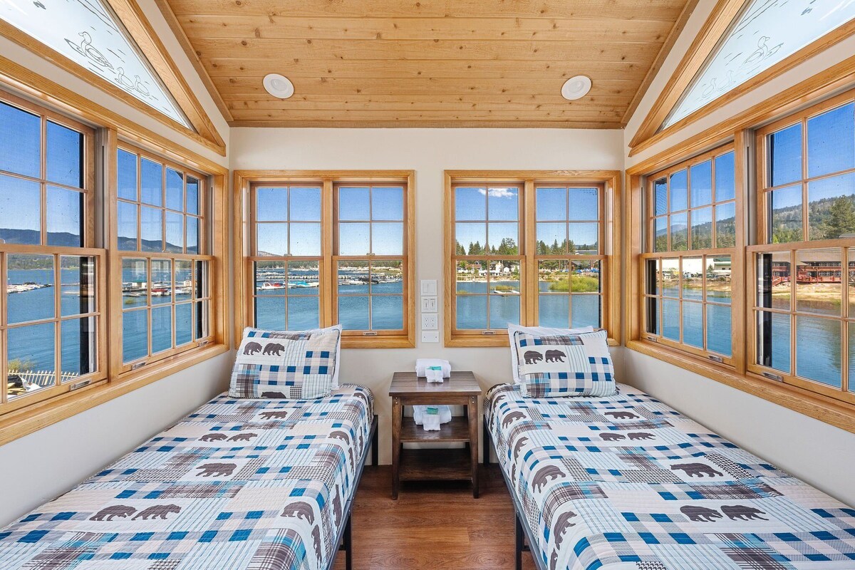 Welcome to our lakeside haven, Lakefront Chalet. Just a leisurely nine-minute stroll from the village, this stunning property is tucked away on a serene cul-de-sac, offering the perfect blend of tranquility and convenience. With breathtaking lakefront views, this 3,000 square foot home is an ideal retreat for families and groups, comfortably accommodating up to 14 guests and allowing up to 2 pets. The chalet features three spacious bedrooms and three bathrooms. The master bedroom, located upstairs, boasts a luxurious king bed. The guest bedroom downstairs also offers a king bed, while the kids' room upstairs is equipped with a triple bunk bed, two twin beds that convert into a king if put together and a sofa couch making it perfect for children and teens. The open-concept living area is designed for relaxation and entertainment, featuring a cozy fireplace, smart TV, and a variety of games including a pool table and ping pong table. The fully equipped kitchen includes modern appliances such as a stove, oven, microwave, dishwasher, and coffee maker, along with all the cooking basics you need. Enjoy meals together at the large dining table or take advantage of the outdoor grill and dine al fresco on the patio or balcony, both offering stunning lake views. For those looking to unwind, the property includes a hot tub and jacuzzi, perfect for soaking after a day of adventure. The outdoor area also features a garden and plenty of seating to enjoy the serene surroundings. Front row seats to fireworks, watch from backyard, no driving OR take your boat out and come back to one of the only lighted docks after enjoying the fireworks from the water! Safety and comfort are paramount, with amenities such as central heating, portable fans, washer and dryer, linens, towels, and essential toiletries provided. The property is equipped with smoke detectors, carbon monoxide detectors, a fire extinguisher, and outdoor lighting for added peace of mind. Nearby attractions include fishing, hiking, skiing, and a variety of water sports. The village offers shopping, dining, and entertainment options, all within walking distance. While air conditioning is absent, nature compensates with its own cooling system - the fresh mountain air. Experience the perfect lakeside getaway at Lakefront Chalet. Book your stay today and create unforgettable memories with your loved ones. License # VRR-2025-0874 Please see house rules prior to booking. Thank you! * Per city permit This home can accommodate up to 14 people, 10 Adults Maximum. The maximum for guests and adults CAN NOT be exceeded at any given time. * Parking Details: Max of 4 cars on-site. (Does have garage access for one vehicle). IMPORTANT TO NOTE: The city of Big Bear lake will count any boat trailers as one of your vehicles. If you will have any trailers, include them in your car total. Maximum of vehicles can not be exceeded at any time. * This home is pet friendly! (Maximum: 2 pets) Pets MUST be pre-approved in advance. A pet fee of $125 per pet will apply IF the pet(s) has been approved. Pet fee is requested after the booking is confirmed. * If undisclosed pets are brought into the home without SoCal Vacations' approval: There is a fine of $500 per pet. Pet Rules: - Do not leave pets unattended in the home unless kenneled. - Do not let pets on any furniture or beds. - Pick up after your pet. - You will be responsible and charged for any damages caused by pets. *Quiet hours (10pm-7am). *No speakers or sound systems allowed. *No parties or events allowed at any given time. * Indoor sound cannot be loud enough to be audible at the property line. * Violation of any noise ordinances will be subject to fines that can reach up to $1,000 per violation. * This is a smoke-free property (No smoking or vaping inside or outside, video monitoring enforcement.) Violation of the no-smoking policy will result in forfeiture of the security deposit, a $950 smoking fee, and liability for any fire or property damage costs. It is prohibited by law that any kind of open fire whatsoever. You are allowed to use what is provided for you. *This home does not have AC *You'll need to sign a Rental Agreement with the Big Bear Good Neighbor Policy (5 minutes). The link with the rental agreement will be sent once the booking is confirmed. It needs to be completed and signed before checking-in. To confirm and maintain your reservation, our Rental Agreement must be completed within 24 hours of booking. Failure to complete the agreement within this timeframe may result in cancellation without refund if the cancellation window has passed. Please note: Our standard cancellation policy applies from the moment the reservation is confirmed, not from when the rental agreement is completed. By booking, you agree to complete all required documentation within the given timeframe and to be bound by the cancellation terms. Our prices include all fees. No hidden fees.
