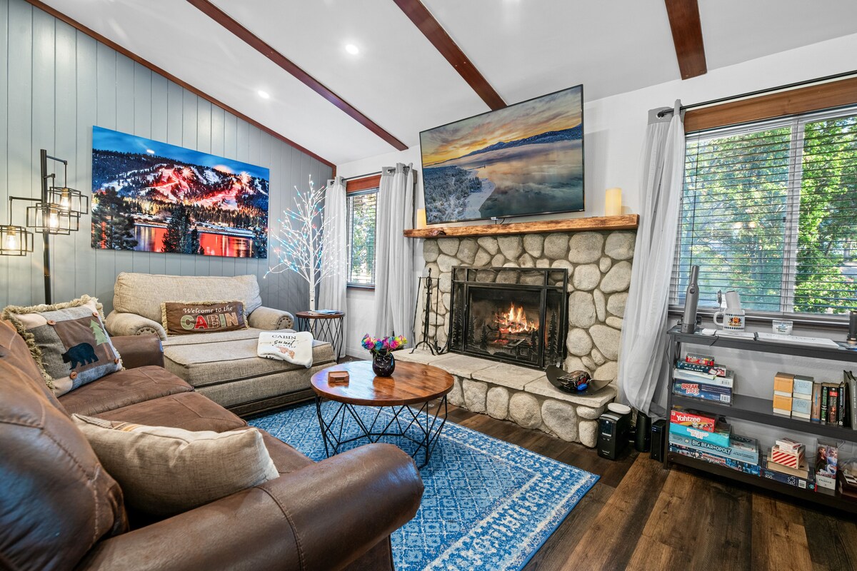 𝐖𝐢𝐧𝐭𝐞𝐫𝐥𝐚𝐧𝐝 𝐂𝐨𝐭𝐭𝐚𝐠𝐞 - This 920 sq foot cabin is nestled in one of the most desirable neighborhoods of Big Bear Lake. Enjoy the magnificent 9000+ sq foot completely fenced yard with spa, fire pit, covered deck and BBQ . We have a newly installed Level 2 EV charger. Central to Snow Summit & Bear Mountain, the lake, shopping, dining and restaurants. Bring your furry family member and enjoy no pet fee. “Bring Fido” calls us their ultimate mountain getaway. 𝐅𝐨𝐥𝐥𝐨𝐰 𝐚𝐧𝐝 𝐭𝐚𝐠 𝐮𝐬 𝐨𝐧 𝐬𝐨𝐜𝐢𝐚𝐥 𝐦𝐞𝐝𝐢𝐚 @𝐰𝐢𝐧𝐭𝐞𝐫𝐥𝐚𝐧𝐝𝐛𝐢𝐠𝐛𝐞𝐚𝐫. 𝐖𝐚𝐭𝐜𝐡 𝐨𝐮𝐫 𝐯𝐢𝐝𝐞𝐨 𝐭𝐨𝐮𝐫 𝐡𝐞𝐫𝐞: https://youtu.be/G7EegNVCZiQ?si=8zevLkIp4uW-m-VR If you are Instant Booking: 1) Please message your host and share details about your trip. 2) Within 24 hours a signed rental agreement is required. 3) If you are traveling with dogs, they must be at least 1yr + and a maximum of two. 4) Please make sure your app notifications are on to ensure delivery of messages. Enjoy this newly renovated, single story home in the prestigious, tree lined area of Fox Farm. (Please note there are 2 entry steps.) This charming home has an attached garage with ping pong and darts and laundry for your convenience. The outdoor space inspired our name, \ . You, your family and 4 legged friends (dogs only) can enjoy the gorgeous outdoors, BBQ, spa and completely fenced yard. A Nest thermostat, high speed internet, Roku TV loaded (including cable) and a Level 2 electric vehicle charging station are just some of the additional amenities offered. No steep driveways. Flat and level parking. Keep reading to learn more. 𝐇𝐞𝐫𝐞 𝐚𝐫𝐞 𝐚 𝐟𝐞𝐰 𝐧𝐞𝐚𝐫𝐛𝐲 𝐚𝐜𝐭𝐢𝐯𝐢𝐭𝐢𝐞𝐬 𝐨𝐮𝐫 𝐠𝐮𝐞𝐬𝐭𝐬 𝐥𝐨𝐯𝐞: Snow Summit Resort- 1 mile 🎿 Bear Mountain Resort- 1.7 miles ⛷ Big Bear Lake Village- 1.8 miles 🏬 The Lake- 2 miles 🚤 Alpine Pedal Path - 1 mile 🚲 Big Bear Alpine Zoo- .9 miles 🐻 Snow Play - 1 mile ⛄️ Oktoberfest - 1.8 miles 🎃 Central to many trails for hiking and biking. *𝐋𝐢𝐯𝐢𝐧𝐠 𝐑𝐨𝐨𝐦* Comfortable new couch that pulls into a Queen bed. Wood burning fireplace 🔥 Oversized chair and ottoman 65\ s rest. *𝐁𝐞𝐝𝐫𝐨𝐨𝐦 𝟏* California King new memory foam bed 100% cotton sheets Down alternative pillows Ceiling fan 32" TV Dresser Blackout drapes *𝐁𝐞𝐝𝐫𝐨𝐨𝐦 𝟐* Queen - new hybrid mattress 100% cotton sheets Down alternative pillows Ceiling fan 43" TV Dresser Blackout drapes *𝐊𝐢𝐭𝐜𝐡𝐞𝐧* All new appliances - dishwasher, stove, refrigerator Keurig and drip coffee maker Toaster, blender and waffle maker also provided. Kettle Fully stocked cabinets with pots and pans, storage containers and kids plasticware. Dog food and water station. Starter coffee provided, a Brita pitcher in refrigerator and a selection of basic spices for your cooking needs. *𝐃𝐢𝐧𝐢𝐧𝐠 𝐑𝐨𝐨𝐦* Bar height table with seating for all guests. Ceiling fan *𝐁𝐚𝐭𝐡𝐫𝐨𝐨𝐦* Walk in shower with bench. All towels, spa towels, shampoo, conditioner and soap are provided. *𝐆𝐚𝐫𝐚𝐠𝐞* Unloading area for skis, boots, snow boards and jackets. Full size, new washer and dryer Ping Pong table Electronic Dartboard 🎯 Snow sleds available for your use 🛷 *𝐁𝐚𝐜𝐤𝐲𝐚𝐫𝐝* This is our favorite part of the home. You ,