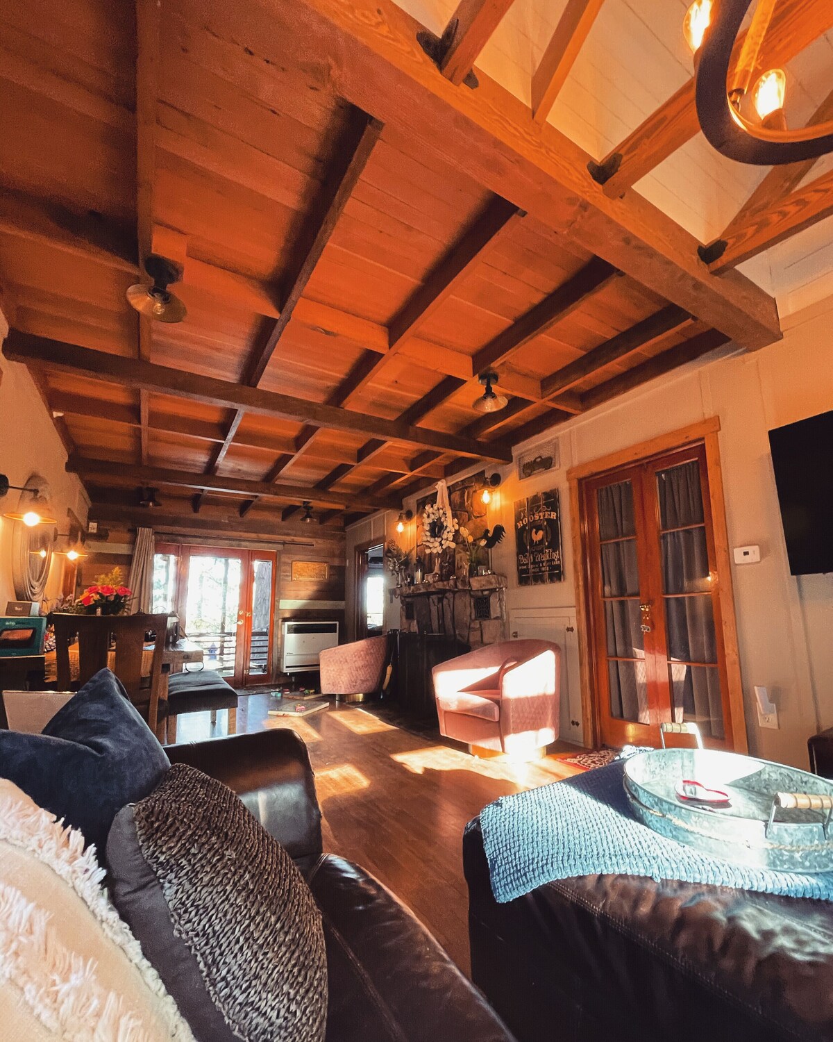 Original Maltby Cabin, with beautiful updates while maintaining the original charm and character. 3 bedrooms (4 beds) 2 bathrooms. Full kitchen. Super cozy and peaceful with all the fun nearby - Cabin is just a 5 minute drive to The Village, only 2 miles away. We are a couple blocks to the lake on one side and Boulder Bay on the other. Just 2 blocks from boat rentals! And we are very close to all three ski resorts; 4 miles to Snow Summit, 6.5 miles to Bear Mtn and 9.5 miles to Snow Valley. Follow along on Instagram: @the_nest_big_bear The beautiful back deck has peek-a-boo views of the lake which is just a couple blocks away there. Two rocking chairs are waiting for you to sit at and savor your coffee or hot chocolate and the view. There is a barbecue for your year round use as well. The deck is also overlooking your very own sledding hill! 3 bedrooms and 2 bath; 1 king in the spacious upstairs (with skylights to enjoy the towering pine trees and shining bright stars). Downstairs you will find the second full bathroom and two more bedrooms; a queen surrounded by windows (and black out curtains when it’s time to sleep!) and the other has a bunk bed with two very comfortable full sized beds. The farmhouse kitchen is fully stocked with appliances, tools, dishes etc , and of course coffee and hot chocolate! You will find two smart TVs, one in the living room with the spacious and comfy leather couches, the other in the loft with the king sized bed and additional seating upstairs. Other amenities: just to name a few - toys and books for the kids, board games for all ages, full sized washer and dryer, record player, treats for your pups, toboggan for the sledding hill, picnic table and chairs out back, picnic basket, and truly everything inside and out that you could need or want for a lovely get-away. Note re lake: the lake a couple blocks away does not currently have direct beach access but we are approx 2 blocks from Pleasure Point Marina Boulder Bay Park side is fully open to the public and has beach access, fishing dock, etc. Many other easy access beaches nearby! Note re local wildlife: as with all places in and near forests there is always the possibility of running into wildlife on or near our property including but not limited to coyotes, bears, snakes, insects, various rodents such as squirrels and chipmunks, etc. Please use common sense and caution. Note re outside online security video cameras: ring cameras is used upfront. There is a camera pointing at the back door, the front door and driveway, and the backyard. This is to keep the property safe. There are no cameras or recording deceives anywhere in interior spaces. Our prices include all fees. No hidden fees.