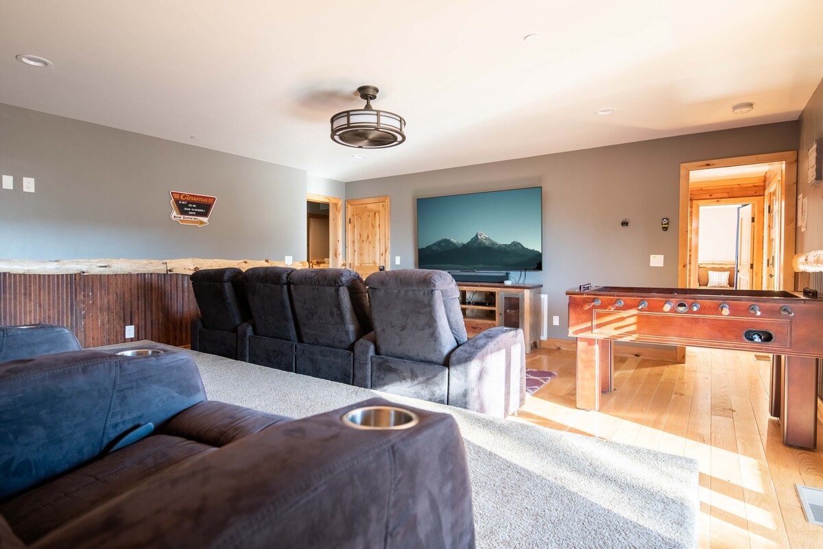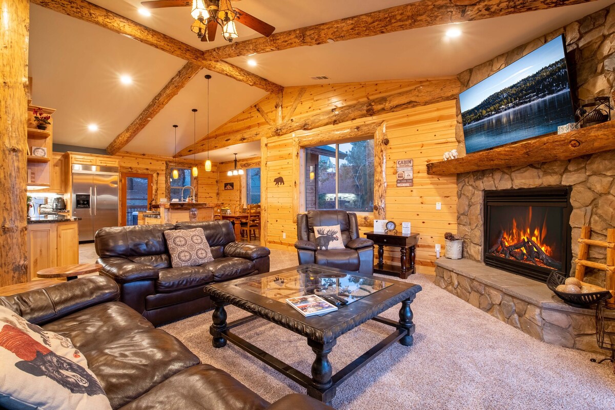 Welcome to Sky Ridge Retreat!! Unrivaled ski slope views from the largest turn-key home all of Moonridge. Spanning 3,539 Sq Ft and clad in knotty cedar siding and log accents, this majestic lodge abounds in quality craftsmanship and rustic mountain elegance. Amenities include 6 bedrooms and 5 bathrooms, game room, 10-seat private home theater, back deck with hot tub and BBQ, concrete driveway, laundry room, and extensive decking to enjoy some of the most iconic views in Big Bear. Kitchen features granite slab counters, custom cabinets, a large island, appliances and attached formal dining. Spectacular great room offers vaulted ceilings, large wood beams, and beautiful floor to ceiling stone fireplace. While air conditioning is absent, nature compensates with its own cooling system - the fresh mountain air. * Max occupancy -16 people, 14 Adults Maximum. The maximum for guests and adults CAN NOT be exceeded at any given time. * Parking Details: Max of 5 cars on-site. (Does have garage access) * This home is pet friendly! (Maximum: 2 pets) Pets MUST be pre-approved in advance. A pet fee of $125 per pet will apply IF the pet(s) has been approved. Pet fee is requested after the booking is confirmed. * If undisclosed pets are brought into the home without SoCal Vacations' approval: There is a fine of $500 per pet. Pet Rules: - Do not leave pets unattended in the home unless kenneled. - Do not let pets on any furniture or beds. - Pick up after your pet. - You will be responsible and charged for any damages caused by pets. The same way you are expecting us to answer all your questions, concerns and help you out with any issue you might have in a timely manner, we are expecting you to be respectful of the home and the rules. Most of these rules are enforced by city officers since they follow a code or regulation at a city level, some are just to keep the homes as perfect as we possibly can, believe me when I say, all I care is for my guests to have an amazing experience and for my owners to love our services, but for that, rules need to be respected on both sides. - Please respect the home and follow the rules, just as you expect timely assistance from us. Many of these rules are city regulations, while others help us maintain the homes in top condition. Our goal is to ensure a great experience for our guests and property owners. * Check-In: Remote check in after identity verification. * Parking: Follow city-enforced parking limits. If you need more space, let us know. * Occupancy: Adhere to the maximum occupancy limits enforced by us and the city. No exceptions. * Noise: Be respectful to neighbors. Keep music inside and at a low volume. Quiet hours are from 9 PM to 8 AM. We have monitoring system in place that reads decibels of noise and notifies you directly and us of loud noises. * A/C: Most homes do not have air conditioning. Nights are cooler with open windows. * Ants: Clean up after meals to avoid attracting ants. We use traps and sprays, but cleanliness is key. * Trash: Dispose of trash at the designated clean site as required by city regulation. * Age Requirement: You must be at least 24 years old to book. We do not allow parties. This rule is strictly enforced. We appreciate your cooperation. If you have any issues or concerns, please communicate with us—we're here to help. *Disclosure: Stairs lead up to the front door of the home. Check-in starts at 4 PM Checking In: * IDs are required at check-in. * You must be 24 years or older to book and check in. * You'll need to sign a Rental Agreement with the Big Bear Good Neighbor Policy (5 minutes). The link with the rental agreement will be sent once the booking is confirmed. It needs to be completed and signed before checking-in. To confirm and maintain your reservation, our Rental Agreement must be completed within 24 hours of booking. Failure to complete the agreement within this timeframe may result in cancellation without refund if the cancellation window has passed. Please note: Our standard cancellation policy applies from the moment the reservation is confirmed, not from when the rental agreement is completed. By booking, you agree to complete all required documentation within the given timeframe and to be bound by the cancellation terms. Early check-in and late check-out: * Early check-in and late check-out options are available for a fee, based on availability. * Please inquire at the front desk for these services. City of Big Bear Lake STR Permit VRR-2025-0181 Our prices include all fees. No hidden fees.