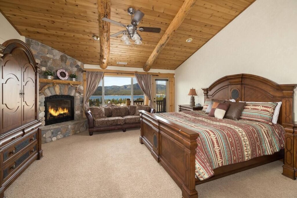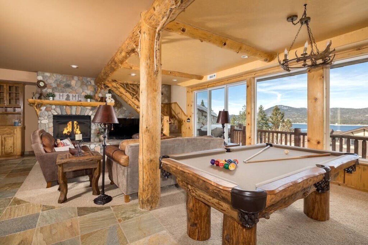 <p>Our 3000 sf 5-star family and pet friendly home is clean with an open floor plan to enjoy the lake views.</p> <p>- Hot tub</p> <p>- 85\ 3D TV, fireplace, log pool table, ping pong </p> <p>- Fully stocked chef’s kitchen w 36” range and steam oven</p> <p>- 2 full master suites w/fireplaces, one w/a master spa retreat- jacuzzi tub, dual shower and a rain shower</p> <p>- 5G Wifi & High Speed internet</p> <p>- EV Car charger in garage</p> <p>License #LC20200496</p> <p>Relax and enjoy our gorgeous lake view in almost every room during your family getaway in our custom log-style house on the hill. There is a pool table in the living room and an 85\ play with infant sling to accommodate the needs of any size group.</p> <p>Enjoy cooking in the Chef range top, steam oven, convection microwave, warming drawer, rice cooker, mixer, blender and all cooking essentials provided. There is a gas BBQ on the deck.</p> <p>Our home has a central heating system, AC upstairs for the summer months. To make you feel at home, we have on-site washer/dryer w/ detergent, fresh and sanitized cotton linens, high quality toiletries, a hair dryer in each bathroom, and fresh slippers for each guest.</p> <p>Access to whole house and garage. There is also an EV charger in the garage with adapters for Tesla and Most other EV makes.</p> <p>We are glad you are here to enjoy the peace, tranquility and beauty of Big Bear Lake and Ski Resorts. This property is a privately owned and managed vacation rental. </p> <p>Guest must be at least 25 years old to book, and the person making the reservation must check-in in person with valid ID, as part of the check in -process as required by the city of Big Bear.</p> <p>Unless otherwise specified, check-in time is between 3pm and 8pm, and check-out time is 11am. </p> <p>Our concierge agent will open and inspect the property prior to your arrival to ensure the home is ready for your stay. The property is also inspected upon your departure. </p> <p>If you have any concerns about your stay, you are welcome to contact your hosts. For 24/7 emergencies, maintenance, and housekeeping issues - including help with property access and departure questions - please call our concierge agent at number provided at check-in.</p> <p>We welcome long terms stays. Stays longer than 28 days require a residential lease and are not subject to occupancy taxes.</p> <p>Take advantage of all the festivals and events in Big Bear. This wonderful retreat is centrally located just 2 blocks from the village and walking distance to many of the events Big Bear hosts year round. Your balcony is the best seat in Big Bear Lake to watch the fourth of July fireworks off the lake. </p> <p> This home is set in the quiet upscale neighborhood of Ironwood Estates, offering a peaceful mountain retreat with underground utilities (i.e. less power outages). It is also within walking distance to the marina so you can enjoy the lake and the village. With a short drive (or free trolley ride) to Snow Summit and Big Bear Mountain for summer mountain biking, hiking, and skiing in the winter months, this View Haus is truly a place to relax and enjoy the best Big Bear has to offer.</p> <p>Excellent location - close to the lake, the slopes, and an easy stroll into the Village with many food and entertainment options:</p> <p>- Big Bear Village – 900 feet – 5 min walk</p> <p>- Alpine Slide at Magic Mountain - 0.9 miles - 4 min drive</p> <p>- Pine Knot Marina – 1.0 mile – 15 min walk</p> <p>- Big Bear Marina - 0.6 mile / 11 min walk via Village Dr OR 0.7 mile / 14 min walk via Paine Rd</p> <p>- Snow Summit – 1.6 miles – 9 min drive</p> <p>- Bear Mountain – 3.2 miles – 12 min drive</p> <p>- Vons / Stater Bros Markets - 3.1 miles - 7m drive</p> <p>* Mountain Transit Trolley stop is a short walk from the house, so you can leave your car at home and avoid parking hassles at the resorts with a free ride.</p> <p>SECURITY CAMERAS </p> <p>- There are security cameras surrounding the building for safety and to monitor compliance of city occupancy and noise ordinances. </p> <p>ADDITIONAL GUEST </p> <p>- Each undisclosed guest - $200 per person per night in additional to the additional guest fees. </p> <p>- Undisclosed guests exceeding maximum 15 people occupancy will result in fines and immediate eviction, without refund</p> <p>PETS </p> <p>- Pets are welcome and additional pet fees and security deposit are required. </p> <p>- Each pet - $75 per pet per stay</p> <p>- 2 pets maximum.</p> <p>- Each undisclosed pet - $150 per pet in additional to the pet fees.</p> <p>- Pets are not allowed on any furniture, particularly beds and couches. We have sofa covers in the house if you need them for your pets.</p> <p>SNOW/ICE - Chains and 4-wheel drive recommended during winter months. We have a large sloped driveway that can be icy in the winter. Heat pads, plow service, salt and sand provided. Details in house manual.</p> <p>PARKING - There is parking for 5 cars on site and up to 2 more in the garage. Please park only on West side of driveway and keep driving lane clear for neighbor. If more than 5 cars, it will result in fines and immediate eviction without refund.</p> <p>TRASH </p> <p>- As required by the city of Big Bear, guests will have to take their trash to one of two city-provided dump sites during their stay.</p> <p>- Any leftover trash - $80 charge per bag</p> <p>ACCESS - Main access is via staircase. Guest must be able to use stairs. There is an elevator on site, but it is under repair at the moment.</p> <p>OTHER ADDITIONAL CHARGES</p> <p>- Carpet stain - $50 to $200 depending on size</p> <p>- Moving the pool table - $500 fines</p> <p>- Polluting Hot Tub - $100 for drain and fill</p> <p>- Damage to property – TBD depending on the damage</p> <p>MUST COMPLY WITH CITY VACATION ORDINACE </p> <p>1) Max 5 cars parked on site. No street parking.</p> <p>2) Max occupancy 15 persons at any time.</p> <p>3) Max overnight guests is 10 adults or 1