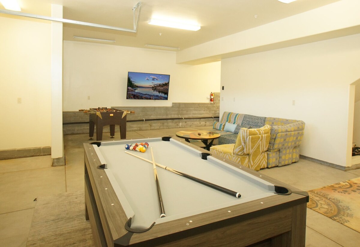 Welcome to our stunning lakefront retreat in the breathtaking town of Big Bear! Situated in the highly sought-after area of Boulder Bay, our spacious and luxurious cabin offers an unforgettable getaway with picturesque lake views. Our cabin provides ample space for you and your loved ones to relax and unwind. Each bedroom is tastefully decorated and designed to ensure a comfortable night's sleep, while the bathrooms are equipped with modern fixtures and amenities for your convenience. Conveniently situated, our cabin offers proximity to the charming shops, restaurants, and attractions of Big Bear. Whether you're looking to indulge in delicious cuisine, shop for unique souvenirs, or simply soak up the local atmosphere, you'll find it all just a short distance away. Don't miss out on the opportunity to experience the beauty of Big Bear from the comfort of our lakefront cabin. Book your stay with us today and create unforgettable memories surrounded by nature's splendor. LIVING SPACE - As you step inside, you'll be greeted by a bright and open living area, adorned with large windows that frame the captivating lake views. Sink into the comfortable sofas while watching something on the smart TV, bask in the warmth of the fireplace, and enjoy quality time with family and friends. ROOMS & BEDS - 3 bedroom, 3.5 bath. Upstairs first master bedroom has a king bed, twin bed, gas log fireplace, smart TV with cable, and private bath with jet tub and glass enclosed tiled shower with bench. Downstairs second master bedroom has a king bed, smart TV with cable, private bath, and deck access. Downstairs third bedroom has a double/double bunk bed, crib, smart TV with cable, private bath, and deck access. Extra blankets and pillows are available. KITCHEN - The fully equipped kitchen is a chef's delight, featuring top-of-the-line appliances and all the essentials needed to prepare delicious meals. Share laughter and create memories around the dining table or step out onto the balcony and savor your meals while taking in the stunning lake vistas. AMENITIES - For extra entertainment, our cabin boasts a fantastic game room with a pool table, ping pong table, foosball table, and basketball hoop game. In addition to the private spa, our cabin is equipped with modern amenities to ensure a comfortable stay. Stay cozy during the winter months with the provided heater. We also offer a laundry area with side-by-side washer/dryer for your convenience, allowing you to pack light and keep your clothes fresh throughout your stay. OUTDOORS - After a day of exploring the natural beauty of Big Bear, pamper yourself in the private spa located on the property. Immerse yourself in the soothing waters while enjoying the tranquility of the surroundings. It's the perfect spot to unwind and rejuvenate. Big Bear is renowned for its outdoor activities, and our lakefront location provides easy access to a wide range of adventures. Explore the shimmering waters by kayaking, paddle boarding, or fishing. Embark on scenic hikes or mountain bike rides along the nearby trails. During the winter, hit the slopes for thrilling skiing and snowboarding experiences. PARKING - 3 car driveway Close to National Forest hiking trails Lake - Lakefront Village - 2.4 miles Snow Summit - 4.3 miles Bear Mountain - 6 miles Oktoberfest - 6.1 miles Other things to note: Big Bear Lake local ordinance 99.300 limits maximum occupancy to 9 people (8 adults max). Children, toddlers, and infants do count as a person. Occupancy is permitted per City Ordinance - over occupancy could result in a fine or non-refundable eviction. The lake levels vary throughout the year and cannot be guaranteed at the time of your stay. Pet fee $75 per pet (1 small dog only) Check in: 4 pm Check out: 11 am Our prices include all fees. No hidden fees.