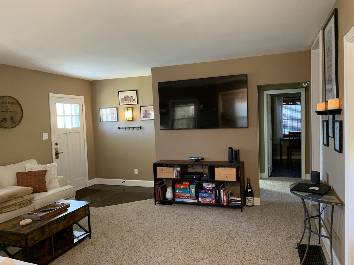 This freshly renovated home is located in a safe/quiet neighborhood on the edge of Hyde Park and Fairfax! You are a 2-minute drive from the new MedPace Campus with Element Eatery and Placebo along with other bars, restaurants, breweries and shopping. Old Red Bank Road is located directly off the highway and no more than a 15-minute drive to downtown and other major area attractions. The cottage is pet-friendly AND squeaky clean with a fenced-in back yard. This 2-story home was built in 1936 with its original charm still intact along with MANY upgrades. Desirable and quiet neighborhood conveniently located close to Columbia Parkway, Highways, Restaurants, Walmart and everything else you need to eat, drink and play. The house is perched on a hill, so several steps are required. Enter the front door into your living room with a large sectional couch, 70\ Chromecast TV (HULU included). One bedroom downstairs also has a workspace and over-the-door ironing board/iron. One bedroom upstairs has a light-up makeup vanity. The garage is attached to the cottage with keypad entry and enters into your new 2nd bathroom, freshly painted basement, new washer/dryer and folding table. You will also find sanitized pet and child-friendly items in the basement such crates, portable crib, toys, etc. The property is located along the scenic Wasson Trail and a short 5-minute walk to the trail head entering Cincinnati's Premier Green Space, Ault Park. Explore the trails, picnic areas and events held in the park throughout the year, or simply enjoy watching the bicyclist and runners as you sip your morning coffee from the front patio. Your host has resided in Greater Cincinnati for two decades. Much of her time was devoted to wine (restaurants, retail, distribution, private tastings, entertaining clients, etc.) which gives her an edge on recommendations, service and hospitality. She's excited to be your host! This house is perfect for families with children or pets, as the backyard is completely and securely enclosed, with a fun hill to play on. We complete a thorough/multi-hour “de-furring” cleaning process when we have pet guests. We keep this property SUPER CLEAN as you can tell from our reviews :) A 24/7 vet clinic is located minutes away as are Cincinnati's world-class medical facilities giving you piece of mind in the event of emergencies. A rail crossing is across from the house, with trains running max 2X per day. Small cargo trains and a super cool dinner train with vintage railcars use the track and sound twice at crossing. We have never received any complaints from short or long-term tenants and the neighbors find it soothing as have we when staying at the cottage many nights :-) I reside in Anderson township, only 15 minutes away from your cottage. My husband is your 24 hour on call maintenance man. We have our phones on at all times and will immediately address any needs. Our prices include all fees. No hidden fees.