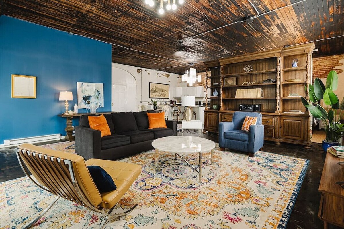 This open floor plan loft is on the first floor of an 1897 Carriage House. 1k sf, 12' ceilings, exposed brick and other beautiful elements. Fully equipped new kitchen with MASSIVE island, new bathroom, beautiful modern furnishings and a dedicated work space. This was once the stables of the carriage house of Frank Enger. Mr. Enger’s family manufactured carriages in the 1800s. When Frank took over, he eventually began putting motors in the carriages and ultimately founded the Enger Motor Company. You'll find the kitchen is the perfect place to cook, or simply hang out over a glass of wine, and for making everyone coffee in the morning while you relax. You're more than welcome to enjoy the entire grounds, with various sitting areas located throughout the property. This space is the perfect option for travelling professionals, nurses, doctors, or simply couples or small families looking for a getaway. We tried to strike a perfect balance between the original character of the property and designing in features to make the home really enjoyable day-to-day. Our guests will enjoy a private loft in the carriage house stables of our historic home. The 1.8 acre, fully gated property boosts lush gardens, secluded landscape, and various sitting areas around the grounds to enjoy. Our family lives in the main house at Marion Hall Mansion and are available for anything you might need during your stay North Avondale has been described as a piece of heaven...right in the city. Some of the grandest homes in Cincinnati grace the winding streets of this historic neighborhood. The homes here represent a wide range of architectural styles dating back to the late 1800s. We have free parking for one car inside our gated entrance just outside the home. Other cars can park for free on the street. We are minutes from I-71 and I-75 and walking distance to Xavier University and minutes to downtown Cincinnati. Also conveniently located to many of Cincinnati's best attractions: - University of Cincinnati - Cincinnati Bengals - 10 min - Cincinnati Reds - 10 min - FC Cincinnati - 10 min - Over the Rhine (OTR) - 10 min - UC Medical Center, Children's Hospital, Christ Hospital, Good Samaritan Hospital (all 5-10 min) - Cincinnati Zoo and Botanical Gardens - 5 min - Kings Island - 25 min - Great Wolf Lodge - 25 min - Creation Museum - 30 min - There is no smoking permitted and we do not allow parties of any kind Our prices include all fees. No hidden fees.