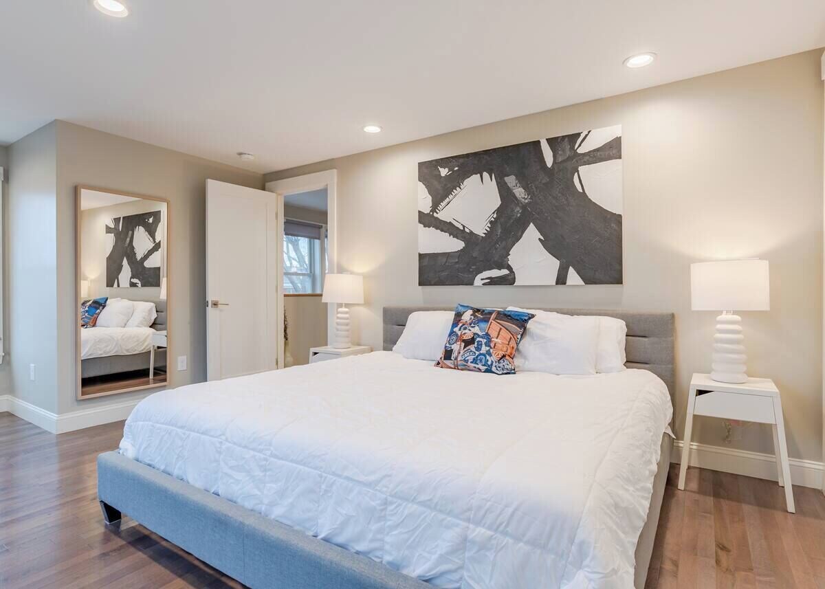 Escape to this stunning 3rd-floor penthouse with breathtaking panoramic views of Casco Bay. With rare private parking and located in Portland's vibrant East End, this luxurious yet cozy 2-bedroom, 1-bathroom condo offers the perfect blend of comfort and style. For security, two exterior (outdoor) cameras are mounted above the front door porch and another above the side door, pointing at the driveway. Elegant Interior | Step into a world of refined elegance with: - Charcoal-stained maple hardwood and tile floors throughout - Open-concept living room and kitchen - Aquamarine glass backsplash tiles and quartz countertops - High end stainless steel appliances, including a slide-in range - Private In-unit Asko washer/dryer for your convenience - Enjoy the convenience of a rare private driveway with room for 3 cars Comfortable Accommodations | Enjoy with friends or retreat to your own room: Relax in spacious bedrooms equipped with king sized beds, full closets and smart TVs. For larger groups, an upscale queen sleeper sofa in the living room rounds out the space. Stunning Views and Outdoor Space | Treat yourself with the beauty of Portland: - Immerse yourself in panoramic water views along the entire length of the condo including the master bedroom - Enjoy the convenience of a rare private driveway with room for 3 cars - Convene on the Private deck/patio for al fresco dining and relaxation - Utilize the outdoor grill for late night gatherings - Soak in bright, sunny days from the awning windows Prime Location | Situated in the heart of Munjoy Hill, you'll enjoy: - Walk out your door to an ocean view, while walking one block to Portland's famous Eastern Promenade - Short walk to East End Beach for paddleboarding, kayaking, or sunbathing - Proximity to top-rated restaurants like The Corner Room and The Blue Spoon - Easy access to cafes, artist-run shops, and markets - Walking trails and parks at your doorstep Nearby Amenities | Explore the area with ease: - 10-minute drive to Whole Foods and Trader Joe's on Franklin St - 15-minute walk to Portland Power Yoga and Lila Yoga - Quick access to downtown Portland and I-295 Experience the best of Portland's East End in this luxurious penthouse retreat. Book now for an unforgettable stay with unparalleled views and comfort! Our prices include all fees. No hidden fees.