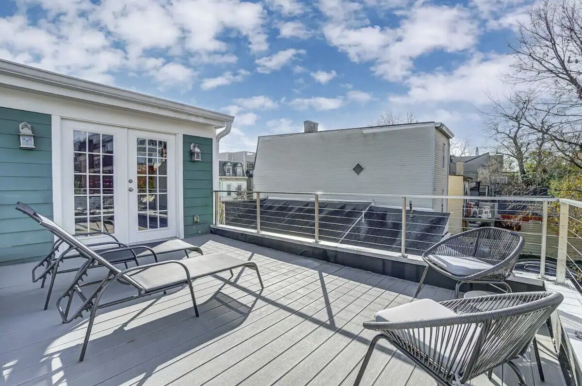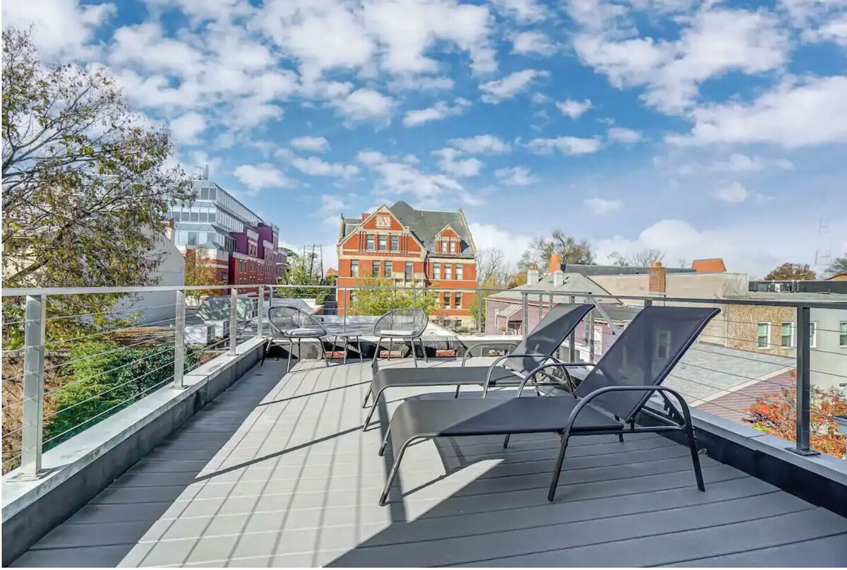 This home is located in beautiful Mt. Adams. The home is 8 minutes from downtown. Free parking, rooftop terrance, private courtyard and balcony. This home has beautiful hardwood floor and vaulted ceilings that lead you to soaring layered staircases with living spaces on each level. A short walk to Eden Park, the Art museum, Playhouse in the Park, the Krohn Conservatory , neighborhood coffee shop, restaurants, bars and grocery stores. The space This completely renovated, spacious home in the trendy Mt Adams that blends modern conveniences with cozy comfort. It is filled with light throughout and boasts a lovely rooftop terrace and private rear courtyard great for relaxing in your home away from home. Open the front door to beautiful hardwood floors and vaulted ceilings that lead you to soaring, layered staircases with multiple living spaces on each level. Easy access to the 2 car garage. Located in the heart of Mt Adams. Only minutes to Downtown Cincinnati. Three stories, all interconnected by an open staircase. 3 bedrooms, 3.5 bathrooms. All the bedrooms have comfy queen beds. There are also 2 queen sized futons in the loft and bonus room, so the whole family will have a comfortable and private space. The kitchen is fully equipped with all the amenities including a dishwasher and coffee maker. The washer and dryer are conveniently located in the master bath. The balcony is the perfect place to enjoy your morning coffee and the rooftop provides amazing views of the city skyline and the river! This is THE place to watch the fireworks on those special occasions. -Rooftop deck -3 Spacious bedrooms - Large Living Room with pullout couch - Upstairs loft with pullout couch - 3.5 bathrooms -Open kitchen with living room plan -On Site Laundry and Dryer -High Speed Wifi -Entire home is cleaned and sanitized after each guest Guest access 24 hour entry, we use a keypad on the door. You will have access to Wifi and multiple smart TVs to be able to use all streaming services. The kitchen is fully equipped and we provide toiletries. Other things to note We are flexible on check in and check out, please reach out so we can accommodate! Our prices include all fees. No hidden fees.