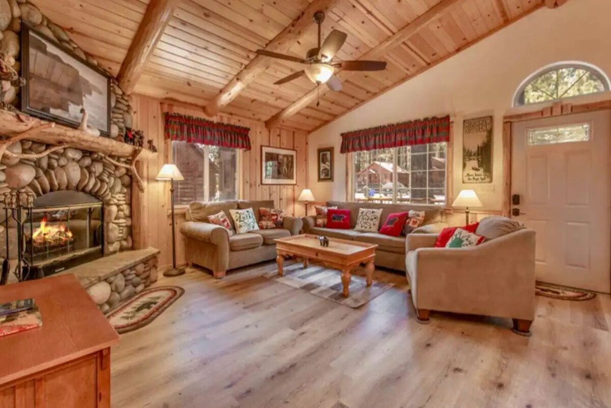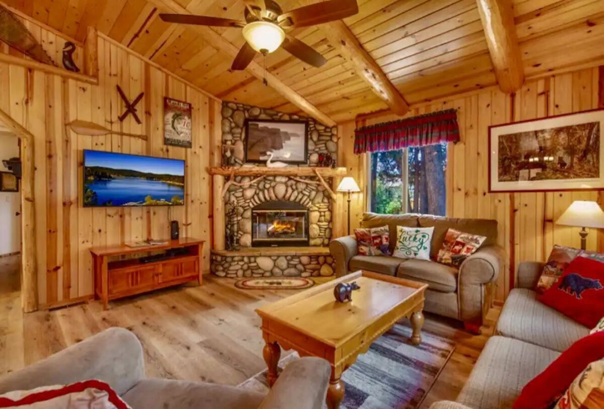 Cozy 3 bedroom, 2 bath, pet friendly cabin with a wood burning fireplace. Ideal for your summer or winter getaway wether hitting the bike trails or the ski slopes. This is a fabulous location nestled among trees. Less than a mile from the Big Bear Alpine Zoo, Bear Mountain Golf Course, hiking trails, Bear Mountain Ski Resort and Snow summit is 1.2 miles away. The space The cabin has a spacous open floor plan. You'll find everything you need to enjoy a relaxing getaway. The kitchen has all you need to cook dinner for you and your guests. There are smart TV's and DVD players in the bedrooms and in the living room that are set up to play your own Netflix , HBO and other TV apps. Plenty of board games for kids and adults under the bunk beds. There is also a nice selection of DVD's for both kids and adults. Extra blankets in the ottoman in the living room. Wifi through out. There are three bedrooms, with six beds. The master bedroom has king size bed and an on suite bathroom. Two guest bedrooms, one with a queen size bed and the second guest room has two bunk beds that sleep four. Each room has a wardrobe for your clothes. Washer and dryer available for your use. Iron and ironing board in master bed wardrobe. Safety - First aid kit, smoke/carbon monoxide detectors, fire extinguisher. It is a single level home so no stairs to negotiate. The central heating is very effective in addition to a stone fireplace for those cold nights. Two parking spaces in front of the cabin. Large backyard with a four burner propane BBQ, picnic table, hammock, and yard games (horse shoes, corn hole hole, lawn darts and bocce ball). Front patio with patio furniture for outdoor dinning. No more than 6 guests and 2 cars. Please note these numbers are strictly enforced. Guest access Guests have access to all living areas in the cabin. Our prices include all fees. No hidden fees.