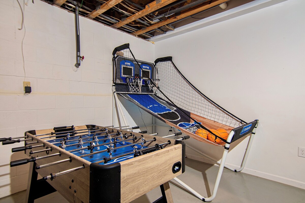 Your family will be close to all the action in our cozy mountain home. Less than 3 miles to The Island and less than 7 miles to Dollywood! Only 1 mile away from the Smoky Mountain Alpine Coaster! Our home is family and dog friendly! Newly installed swing set keeps the kids busy while you relax by the fire-pit. Take a soak in the hot tub after a day exploring the Smoky Mountain National Park or Dollywood. We are conveniently located to all the attractions but in a quiet and peaceful setting. No steep roads! Upstairs has 3 bedrooms, 2 bathrooms, living room, dining room and fully stocked kitchen. Enjoy your morning coffee or afternoon wine on the front deck and watch for wildlife. Relax in the hot tub after a day of exploring. Downstairs is the kids domain. Two twin bunk beds (with slide), large smart tv, led lights, and plenty of books, toys and games. Game room has foosball, big buck hunter, PacMan and street fighter full size arcades, and a poker table. Two player basketball and foosball in the garage. Pets breeds and weight must be disclosed at booking. Property has outdoor video security surveillance at driveway, backyard, and main entryways. Our prices include all fees. No hidden fees.