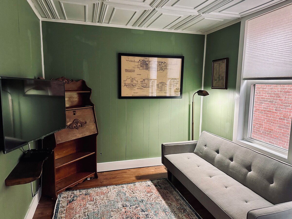A nautical themed 1 bedroom unit complete w/ legit ready to play DVD of Disney's \ (full smart TV capacity also) Located in West Bayside in a prime walkable location to popular areas including the Old Port, Art's District, & Commercial Street w/new establishments within a block including Argenta Brewery, Batson Distillery, Bayside Bowl & more! The area is unique with a lot of street traffic & at times many unhoused on the street. Our prices include all fees. No hidden fees.
