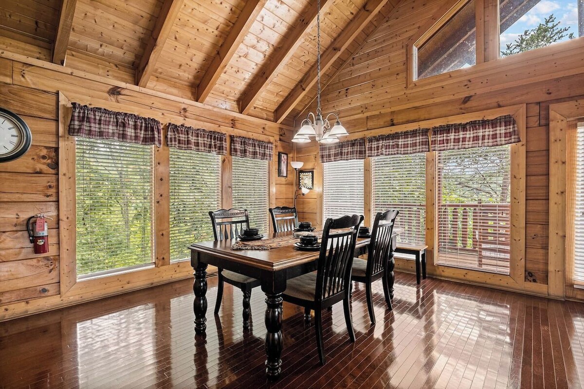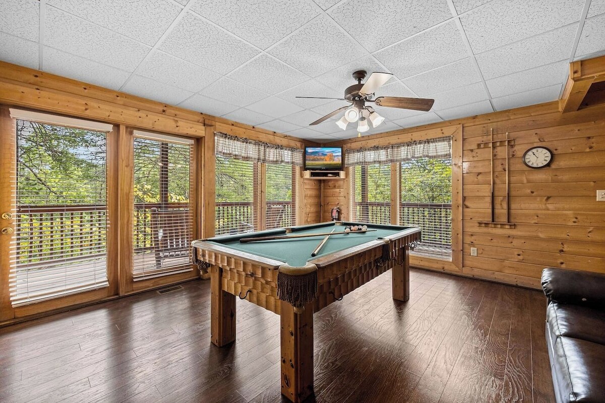 Welcome to Almost Paradise, your perfect family getaway in the coveted Eagles Ridge Resort of Pigeon Forge, Tennessee. This charming 3-bedroom, 3-bath cabin blends rustic Smoky Mountain charm with modern amenities, creating the ideal retreat for families and groups of up to 10 guests. Just 2 miles from the Parkway, you’ll enjoy both easy access to top attractions and the peace of a tranquil resort setting. Step inside and you’ll find warm log finishes, vaulted ceilings, and a cozy atmosphere that instantly feels like home. The spacious living room invites relaxation with plush seating, a stone fireplace, and a flat-screen TV—perfect for family movie nights. The fully equipped kitchen makes mealtimes a breeze, with modern appliances and all the cookware you’ll need to prepare hearty breakfasts or family dinners. Gather around the large dining table to share stories, laughs, and memorable meals. ✨ Cabin Highlights: Sleeps 10 | 3 Bedrooms | 3 Bathrooms | Additional Sleeping Spaces Private Hot Tub on the Deck with Wooded Views Jacuzzi Tub in the Lower-Level Bedroom Game Room with Pool Table for Endless Fun Fully Equipped Kitchen + Charcoal Grill Washer/Dryer + Free WiFi + Smart TVs Cozy Fireplace for Cool Mountain Nights Unwind after a day of adventure in your private hot tub under the stars, or indulge in a soothing soak in the jacuzzi tub. For entertainment, head downstairs to the game area for a few rounds of pool, or enjoy friendly competition with the whole family. Outdoors, the deck provides a peaceful spot to sip your morning coffee, grill up a barbecue, or simply take in the Smoky Mountain air. ✨ Prime Location: 2 miles to the Parkway in Pigeon Forge 5 miles to Dollywood & Splash Country 8 miles to Gatlinburg & Anakeesta 10 miles to the Great Smoky Mountains National Park Almost Paradise is perfectly situated to keep you close to everything—whether it’s dinner shows, outlet shopping, or exploring the great outdoors. Guests especially love the combination of resort convenience with the quiet privacy of this cabin’s wooded setting. Whether you’re here for a family vacation, a couples’ trip, or a group getaway, Almost Paradise lives up to its name. Book your stay today and experience why this cabin is one of the top family-friendly cabin rentals in Pigeon Forge. Our prices include all fees. No hidden fees.