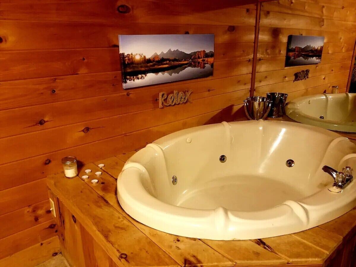 Get the privacy you deserve in this freshly renovated and beautifully furnished cabin. It's sitting on just over an acre towards the top of the mountain, offering a breathtaking view. Has a relaxing hot tub both inside and out! Ideal for a romantic couples getaway, but will accommodate children as well. Brand new driveway recently laid down, so no more fighting gravel or potholes! There will be a one time $60 fee for any furry friends but it is pet friendly! The space Witt's End sits just over 20 minutes away from both Pigeon Forge and Gatlinburg. Nestled up in the mountains. Trees cover most sides of the cabin giving you privacy from neighbors. They open up right where the rocking chairs are looking and the view is incredible. Close enough to anything you would want to do, but just far enough to get away from all the noise. Property includes large flat-screen TV with a LG premium sound system. A cell tower is .8 miles away, most phones get full service and data. Wifi available as well. Guest access Inside hot tub. Huge outdoor hot tub. Charcoal Grill. Wood Burning Fireplace. Satellite TV. Free Wi-Fi. Other things to note Please cover any trash that is put outside with the lid. We have a little house manual that's only one page long with instructions on the jacuzzi, sound system, and wifi. It's found on the coffee table next to the guest book as soon as you walk in. Our prices include all fees. No hidden fees.