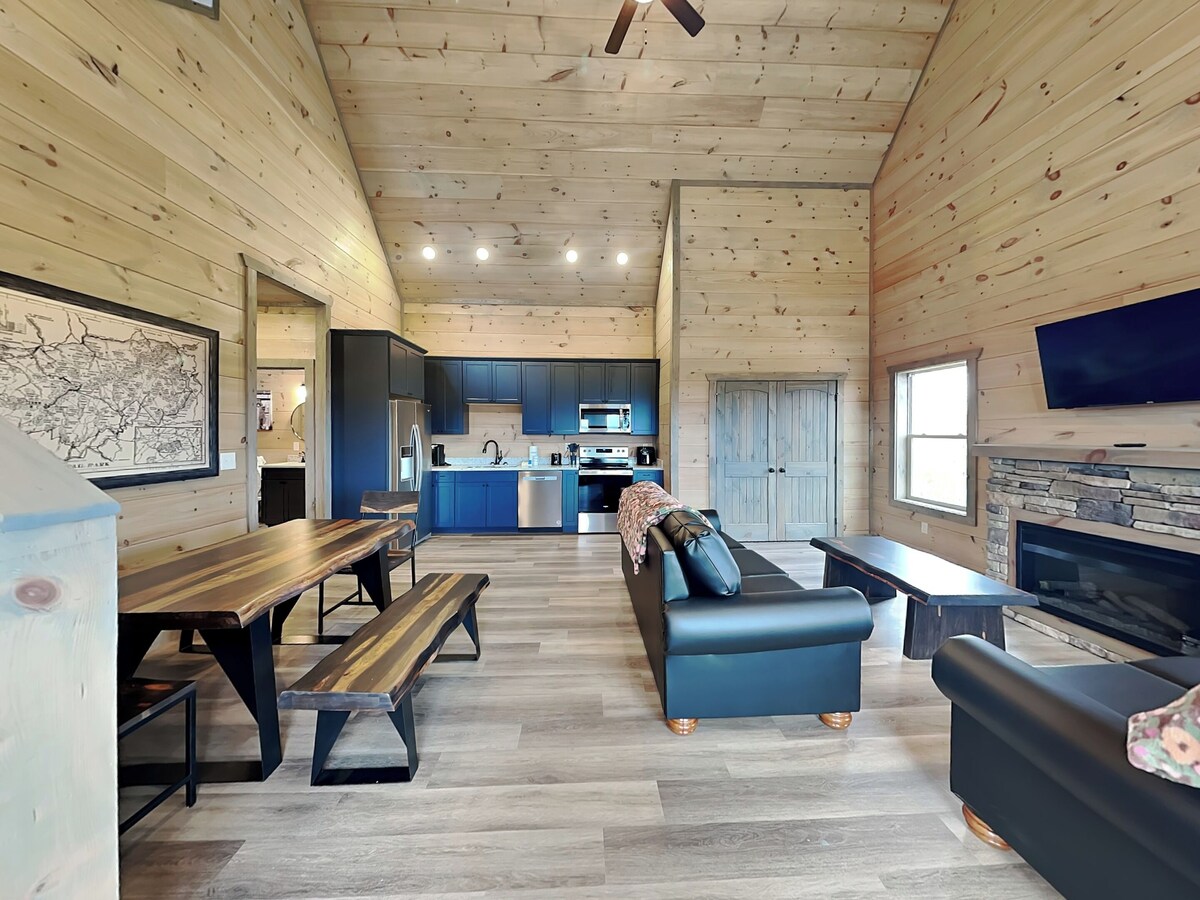 HIGHLIGHTS: -New Build Construction -Pet Friendly (2 dog maximum) -Private Indoor Pool -EV Charging for Electric Cars -Hot Tub -Fire Pit -Game Room -All King-Size Beds -Community Seasonal Outdoor Pool Welcome to Breathless Views, a newly built, pet-friendly cabin in the Smoky Cove resort outside of Pigeon Forge, Tennessee. This two-bedroom, two-bathroom cabin offers plenty of privacy, stunning mountain views, and the convenience of being in town while enjoying the serenity of the nearby Smoky Mountains. Upon arrival, you'll be greeted by the cabin's stunning exterior, framed by the majestic mountain backdrop. This retreat offers not only breathtaking views but also an array of indulgent amenities. Pack your swimsuit and enjoy the indoor pool year-round. Roast marshmallows around the fire pit under the stars, challenge your travel companions to air hockey or arcade games in the game room, and relax in the private hot tub after a day of adventure. During the summer months, soak up the sunshine and cool off in the community resort pool. Inside Breathless Views, you'll step into an open floor plan with an elegant yet intentionally crafted design. The living room invites you to relax with a cozy electric fireplace and a smart TV, while the well-equipped kitchen has everything you need to prepare delicious meals at any time. Each of the two bedrooms features a luxurious king-sized bed, an ensuite bathroom with a spacious walk-in shower, and the living room includes a queen sleeper sofa, comfortably accommodating up to six guests. Breathless Views offers thoughtful extras to enhance your stay, including an EV charging station, in-unit laundry, air conditioning, and more for ultimate convenience. When you're ready to explore, an abundance of local attractions awaits. Whether it’s canoeing, fly fishing, outlet shopping, hiking in the national park, skiing the slopes, enjoying water parks with the kids, or savoring local cuisine, there’s something for everyone to enjoy! Don't just vacation, make memories that will last a lifetime at Breathless Views in Pigeon Forge, Tennessee. Book your unforgettable mountain getaway today! DETAILS TO NOTE: -The driveway provides a flat surface and offers relatively easy access to the front door, depending on the weather conditions. -Parking for 2 cars. -EV Charging Station Available. -Smoking is strictly prohibited within the premises. -Pets are welcome but require an additional fee. -No events, parties, or large gatherings are permitted. -Street parking is not allowed. -The minimum age for booking is 25 years. -Smoky Cove community pool is available for use seasonally and operates from 10 a.m. to 10 p.m. -NOTE regarding the neighborhood: This home is situated in a newly developed area where construction activities may occur during daytime hours. Please take note of this prior to your arrival. Our prices include all fees. No hidden fees.