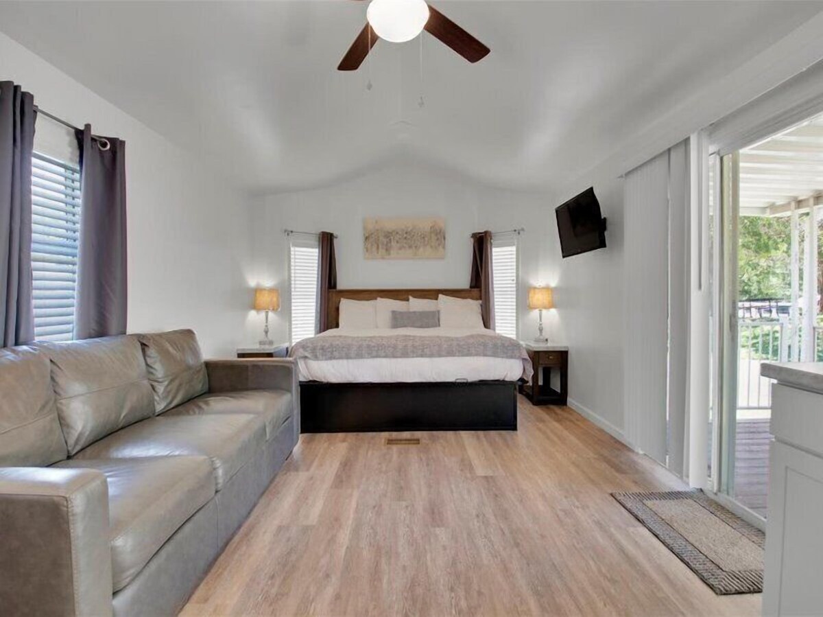 Escape to our charming studio-type park model home, nestled within the picturesque landscape of Gateway RV Campground in Pigeon Forge, Tennessee. Inside, you'll find a cozy haven thoughtfully designed for your comfort, featuring a full-sized bed and a king-sized bed, ensuring a restful night's sleep for all guests. This home can comfortably accommodate up to 4 guests. This home is equipped with amenities to make your stay enjoyable, including a kitchen with modern appliances and a comfortable living area. Don't miss the opportunity to experience the perfect escape in Pigeon Forge. Welcome to your ultimate retreat – book your stay now and immerse yourself in the charm and natural beauty of this idyllic mountain getaway. The Space KEY FEATURES: ☀ Air conditioning ☀ TV ☀ Microwave ☀ Refrigerator ☀ Stove ☀ Coffee Pot ☀ Free parking on premises ☀ Pets allowed ☀ Swimming Pool ☀ Laundry facilities ☀ Creekside Picnic Area ☀ Basketball Court ☀ Playground ☀ On-Site Store ☀ Clubhouse ★☆BEDROOM☆★ This home features a comfortable full-sized bed and a king-sized bed, ensuring a peaceful night's rest for all guests. Rest assured, the cozy mattresses and provided air conditioning ensure comfort and relaxation throughout your stay. ★☆BATHROOM☆★ The bathroom in this charming home features a walk-in shower, providing ample space and convenience for refreshing showers during your stay. ★☆KITCHEN AND DINING☆★ The kitchen in this home is fully equipped with all the modern essentials you need for cooking and dining comfortably, including dishes, pots, and pans, utensils, a microwave, coffee pot, refrigerator, and stovetop. ★☆LIVING ROOM☆★ The living area of this home is situated in the main room, providing a cozy space to relax and unwind. With ample natural light streaming in from the nearby windows, you can enjoy a bright and inviting atmosphere. Plus, its convenient proximity to the kitchen ensures easy access for dining and entertaining. ★☆OUTDOOR SPACE☆★ The outdoor area of this park model home provides a serene retreat, perfect for guests to relax and unwind. Whether you're soaking up the sunshine or enjoying the crisp mountain air, this outdoor space offers a peaceful oasis. Book your stay now for the ultimate getaway in Pigeon Forge, Tennessee! ★☆NEIGHBORHOOD☆★ Welcome to the bustling neighborhood surrounding Gateway RV Campground! Conveniently located in Pigeon Forge, our campground offers easy access to an array of exciting attractions just a short drive away. Experience thrilling water adventures at Soaky Mountain Waterpark, located just 22 minutes from our campground. Dive into interactive fun at WonderWorks, a mere 12-minute drive away, or marvel at marine life at Ripley's Aquarium of the Smokies, just 14 minutes away. For a day filled with excitement, head to Dollywood Park & Resorts, a quick 11-minute drive from our campground. If laughter is on the agenda, The Comedy Barn Theater is just 7 minutes away, promising an evening of side-splitting entertainment. Nature lovers will delight in the proximity to the Great Smoky Mountains National Park, only 17 minutes away. And for breathtaking views and outdoor adventures, ANAKEESTA is a short 13-minute drive from our campground. After a day of exploration, return to our peaceful campground to relax and recharge for another day of adventure. With so many attractions within easy reach, Gateway RV Campground is the perfect home base for your Tennessee getaway! ★☆GETTING AROUND☆★ Welcome to Gateway RV Campground, your gateway to adventure in Pigeon Forge! Getting around from our convenient location is a breeze, thanks to the trolley service that connects you to all the best attractions in the area. Plus, with McGhee Tyson Airport just a 30-minute drive away, reaching us is a breeze! From the thrilling rides of Soaky Mountain Waterpark to the mesmerizing exhibits at Ripley's Aquarium of the Smokies, and from the adrenaline-pumping adventures of Dollywood Park & Resorts to the laughter-filled evenings at The Comedy Barn Theater, all the excitement of Pigeon Forge is within easy reach from our location. If you'd rather not drive, don't worry! Trolly services are readily available to transport you to your desired destinations, ensuring you can explore the area without any hassle. With convenient access to transportation hubs and a variety of travel options, your adventure in Pigeon Forge starts the moment you arrive at Gateway RV Campground. Other Things To Note We are pleased to provide our guests with a basic set of bedding, towels, toiletries, and spices to ensure a comfortable and hassle-free stay. Please note that we have a quiet time policy in place at 10 pm, and the pool closes at 8 pm during the season. We kindly ask our guests to refrain from loud music or shouting during this time. However, normal voice volume is acceptable. This park model home is located within Gateway RV Campground providing you with the privacy of a traditional short term stay. In addition, providing you with shared amenities and on site support from our community. For your safety, we have provided a carbon monoxide alarm, fire extinguisher, and first aid kit in the property. Pets under 50 pounds are welcome. Our prices include all fees. No hidden fees.