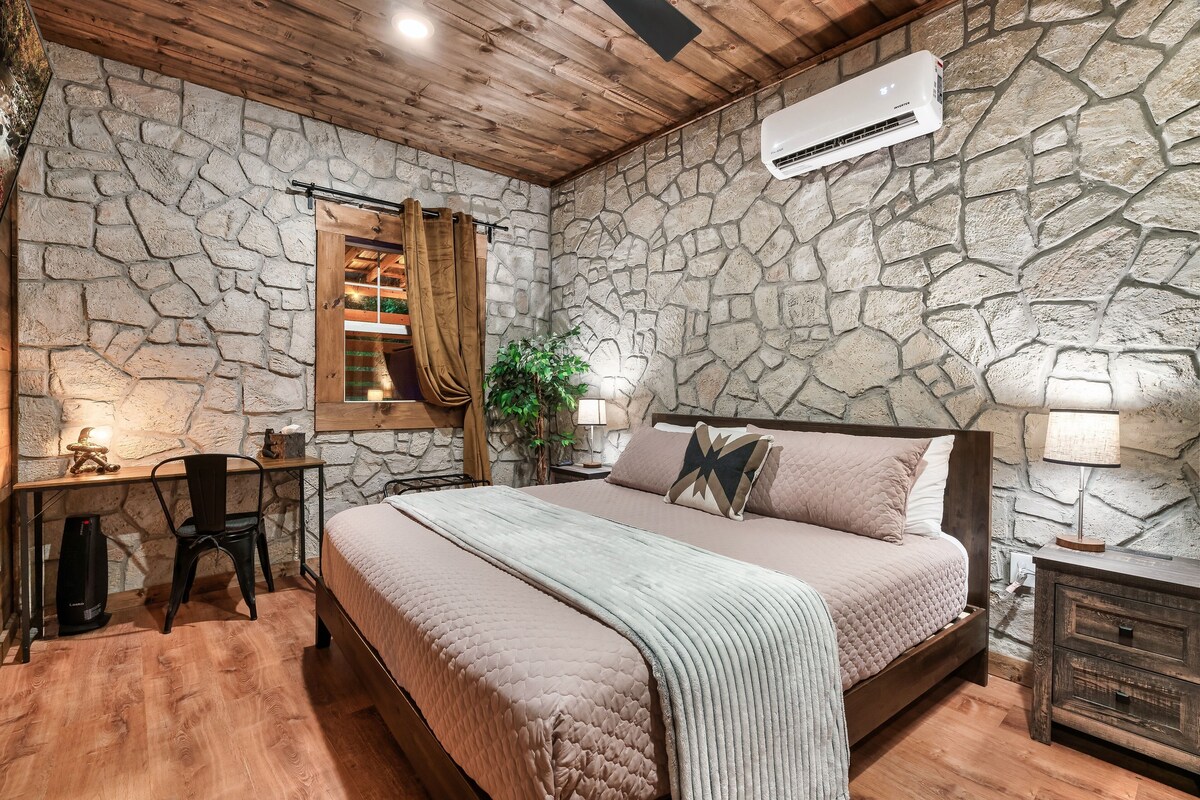 Welcome to Stone Hollow! Our cozy cabin is perfect for a romantic getaway, a small family vacation, or a fun trip with friends. Just a short drive from Dollywood, this charming retreat offers the perfect blend of adventure and relaxation. Unwind in the hot tub after a day of exploring, challenge each other in the arcade, or gather around the fire pit under the stars. With a king-size bed and queen pull-out, our one-bedroom cabin provides a comfortable and memorable stay. ENTERTAINMENT - Private 2 Lounger Hot Tub - Outdoor Fire Pit (BYO Firewood) - Park-Style Grill (BYO Charcoal) - Multicade - Board Games - Smart TVs - High-speed Wi-Fi (600 Mbps) LIVING ROOM - 1 Queen Pull Out Couch - Electric Fireplace - 55\ n Play BEDROOM - King Bed - Desk - 50" Smart Roku TV - Garment Rack with hangers - Luggage Rack - Space Heater KITCHEN Fully equipped with pots, pans, dishware, and cooking utensils COFFEE STATION - Keurig Coffee Machine - Drip Coffee Machine - Pour Over - Italian Coffee Machine - We do provide a starter kit of K-Cups, Instant Coffee, Ground Coffee, and Sugar. BATHROOM - Shower/Tub combo - Washer/Dryer - Hair Dryer - Essentials GUEST ACCESS - The whole house is yours to call home for the time of your stay besides 2 locked closets used for supplies. - AWD drive vehicles are not required (but still recommended), except for snow days. DISTANCES - Pigeon Forge: 6 miles / ≃ 10 min driving - Gatlinburg: 10 miles / ≃ 20 min driving - Dollywood: 8 miles / ≃ 15 min driving - Sevierville: 9 miles / ≃ 15 min driving - Great Smoky Arts & Crafts Community: 6 miles / ≃ 12 min driving - Bent Creek Golf Course: 14 miles / ≃ 25 min driving - Douglas Lake Resort Clubhouse: 16 miles / ≃ 25 min driving OTHER THINGS TO NOTE 2 DOGS MAXIMUM $99 per stay per dog. Please contact us if you ,