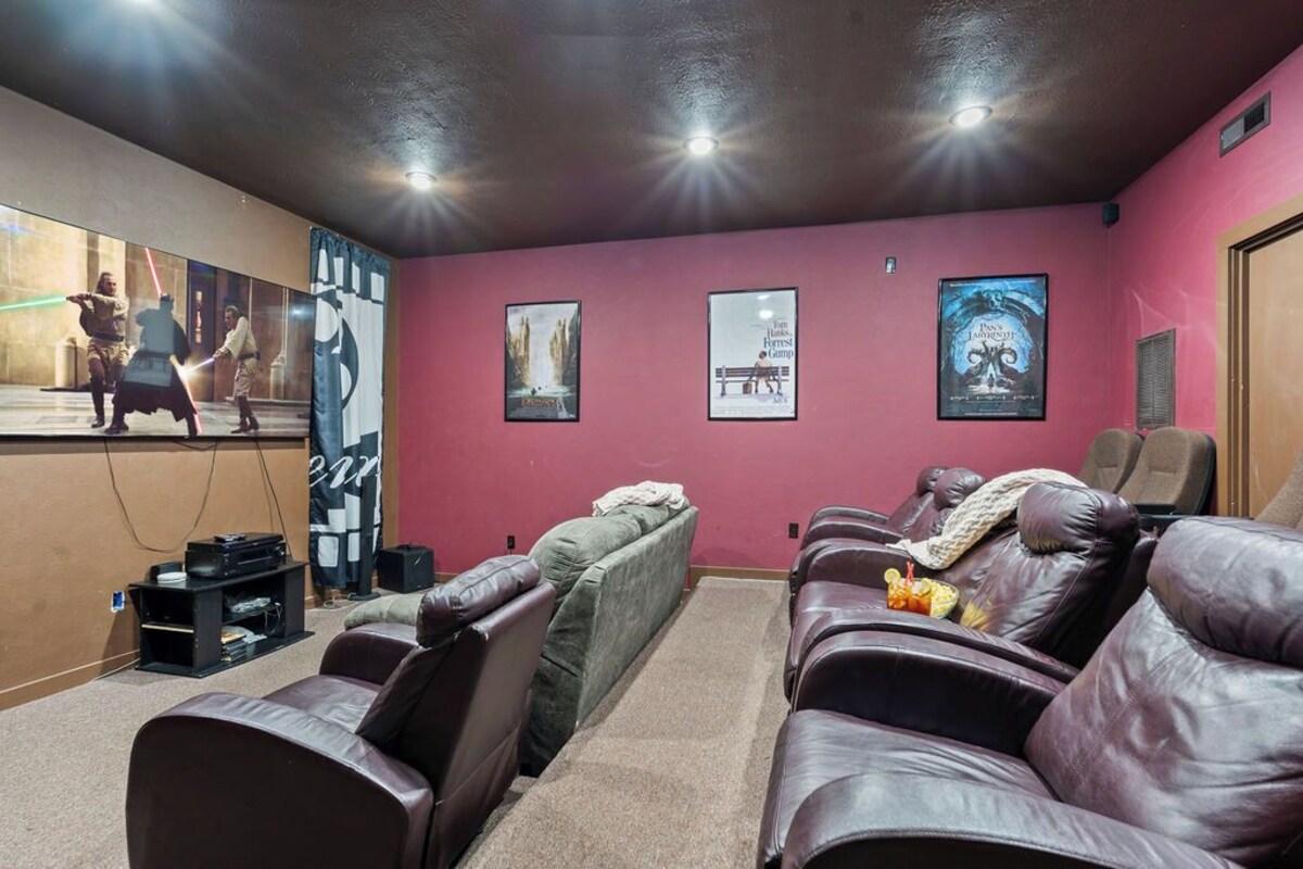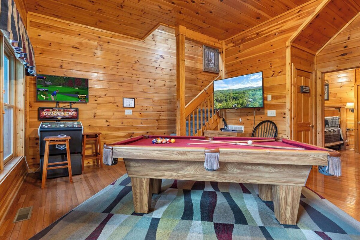 ★★ Welcome to Forget Me Not! ★★ • Sherwood Forest Resort, Pigeon Forge, TN Our true log cabin nestled in the Smoky Mountains offers breathtaking panoramic views and space for the whole crew! Unwind in the hot tub, challenge friends in the game room, or settle in for a movie night in your very own stadium-style theater. With an open-concept layout, cozy fireplaces, and nature all around, this cabin is the perfect place to disconnect, relax, and create unforgettable memories. ★★ LOCATION ★★ • Dollywood: 2 miles / 5-minute drive • Pigeon Forge Parkway: 1.4 miles / 3-minute drive • Gatlinburg: 7 miles / 8-minute drive • Great Smoky Mountains National Park: ~10 minutes • Resort Pool: 0.4 miles / short walk or drive ★★ KEY FEATURES ★★ • Panoramic Mountain Views • Private Hot Tub • In-Home Theater (85” Smart TV + Dolby Surround Sound) • Game Room: Pool Table, Golden Tee, Multi-Game Arcade • High Speed Wi-Fi • 6 Smart TVs • Indoor Fireplaces (Main Level + Master Suite) • Washer & Dryer • Ample Parking (up to 5 cars) • No steep or winding mountain roads • Seasonal Community Pool (Memorial Day weekend through mid-September, weather permitting) • Easy Access to Both Pigeon Forge & Gatlinburg ★★ SUPPLIES ★★ • Towels & Linens • Shampoo, Conditioner & Body Wash • Hand Soap • Toilet Paper, Paper Towels & Trash Bags • Fully Equipped Kitchen - Stainless Steel Appliances - Cooking Basics - Dishes & Silverware - Microwave - Oven - Refrigerator - Stove - Dishwasher - Coffee Maker: Drip Coffee Maker • Hosts Who Care ★★ HOME LAYOUT ★★ Accommodates 18 Guests • Top Level • - Bedroom 2: King Master Suite w/ Fireplace, Whirlpool Tub, - Private Bath, Smart TV - Bathroom 1: Full Bath - Loft Area: 2 Queen Beds • Main Level • - Bedroom 1: King Bed + Smart TV - Bathroom 2: Full Bath - Living Room: Sleeper Sofa, Smart TV, Fireplace - Kitchen & Dining Area • Basement Level 1 • - Bedroom 3: King Bed + Smart TV - Bathroom 3: Full Bath - Bedroom 4: Queen-Over-Queen Bunk + Smart TV • Basement Level 2 • - Theater Room: 85\ ve set up a convenient electronic keypad on the front door, so there ,
