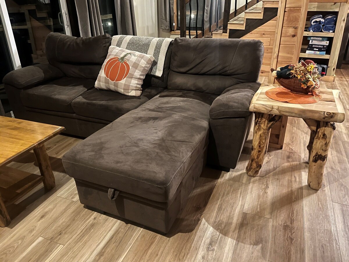 Unplug and unwind at Whiskey Barrel — a cozy, rustic 3-bedroom, 2-bath cabin tucked into the scenic hills of Pigeon Forge, Tennessee. With its unique whiskey barrel–inspired décor, pet-friendly charm, and cozy vintage character, Whiskey Barrel Cabin offers a one-of-a-kind mountain getaway. Perfect for families, couples, and small groups, this retreat captures the spirit of Tennessee — laid-back, welcoming, and full of flavor. This cabin is 3 stories. Enter onto the main floor which has the living room, dining room, kitchen, hot tub, and deck access. The lower level has the primary bedroom, a full bathroom, and the laundry room. It also is direct access to the yard. The upper level has 2 bedrooms and a bathroom. 🛌 Sleeping Arrangements • Bedroom 1: King bed with cozy bedding and rustic accents • Bedroom 2: Queen bed with log furniture • Bedroom 3: Queen bed with log furniture •. Pull out Sofa Full size 🧰 Extras & Essentials • Free high-speed Wi-Fi • Smart TV • Board games & books • Washer and dryer • Central A/C & heating • Free parking 🌲 Outdoor Amenities • Deck with chairs • Outdoor sitting area with fire pit (propane may not be full but you can exchange and send us the receipt. We will issue the refund of this amount to you. • Some games. ⚠️ Important Notes • This is a rustic, older cabin — not modern but has updates and full of personality • Access via paved roads that are typical for the area. • No smoking indoors Our prices include all fees. No hidden fees.
