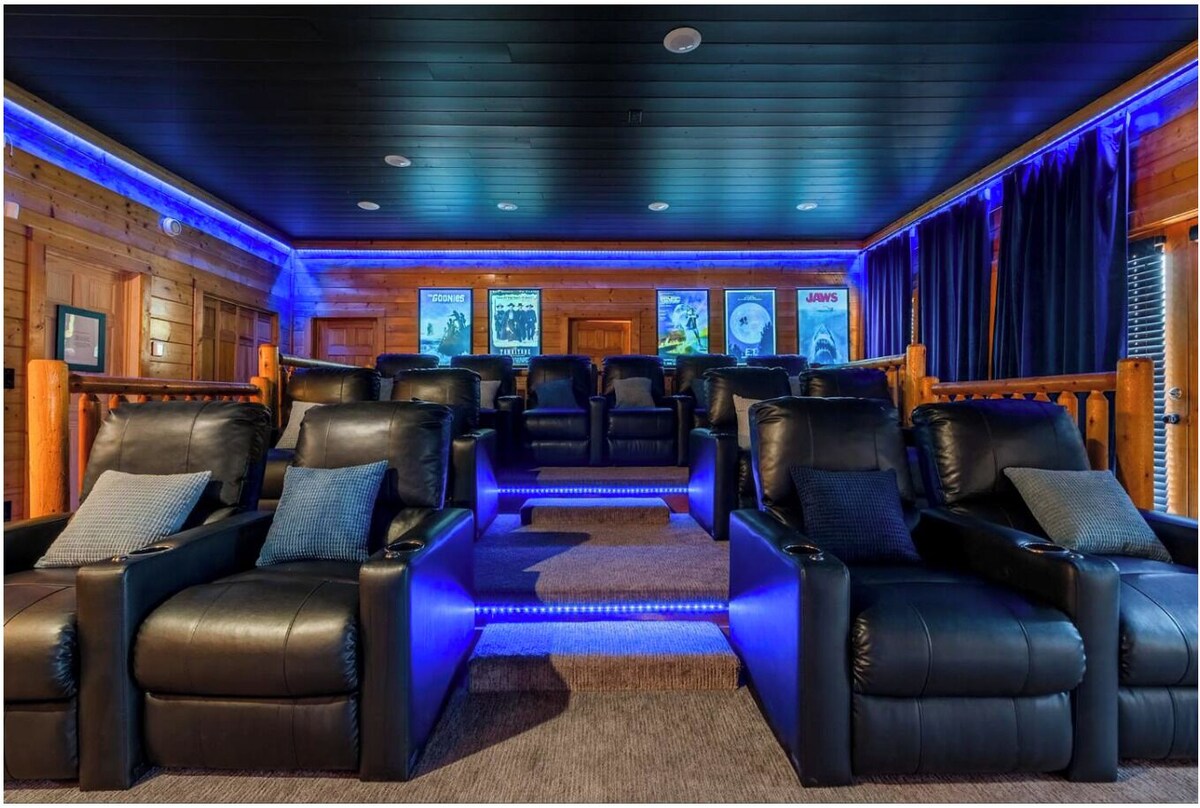 Welcome to Morning View, an 8-bed, 7-bath luxury lodge! Where your dream Smoky Mountain escape becomes a reality. Nestled high above scenic Wears Valley on a private ¾-acre perch, this stunning, newly updated log cabin combines rustic charm with luxury comforts, panoramic mountain views, & memory-making spaces perfect for families & groups. Private 3-hole mini-golf course, firepit, private movie theater, game room with real arcade games, pool table, 2 hot tubs & community pool! Plan your perfect holiday escape at our cozy cabin, where crisp mountain air, sparkling lights, and festive cheer set the scene for an unforgettable getaway. Gather by the fire, sip hot cocoa as the snow falls, and soak in the magic of the season from the porch. Your winter wonderland retreat is waiting. Come make it yours! We’re thrilled to welcome you to Morning View, our newest cabin! With years of experience hosting guests in the Smokies and over 2,000+ 5-star reviews across our properties, we’re committed to providing an exceptional stay. While this is a new account for properties we manage on behalf of friends and family, rest assured that your experience will be nothing short of spectacular. Morning View boasts 8 spacious king bedrooms and 7 full bathrooms, offering your group plenty of space to spread out and unwind. Two main-level suites even feature private sitting areas, perfect for those who want a quiet moment with a book or morning coffee. Whether you’re celebrating a milestone, reconnecting with family, or planning a multi-family getaway, this cabin has the space, style, and soul to make it unforgettable. As you arrive, the striking timber-frame architecture, classic log siding, and mountain backdrop set the tone for an extraordinary stay. Step inside and be greeted by soaring ceilings, exposed beams, and a warm, inviting atmosphere that instantly makes you feel at home. Every detail has been thoughtfully designed to create a space that feels luxurious yet cozy and ideal for both relaxation and connection. At the heart of the home is a beautiful open-concept living area, where your group can gather in comfort around the stone fireplace or sink into plush sofas after a day exploring the Smokies. The adjacent chef-ready kitchen is outfitted with stainless steel appliances, granite countertops, and all the essentials to whip up anything from pancake breakfasts to holiday dinners. When it’s time to eat, your group can gather around two oversized farmhouse dining tables, a rare find that allows everyone to sit together, share stories, and create lasting memories over delicious meals. But the real magic happens upstairs in the sprawling game room. With big windows that frame breathtaking mountain views, this space is packed with fun: Golden Tee golf, vintage arcade games, foosball, and a pool table. Whether it's a rainy day or just downtime between hikes, this entertainment haven delivers endless laughter and friendly competition. Downstairs, enjoy the ultimate group movie night in the private theater room, fully equipped with tiered leather recliners. From movie marathons to game-day gatherings, this cinematic space takes your vacation to the next level. Step outside and take in the crisp mountain air on one of three covered porches with two hot tubs, each offering panoramic views that stretch for miles. A private 3-hole mini-golf course, fire pit, and pergola with views of the mountains. Sip your morning coffee as the sun rises over the ridges, or unwind at night in one of two steaming hot tubs under the stars. Just beyond, the custom flagstone fire pit creates the perfect setting for stargazing, storytelling, and s’mores-filled evenings you’ll talk about for years to come. But the experience doesn’t stop there. As a guest of Morning View, you'll also have access to the Preserve Resort’s world-class amenities, just a short walk from your front door. Enjoy a seasonal mountaintop pool with panoramic views, a scenic pavilion with a fireplace, and a charming wedding chapel. Morning View offers the space, serenity, and wow-factor to make your Smoky Mountain getaway truly unforgettable. This isn’t just a cabin, it’s your next favorite memory. KITCHEN - The heart of the cabin, Morning View’s beautifully updated kitchen, is designed to make cooking for a crowd both enjoyable and effortless. Outfitted with sleek stainless steel appliances, granite countertops, and modern cabinetry, this fully equipped space has everything you need to prepare anything from hearty breakfasts to holiday feasts. Whether you're whipping up a quick lunch or coordinating a full family dinner, the open layout keeps you connected to the rest of the group, with easy access to the adjacent dining area where two oversized farmhouse tables provide plenty of seating for everyone to gather and share meals together. OUTDOOR AREAS AND DECKS- Step outside and immerse yourself in the natural beauty of the Smokies from one of three expansive covered decks that wrap Morning View in peace and panoramic views. Whether you're sipping your morning coffee as the sun rises over the mountains or winding down in the evening with a glass of wine, these outdoor spaces are made for relaxation and connection. The decks feature classic wooden rocking chairs, ideal for soaking in the sights and sounds of the mountains, and two steaming hot tubs invite you to unwind under the stars after a day of adventure. Just beyond, you'll find a custom-built fire pit. The perfect spot for storytelling, s’mores, and unforgettable nights around the fire. With space to spread out, stunning views in every direction, and cozy corners to relax, the outdoor areas at Morning View offer an unforgettable Smoky Mountain experience from the comfort of your own private oasis. RECREATION AREA - At Morning View , fun is always just steps away thanks to the sprawling upstairs recreation area designed for guests of all ages to play, laugh, and make memories together. 