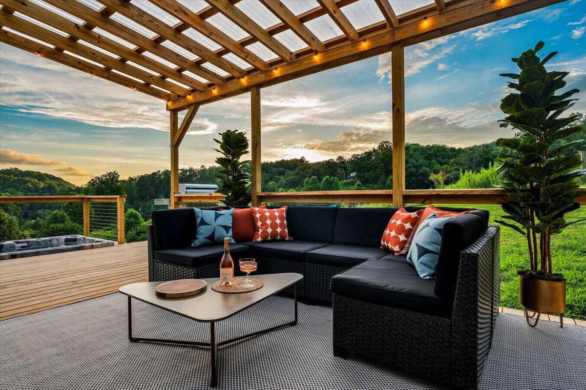 🙌Welcome to The Nova — A bougie mid-century modular with Smoky Mountain flair! This isn`t your ordinary trailer..it`s a one-of-a-kind retreat sitting on 1.5 acres of Dolly Parton farmland. Just minutes from the Pigeon Forge strip, The Nova blends bold design, luxe comfort, and endless fun - making it the perfect mix of staycation and adventure. 🐾2 PETS STAY FREE! 🌄Amenities You’ll Love: - Hot Tub - Cowboy Pool - Insta-Worthy Murals - Covered Deck with Outdoor Smart TV - Treehouse Net for Relaxing & Stargazing - Fire Pit with Outdoor Seating - Game Room with Pool Table, Ping Pong & Darts - Spacious Yard with Cornhole, Frisbee Golf & Golf Game - Outdoor Dining Area & Gas BBQ Grill - Pet Station with Food/Water Bowls & Cleanup Supplies - Coffee Bar with Complimentary Coffee - Smart TVs Throughout - Kids’ Games & Entertainment - Washer & Dryer - High-Speed Wi-Fi 📍Minutes to Top Attractions: 5 min- Preachers Smoke House (local favorite BBQ!) 11 min- Wild Bear Tubing (on the river) 16 min- Jayell Ranch Family Adventure Park 19 min- Dollywood 19 min- The Old Mill Restaurant 24 min - The island in Pigeon Forge 25 min- Great Smoky Mountains National Park 27 min- Applewood Farmhouse Grill 28 min- Downtown Gatlinburg 🌟 Decked Out for Fun Although it can be admired from nearly the entire trailer, this 680 square feet of deck is better to be experienced. Fire up the BBQ and enjoy a meal at the full dining table under cover, or work on your best vacation tan on the upper tier with your toes dipped into the Cowboy Pool. If you’re in relax mode, watch a movie on the comfy outdoor sofa, or take a nap on the treehouse net, just be sure to get your Insta-worthy photo in front of the mural first! If that’s not enough deck fun, have a soak in the hot tub and admire the stars. But wait, there`s more.. 🔥 Backyard Bliss & Fireside Nights Roast some weenies at the firepit, then burn some calories with a family frisbee golf challenge. Let the yard game fun continue with corn hole, golf chipping, connect four and giant jenga. If you get too hot, remember, Cowboy Pool! As the sun sets, look for that big dipper and get your s’mores roasting. But wait, there’s more.. 🎯 The Nova Game Lounge Follow the lit walking path down to your private, stand-alone game room—crafted for good times and endless fun! Inside, you’ll find a pool table, ping pong table, and a smart TV perfect for watching your favorite Youtuber. Let Dolly Parton (via cardboard cutout) welcome you at the playful bar area, complete with bar-style seating and café tables. Play a round of darts, chill with a drink, and keep that Insta active with yet another photo op mural of the Smokies—a one-of-a-kind backdrop for your unforgettable hangout. This ultimate retreat is kept perfectly comfortable year-round with a mini split system. 🎨 Bold, Bright & Built to Chill Step into a space that’s anything but ordinary—she may be a trailer, but she`s been crafted for luxury and for a vacation you`ll never forget. Although bold, edgy and packed with fun, high end comfort is filled throughout. With plenty of comfy seats for the whole family, let the indoor entertainment begin. Enjoy a movie on the large smart TV or have some snacks and family game night fun with many board game options. Whatever it may be, don`t forget to include the family doggo! We have treats for puppers too! 🍊 Retro Vibes & Modern Bites With a splash of retro charm—let’s start with what’s most important. Coffee Bar! We have it all! Drip coffee, French Press, Keurig (hot or cold brew). Coffee not your thing? Weird but we got ya covered with a tea kettle and a variety of teas. And now food—Your fully stocked kitchen has you covered with modern stainless steel electric appliances and anything you could possibly want or need. AND you have options to eat outside with melamine (fancy plastic) dishes or inside (both offer dining for 4). Baby on board, no problem, there`s a high chair too! 🛋️ The Designer King Den Your master is total luxury! Sink into the memory foam king bed with 100% cotton velvet bedding and pillows galore, bedside tables with charging ports, full size dresser, fun full length mirror, and a funky bench for your luggage. The ceiling fan and smart TV provide extra relaxation and entertainment—perfect for winding down after a day of adventure. You`ll also enjoy the convenience of your private attached full bathroom. 🛁 Spa Vibes Ensuite This full bath off of the king bedroom is all you need. Featuring a spacious walk-in shower and double sinks—perfect for getting ready side by side or unwinding after a day of backyard adventures. 🛌 Double the Comfort – Queen Bedroom Two queens are better than one! Just down the hall, you have not one but two plush queen-size beds on opposite sides of the bedroom. The room divider is a nice touch for a little added privacy and comfort. Both beds offer floating bedside tables, and modern sconce lighting with convenient USB plug-ins. This room also has a shared dresser and closet for extra storage. For added comfort, each bed has its own adjustable ceiling fan—perfect for a personalized night’s rest. 🚿 Fresh & Functional Full Bath Just outside the queen bedroom, this full bathroom features a walk-in shower, plush towels, and complimentary soaps—everything you need to refresh and recharge during your stay. 🌌 Your New Outdoor Vacation Awaits Whether you`re having a sip with “Dolly”, soaking in the hot tub under the stars, posing for your best photo with friends in the game room, or savoring coffee on the deck during a quiet, peaceful morning with stunning views, The NOVA delivers unforgettable luxe trailer vibes at every turn. With its perfect mix of modern style, playful charm, and outdoor adventure—plus easy access to Pigeon Forge, Gatlinburg, and the Smoky Mountains—this one-of-a-kind retreat is more than a getaway. It`s an experience. We can’t wait to host your 