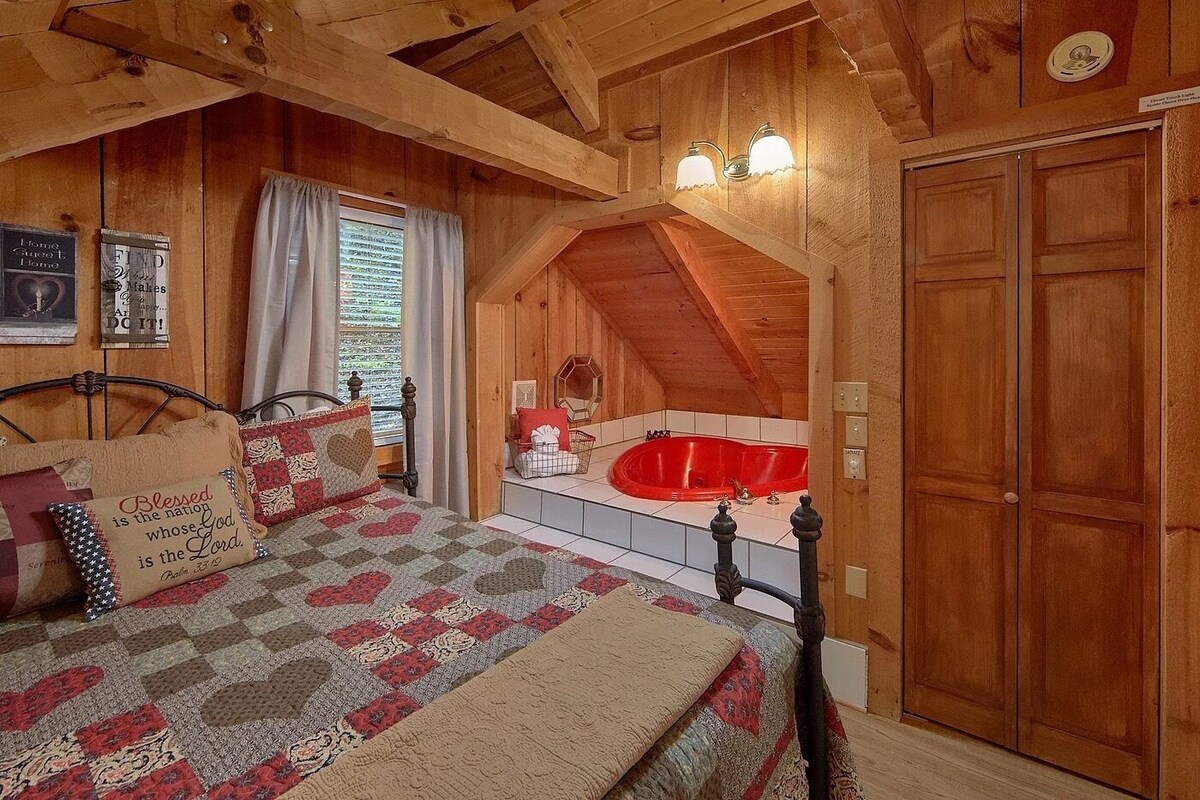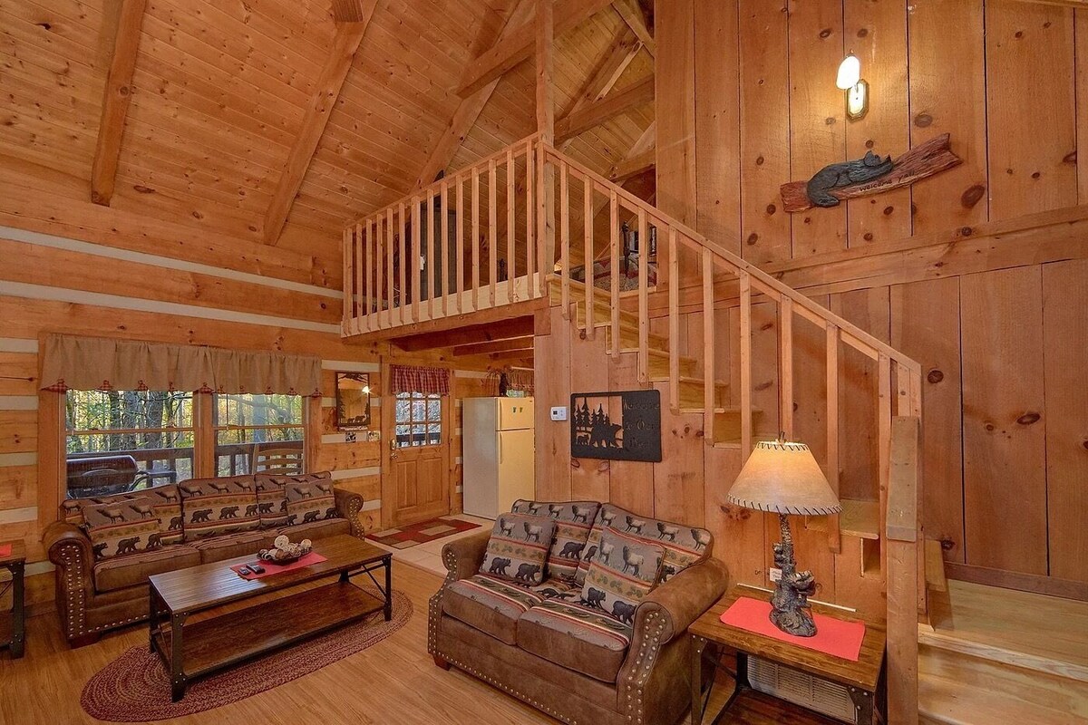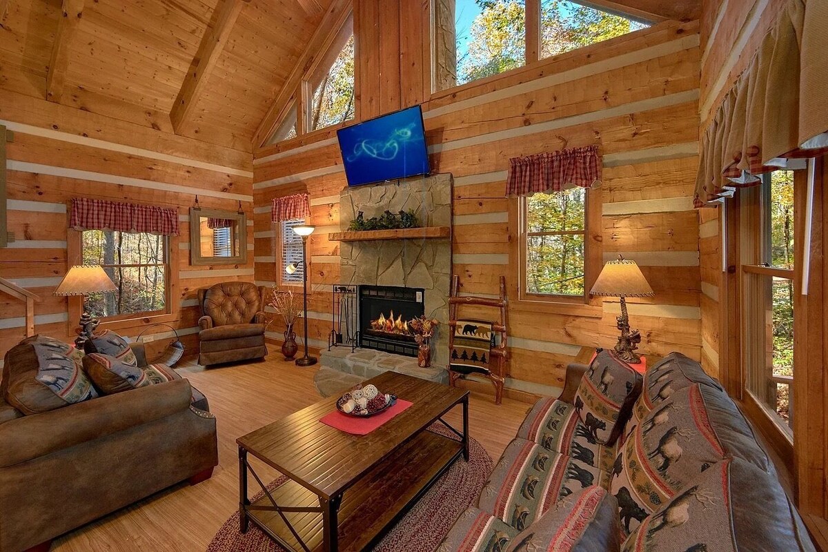 Thanksgiving: Convenient to all the excitement yet this cabin has a peaceful feeling perfect for couples wanting to unwind or small families wanting to connect. It features: -king size loft bedroom with soaking tub -queen size sofa bed -cooking essentials & BBQ -Private Hot Tub -Hand Hewn wood beams -Porch with Rocking Chairs -Peaceful wooded view with seasonal creek -Firepit -Retro Gaming console with thousands of games you grew up with -Record player with classic records -Pets Welcome (please message before booking $75 fee) A private escape to retreat to during your smoky mountain adventures. Our prices include all fees. No hidden fees.