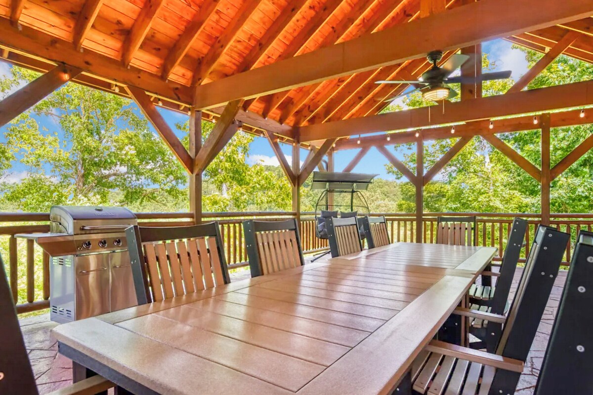 Welcome to Majestic Splash, your ultimate Smoky Mountain luxury retreat! This stunning 8-bedroom, 8.5-bath. and is packed with resort-style amenities that make every moment unforgettable. Dive into your private indoor heated pool for endless fun, soak your cares away in the hot tub with breathtaking mountain views, or cozy up by the fireplace in the expansive living room, featuring soaring tall ceilings, plush seating, and windows that fill the space with light and bring the mountains inside. Plan your perfect holiday escape at our cozy cabin, where crisp mountain air, sparkling lights, and festive cheer set the scene for an unforgettable getaway. Gather by the fire, sip hot cocoa as the snow falls, and soak in the magic of the season from the porch. Your winter wonderland retreat is waiting. Come make it yours! We’re thrilled to welcome you to Majestic Splash, our newest cabin! With years of experience hosting guests in the Smokies and over 2,000+ 5-star reviews across our properties, we’re committed to providing an exceptional stay. While this is a new account for properties we manage on behalf of friends and family, rest assured that your experience will be nothing short of spectacular. Majestic Splash sleeps 20 and is located in For By Grace Resort, a hidden treasure in the heart of Sevierville, Tennessee, within picturesque Sevier County. This charming community blends serene natural beauty with modern convenience, making it an ideal retreat for families, retirees, or anyone seeking a peaceful mountain getaway. Outdoor enthusiasts will love easy access to the Great Smoky Mountains, nearby hiking and fishing, as well as local shops, dining, and recreational attractions. With so much to explore, it’s truly something for everyone in this idyllic Tennessee community. Entertainment is endless here. The living room features an electric fireplace and 2 cozy couches. The game room is designed for all ages, featuring a full-sized pool table, three arcade games: NBA Jam, Buck Hunt, and a multi-arcade machine, and four comfy sofas for kicking back with your favorite shows. Whether you’re challenging friends, keeping the kids entertained, or just relaxing after a day of exploring the Smokies, the game room is the perfect retreat. At Majestic Splash, you’re not just booking a cabin, you’re booking a mountain resort all to yourself, where every day is filled with fun, relaxation, and unforgettable memories. Book now and let the magic begin! KITCHEN - The gourmet kitchen at Majestic Splash is a chef’s dream, featuring modern appliances, ample counter space, and all the cookware and utensils you need to create delicious meals for your group. Adjacent to the kitchen is a beautiful farm-style dining table that comfortably seats large families, making it perfect for shared meals, celebrations, and memorable gatherings. With easy access to the decks, it’s ideal for mixing indoor cooking with outdoor dining and the mountain crisp air. OUTDOOR AREAS AND DECKS- The outdoor spaces at Majestic Splash are a true retreat for fun and relaxation. Lounge on the spacious decks with comfortable seating and take in the breathtaking mountain views, fire up the grill for a family cookout, or simply unwind and enjoy the fresh mountain air. Don’t forget the private indoor heated pool, perfect for year-round swimming and endless fun, then step outside to soak up the scenery on the additional deck. Whether it’s morning coffee, evening cocktails, or quality time with friends and family, every outdoor corner is designed to make your stay feel like a luxury mountain resort. RECREATION AREA - The recreation areas at Majestic Splash are your ultimate destination for fun, laughter, and unforgettable moments. Step into the game room and let the excitement begin. Challenge your friends or family on the full-sized pool table, dive into the action on three arcade games, NBA Jam, Buck Hunt, and a multi-arcade machine, or sink into the four plush sofas and catch your favorite shows on the TV. With something for everyone, from kids to adults, this space is perfect for friendly competitions, game nights, and making memories that will last a lifetime. Lower level (1st story): • Gameroom with four large sofas, TV, full-sized pool table and 3 arcade games: Big buck, Multigame Arcade game and NBA Jam • Hot tub • Stacked washer and dryer • All Bedrooms have TVs Main Floor (2nd story) • Large living room with TV and electric fireplace • All Bedrooms have TVs Separate Deck (Top Level): • BBQ grill • Outdoor dining table Separate Deck (Lower Level): • Indoor pool • Half Bathroom BEDROOMS - (Sleeps 20) Lower Level • King bedroom with TV and ensuite bathroom • King bedroom with TV and ensuite bathroom • King bedroom with TV and ensuite bathroom • 4 Queens with 2 Queen/Queen bunks with TV and an ensuite bathroom Main Level • King bedroom with TV and Ensuite Bathroom. • King bedroom with TV and Ensuite Bathroom. • King bedroom with TV and Ensuite Bathroom. • King bedroom with TV and Ensuite Bathroom. ADDITIONAL AMENITIES – • Cozy Hot private tub open year-round • Full-sized pool table • 3 Arcade Games • High-speed Wi-Fi internet access • Gas Grill • Keurig and Drip coffee maker available for your stay! Please bring your own coffee grounds and K-Cups. • Stacked Washer and dryer available to use during your stay. • Heating & A/C • Parking for 9 standard-size vehicles. • We provide a set of starter supplies to allow you to get settled when you arrive. They include 2 trash bags, 2 dishwasher pods, a paper towel roll, a small liquid dish soap bottle, toilet paper, a small bottle of shampoo, body lotion, body wash, conditioner, and a soap bar for each bathroom, towels, bed, and linens. They are designed so that you are all set when you arrive, but not to last the entire trip. • Less than 12 miles from downtown Gatlinburg, and access to all the area has to offer, which inclu