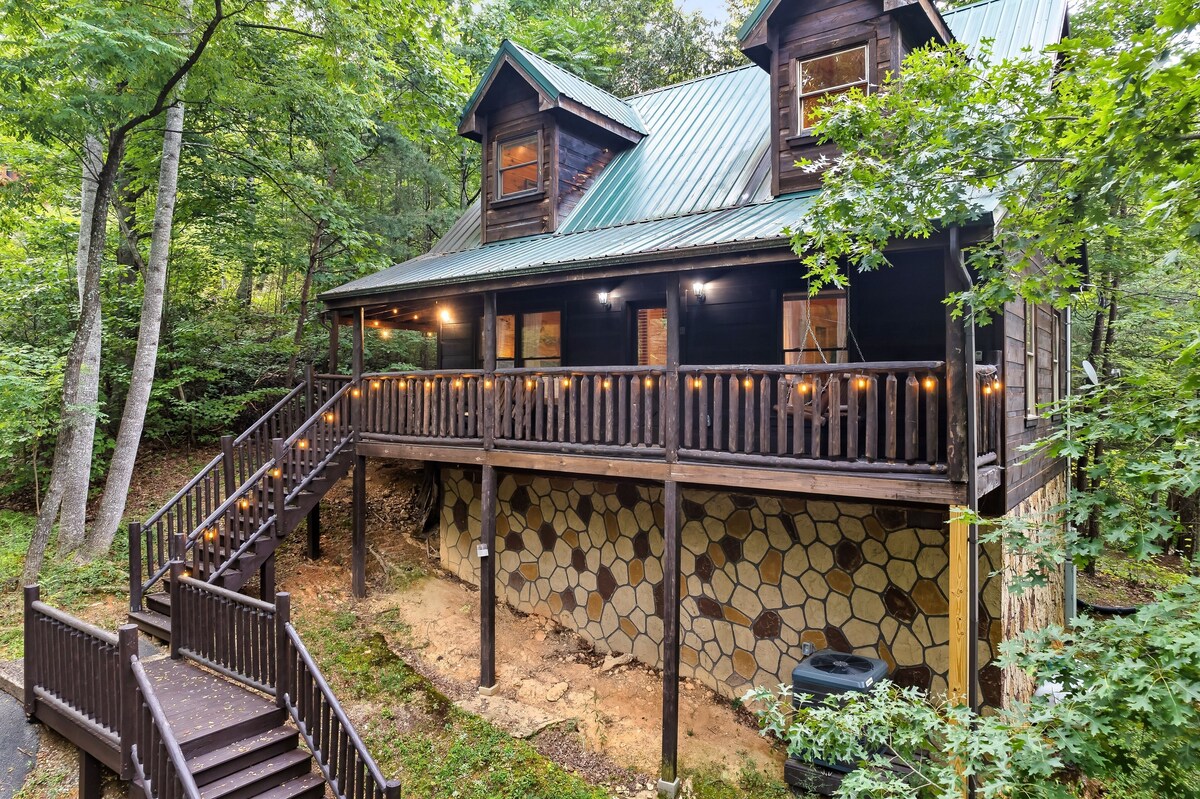 Welcome to 'Ever & After Cabin', the perfect Smoky Mountain get-away for that romantic retreat or a small family adventure. This charming 2-story pine cabin is tucked away in the woods of Sky Harbor, conveniently located 12 minutes away from the amusement parks and adventures in Pigeon Forge, and 15 minutes from the fun-filled streets of Gatlinburg, and just 20 minutes from the Smoky Mountain National Park Sugarland Visitor Center. ☆ Pet friendly! (Pet fee already included in nightly rate) 2 pets max. ☆ Prime Location! ☆ 7 Miles to Smoky Mountain National Park ☆ 4 Miles to Pigeon Forge ☆ 6 Miles to Gatlinburg ☆ Indoor Jacuzzi tub ☆ Wi-Fi / Roku 3 TVs ☆ Pool table ☆ Hot Tub ☆ BBQ ☆ Fully Stocked Kitchen ☆ Keurig & Regular Coffee Pot ☆ Sleeper Sofa ☆ Covered Outdoor Dining ☆ Porch Swing ☆ Washer / Dryer ☆ 2 Vehicle Parking ☆☆ About this space ☆☆ If you enjoy being surrounded by nature, you'll love the wonderful pine fresh smell of this charming cabin in the woods. The spacious main floor living room boasts an open, light filled design that seamlessly blends with the natural beauty surrounding your space. Enjoy the Beary Nice comfortable furnishings that include a sleeper sofa for little ones or guests. Snuggle blankets are provided so you can cozy up while basking in the glow of the fireplace. All 3 Flat screen TVs are equipped with Roku devices providing 350 channels and easy casting from your own mobile device. ☆☆ KITCHEN ☆☆ The open kitchen with all major appliances has everything you need to cook or bake. You can even make homemade blueberry waffles with the provided waffle iron. And, of course, there is a coffee pot and Keurig machine. Enjoy your meal on the beautiful hand-crafted chestnut dining table that seats 4 or choose to have breakfast out back on the covered deck! ☆☆ BEDROOM / BATHROOM ☆☆ Off the kitchen you'll find a full bathroom with a tub/shower combo. In the tastefully furnished bedroom, you will find soft and cozy linens and a super comfortable king-size bed. If you like to watch TV in bed you will appreciate the 40” flat screen smart TV. Guests love the huge jacuzzi tub, but when you want even more room to soak, you can step outside to the hot tub. ☆☆ HOT TUB ☆☆ For moments of relaxation, step outside onto the expansive deck where you'll find a private hot tub. Immerse yourself in the warm, bubbling water while surrounded by the sounds of nature and the clean and crisp mountain air – a perfect way to unwind after a day of exploring the nearby hiking trails or enjoying the attractions of the Smoky Mountains. ☆☆ LOFT / GAME ROOM ☆☆ Upstairs, you can play games or watch TV in the Game Room with Roku while you play pool or as you belly up to the bar. A full-size washer and dryer are available for your convenience upstairs as well. It is a great place to spend some time and have a quality time with your family and friends. ☆☆ COVERED BACK DECK ☆☆ Enjoy the woodsy tranquility in back where you can enjoy a drink or a meal in the fresh air outdoors or have a delightful soak in the hot tub after a long day full of adventures and exploring. If you like to BBQ, we have you covered with a gas BBQ, utensils and brushes. We just ask that you brush the grill for the next guests. A pet dish is also available, just please clean it afterwards, so you won't leave temptations for the bears! Thank you. It's an amazing area and a wonderful place to get away and yet never leave the modern comforts behind. We love it and truly hope you will as well. ☆☆ CLEANING FEE ☆☆ The only fee we charge is a cleaning fee. This fee goes directly to the family that cleans the property between each stay and is designed to be a Fair Living Wage. Between each stay the property is thoroughly cleaned and sanitized, and all towels and linens are replaced with fresh clean towels/linens that have been freshly laundered. ☆☆ WINTER ACCESS ☆☆ While it's very rare, during winter storm conditions 4WD and/or snow chains may be necessary to access the property. All roads leading to the property are paved. ☆☆ HIGH SPEED INTERNET WIFI ☆☆ High speed internet Wi-Fi is offered which supports multiple streaming devices. But because of the mountain region, sometimes there can be outages and we do not guarantee internet would be supported in such unfortunate circumstances. We are not responsible for internet outages or other conditions which are out of our control. Our prices include all fees. No hidden fees.