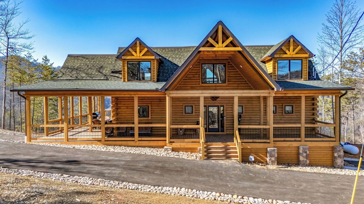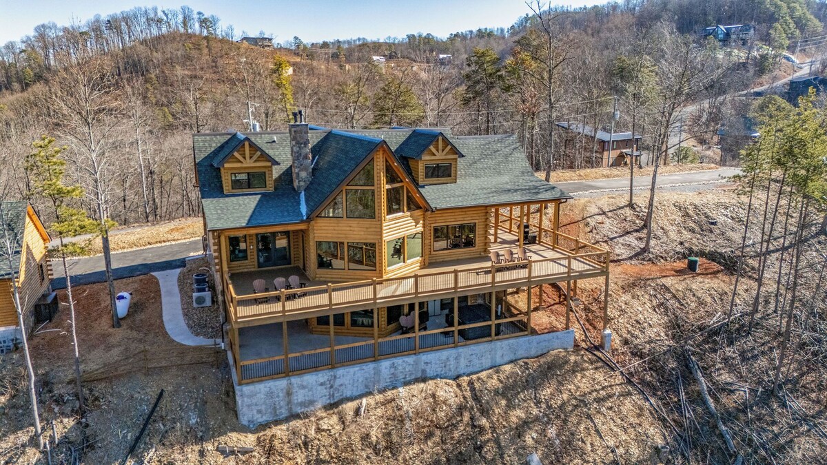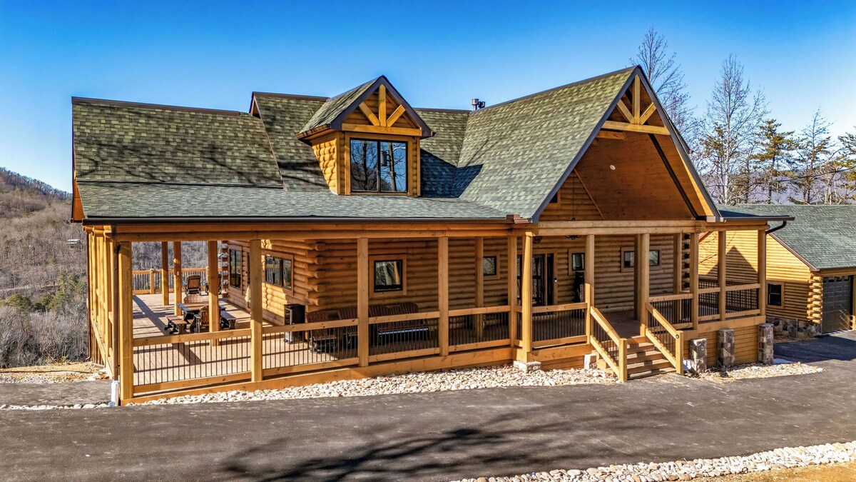 TIPPY TOP Lodge- Is a New Construction 4600 sq ft. cabin. A gorgeous tri-level (3) with wide porches on 2 levels. There are 6 bedrooms, 3. Full bathrooms, 2 half baths. A True Log custom built cabin located in Shagbark Resort, a guard gated community approx. 6 miles from the parkway at light #3 in Pigeon Forge. The views from the cabin are spectacular hence the name of the cabin. The lot that Tippy Top Lodge sits on is 3.5 acres on top of a ridge by itself, giving you great privacy. We are taking inquiries and bookings Now for reservations starting in August 2024. Be some of the first to stay in this Brand New Cabin. I look forward to working with you soon to make your stay a memorable at Tippy Top Lodge 2024 Rentals Are Created Equal\ ,
