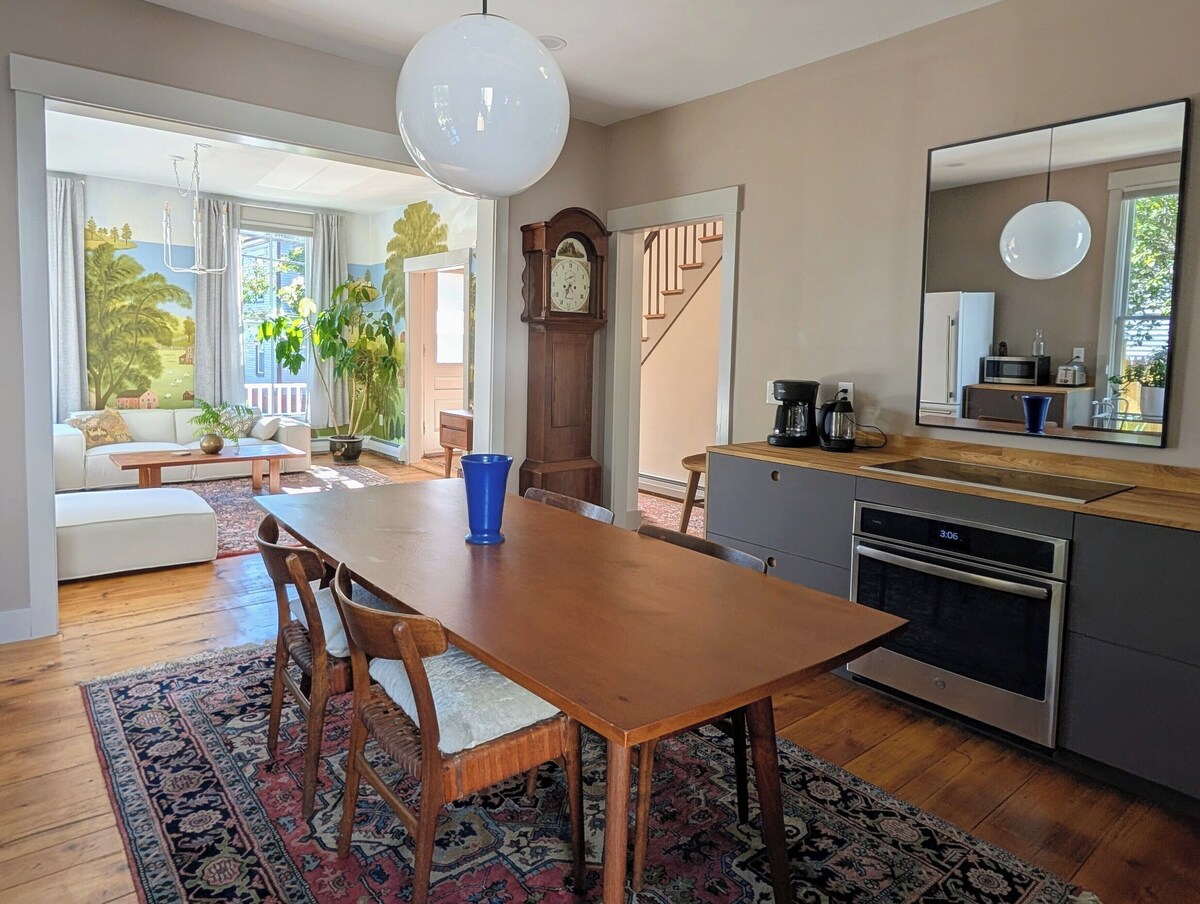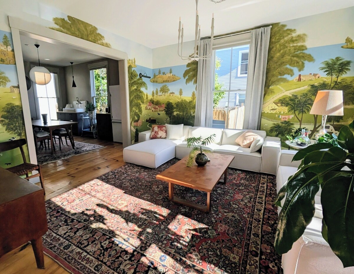 Centrally located within Portland's charming Munjoy Hill neighborhood, your home away from home is only a 5 minute walk to the Eastern Promenade and restaurants, breweries, bars and shops on Congress and Washington streets. The Old Port and Downtown are also just a 15 minute walk away. This superb house features a stunning living room wrapped in a bucolic mural with plenty of comfortable seating and a large screen TV. The kitchen is well appointed and equipped with all the cooking implements you could need, as well as a coffee maker and electric kettle. For sleeping arrangements there are 3 bedrooms, 2 queen beds and 1 twin bed, perfect for a group of friends or family. The 2 bathrooms boast an oversized soaking tub and a walk-in shower. Come experience the elegant allure of this property during your stay. I look forward to hosting you at my place. Our prices include all fees. No hidden fees.