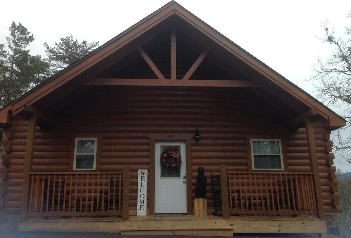 Bearfoot Escape is located just 1 mile off the parkway, making the property extremely convenient to all of the Pigeon Forge attractions, while still providing a warm and cozy cabin experience. Upon arriving at Bearfoot Escape you will find convenient parking and access to the cabin with no steep grades or long distances to carry luggage or groceries. With one small step onto the front porch, you will be welcomed by the Bearfoot Escape Black Bear that we so lovingly named Scruffy. Upon entering the cabin you will find an open floor plan, with a fully equipped kitchen, dining table that will easily seat eight to ten, warm and cozy fireplace and a comfortable seating area to watch a little TV or rest after a fun filled day! Off the great room is the first of 2 large master bedrooms with a jetted tubs and master bathrooms. Each level of Bearfoot Escape has a spacious deck that spans the entire back side of the cabin, allowing for ample room for outdoor entertainment and great views of the surrounding woods and mountains. The second level of Bearfoot Escape provides a wide range of indoor entertainment options, such as the surround sound Theater Room that seats nine. Here you can cheer on your favorite sports team or watch one of the many movies there to choose from, while snacking on a bag of popcorn Scruffy leaves for all of our guests! Play a game of 8-Ball on the pool table or try your hand at a game of cards or one of the many board games provided for your entertainment. There is no need to run back and forth upstairs, because there is a mini-fridge to hold your drinks and a half bath for added convenience. You'll also find the other master bedroom and master bath on this level. All sofas are sleeper sofas. The deck off this level holds a 8 person hot tub and a 2 person . High speed wifi is available and a phone on each level. Make sure to take advantage of the amenities offered by renting a vacation cabin in a resort! Alpine Mountain Village offers walking trails, two pools, playground, picnic pavilion and bond fire area. A chapel is available for those looking to get married or renew their vows. Cutest chapel ever!!! Come kick your shoes off and start making memories with us at Bearfoot Escape! Our prices include all fees. No hidden fees.