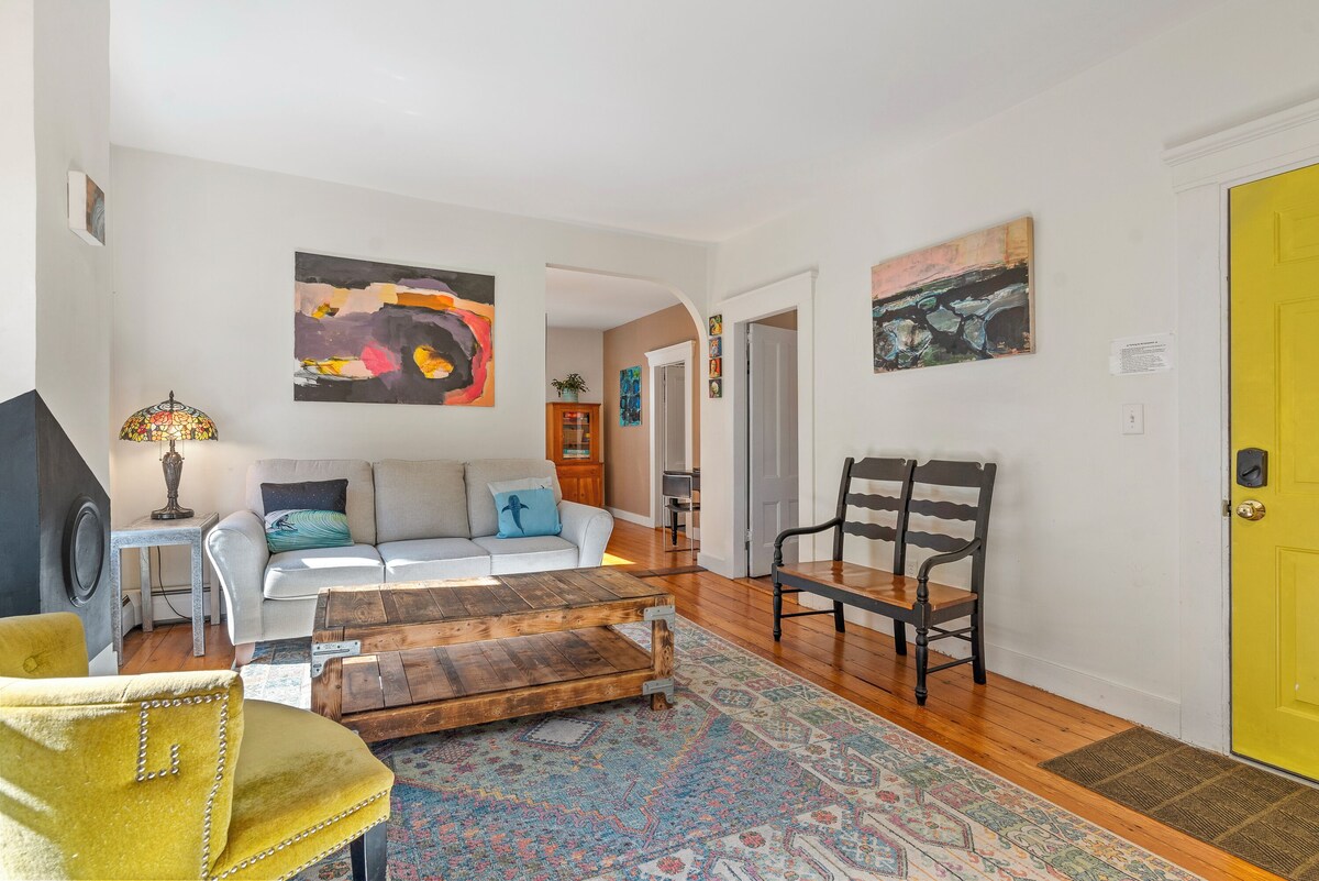 Our Greek Revival home, built in 1875, combines beautiful historic details with modern updates to create a cozy and eclectic space that is the perfect home base for exploring this vibrant and exciting city. Our location is ideal, with a walkers paradise score of 99. Just blocks away from some of Portland's greatest attractions, including award-winning restaurants, coffee shops, and bars. We are committed to providing you with a warm and inviting environment that you will love. Our spacious 3 bedroom apartment in Portland, Maine, is the perfect spot for guests to experience all the city has to offer. The apartment is located on the second and third floors of the building, with a unique loft space on the third floor containing a queen bed, providing guests with plenty of space to relax and unwind during their stay. Our listing features a master bedroom with a luxurious king-size bed, along with high-quality sheets, duvets, and pillows, ensuring guests have a comfortable and restful night's sleep. In the bedroom off of the living room, we offer a comfortable queen-size bed with the same high-quality bedding. The loft bedroom, accessed via a spiral staircase, provides guests with a unique and cozy space to relax and unwind, with a queen-size bed and luxury bedding. Our fully equipped kitchen is perfect for those who enjoy cooking, with everything guests need to prepare a delicious meal, including pots and pans, a gas stove and oven, and a toaster. Guests can enjoy their meal at our hand-made farmhouse-style table with bench seats, which can seat up to 8 people. We also offer modern amenities for guests' entertainment, including a 55\ ,