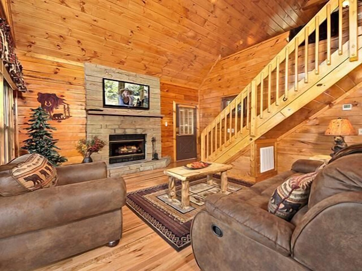 - ALL ADVERTISED \ in the Country Pines Resort features an enclosed (PRIVATE) bedroom on the main floor and an open loft (NOT PRIVATE) space upstairs, which includes a secondary queen bed, with a dresser and TV. - This cabin is not advertised as being \ throughout the inside floorplan, however, there is a wheelchair ramp in place of steps to access the main floor of the cabin. - Not a secluded cabin. Due to being located in a resort setting, there will be neighboring cabins. - Cabins located in the Country Pines Resort, such as this one, are not advertised as cabins displaying any views; these cabins are set in a wooded area, so you will not experience a mountain or city view when reserving this rental property. - Cabins are easily accessible year-round as the roads are well maintained by the resort staff to provide stress-free travel to all guests. The resort is lower in elevation and features roads that are paved, wide, and do not require special vehicles or four-wheel drive to navigate, however, should a four-wheel drive vehicle be accessible to you, it would benefit our guests to drive that vehicle when visiting during the winter months in case of snowfall, to be able to access other parts of town comfortably. - Offers a natural wood burning fireplace inside of the cabin; please keep in mind, our office does not supply wood to guests during their stay. - Furnished with Aspen Log Furniture to enhance the rustic cabin experience. - Charcoal for the outdoor grill, kitchen spices/oils for preparing meals in the kitchen, coffee filters for the coffee maker, and clothes hangers for the closets are special items that we would like to point out that we do not provide to guests during their stay. Our prices include all fees. No hidden fees.