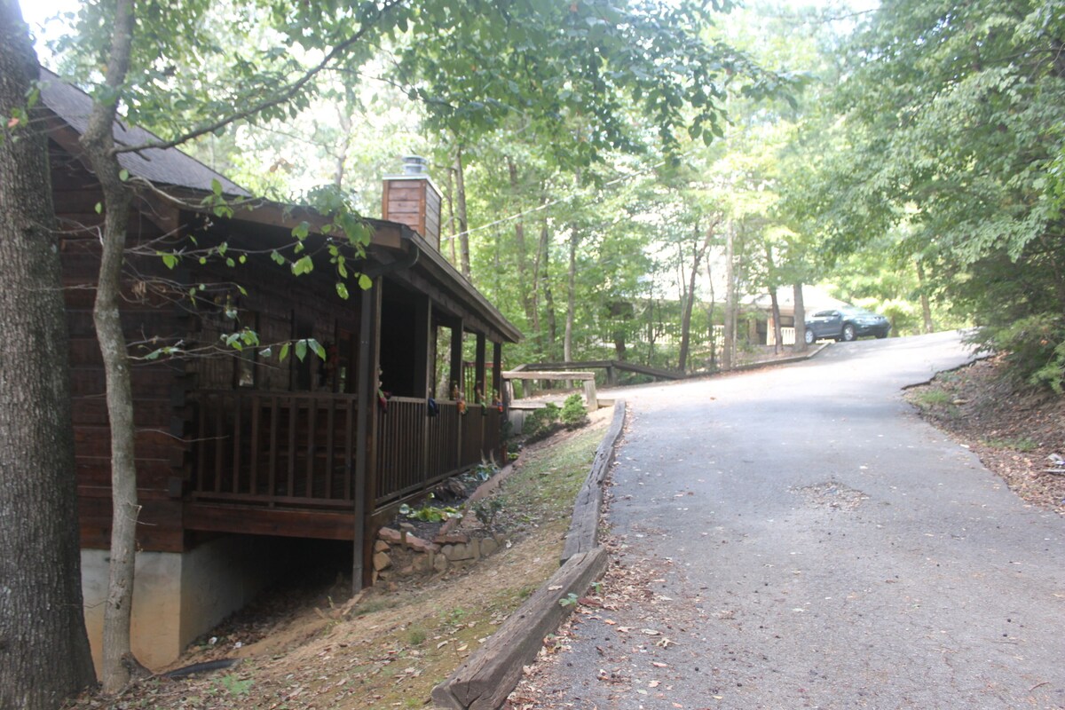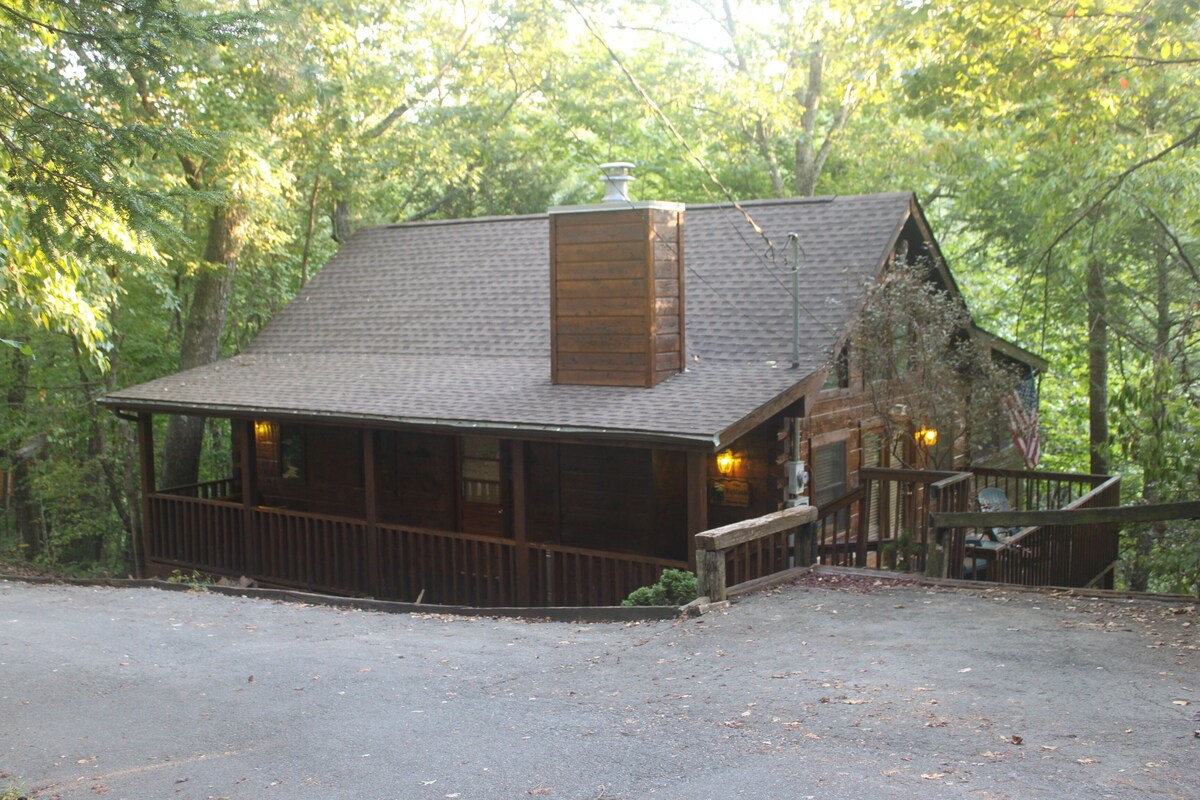 The Highlands is a rustic, pet-friendly cabin located about 5 miles from the heart of Pigeon Forge. It sleeps 2 and has an enclosed back deck with a hot-tub and plenty of seating for entertaining. There is NO grill at this cabin. The couch has 2 recliners, and there is also a separate recliner. There are 7 steps down to the front porch from where you park. Our cabin is located 5 miles from the Pigeon Forge strip at traffic light #3 (Wears Valley Road). It is in the Hidden Mountain WEST area. It is a rustic cabin, which offers a roomy hot tub on an enclosed back porch. It has a big screen TV, dvd player and plenty of movies, games and magazines. Our cabin is NOT located high on a mountain and all the roads leading to the cabin are paved. The last 100 feet to the cabin, is a slight incline. We have a fully stocked kitchen, and your furry babies are always welcome. Our prices include all fees. No hidden fees.