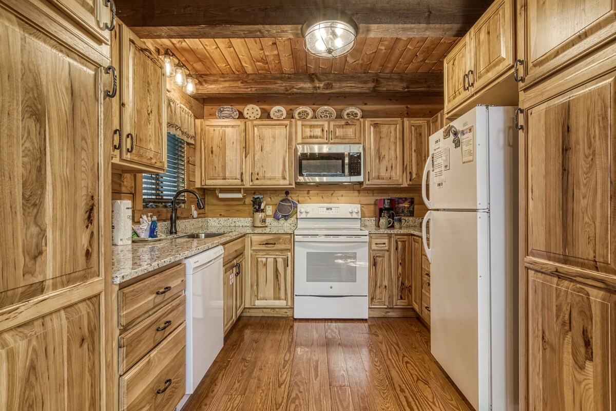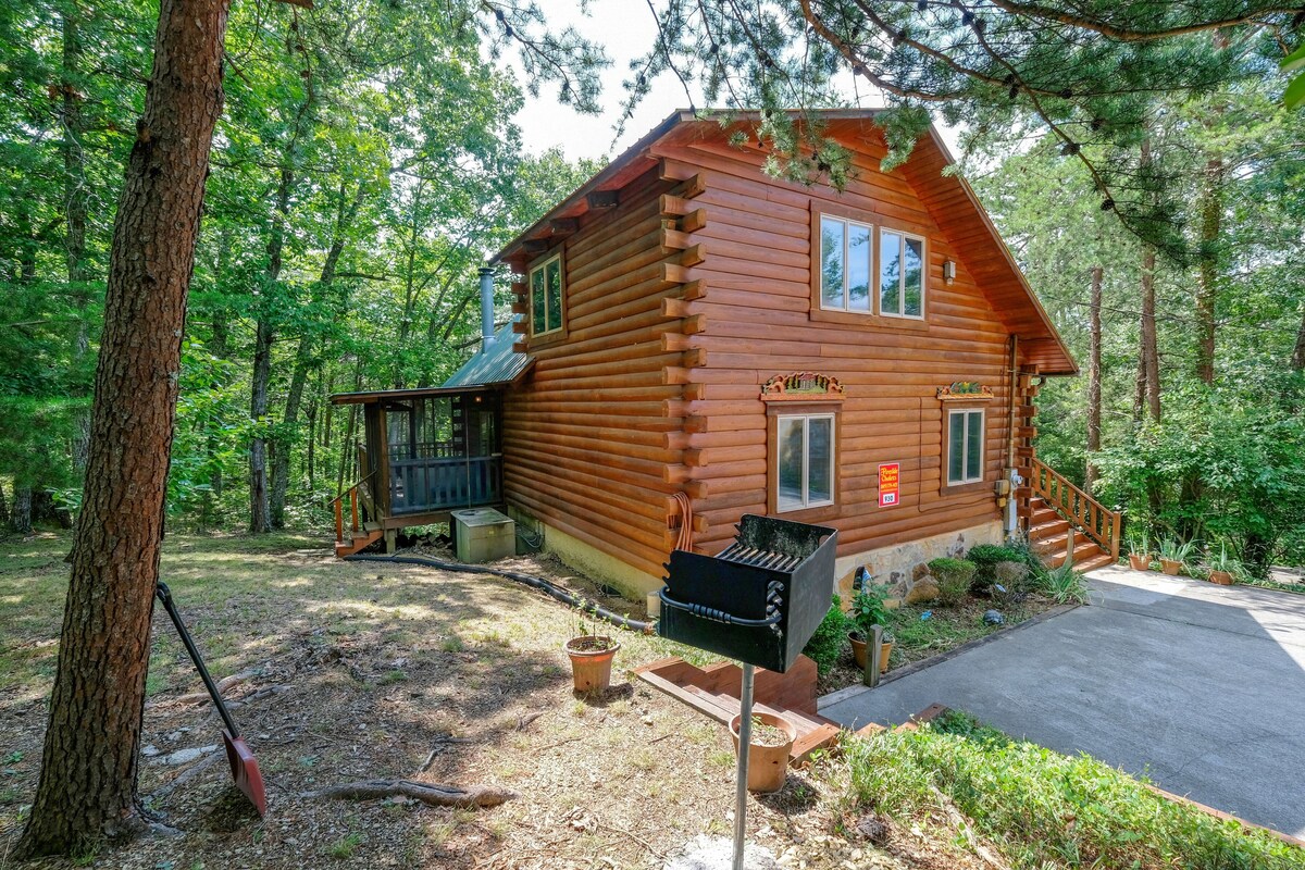 Pigeon Forge Cabin, Cedar Lodge unit 930, is in Pigeon Forge across the Little Pigeon River from the Dixie Stampede and convenient to all the attractions that the Smokies have to offer. It is located just 2 miles from downtown Pigeon Forge, 4 miles from Dollywood, and sits in a semi-private setting. Cedar Lodge is close to Dollywood, the Gatlinburg Golf Course, Tanger Five Oaks, and Dolly Parton’s Dixie Stampede. The main level offers a fully equipped kitchen, living room, which offers a 50-inch Television, a gas burning fireplace and a futon. There are two bedrooms located on the main level with queen size beds and a 32-inch TV in each, and a full bath is located off the hallway with a tub shower combo. There is a loft area equipped with a Pac-Man arcade game. The upstairs offers the master bedroom which has a king size bed, and the master bathroom that is equipped with a walk-in shower and spa soaking tub. The outside of the cabin sits in a wooded setting and offers a large wrap around deck with rocking chairs, fenced in dog run, outdoor wood burning firepit, charcoal grill, and a screened in porch with hot tub. Would you like to go fishing while you are in town or go swimming? Cedar Lodge has access to Honeysuckle Meadows seasonal outdoor swimming pool, deli, and year-round outdoor fishing access. The pool is located about 12 miles from the cabin. You do not have to have a fishing license to fish at this private catch and release fishing area. This Honeysuckle Meadows outdoor recreation area is just a short drive from Cedar Lodge and features beautiful Wears Valley area Views of the surrounding Mountain Area. Reserve your Smoky Mountain Getaway Today for your Special Event, Vacation, or Family Vacation! This cabin sleeps 8, Non-Smoking, has parking available for up to 3 vehicles. pet friendly. This property allows larger well-behaved animals, but the pet fee varies, and must follow the Fireside Chalets Pet Policies. Our prices include all fees. No hidden fees.
