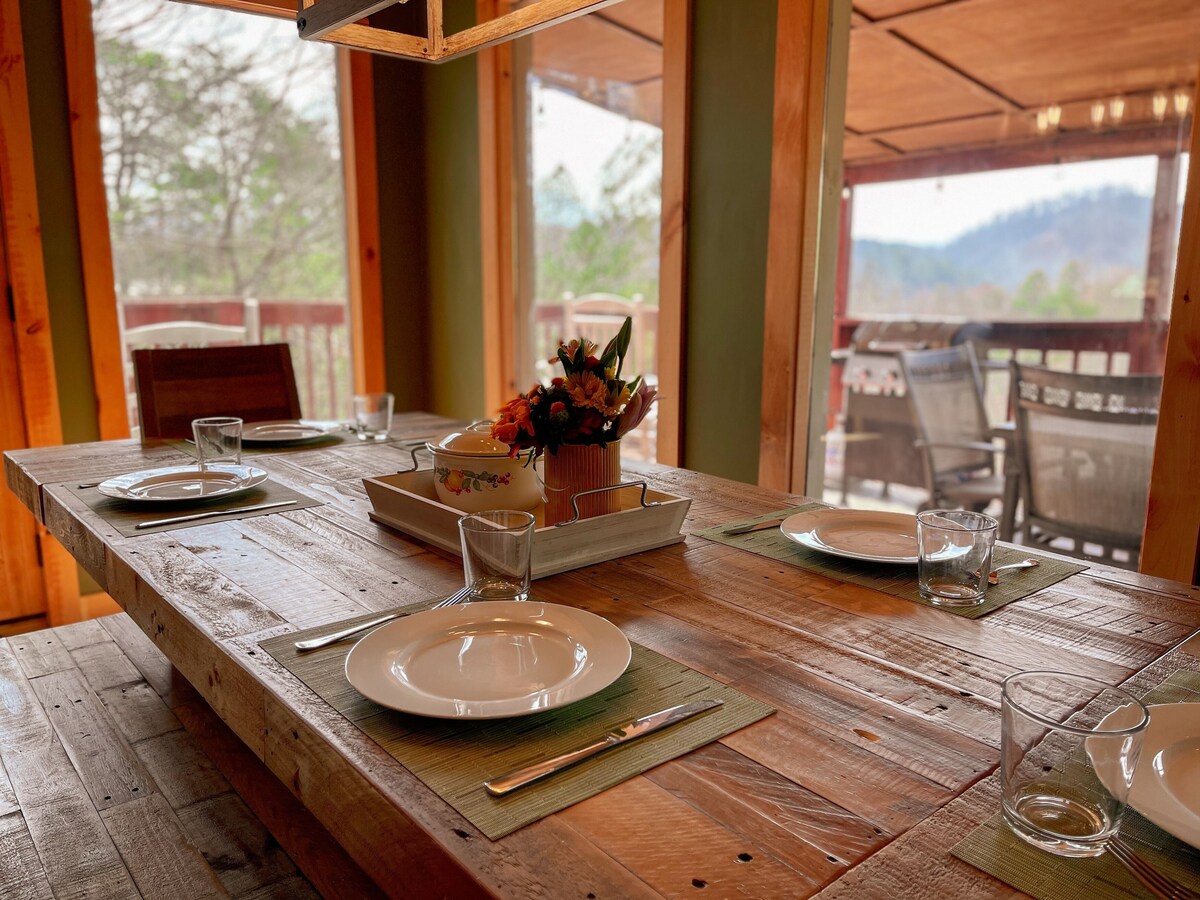 This is THE most spectacular view in the entire Smoky Mountain area! The cabin sits on a 1/2 acre lot, has wrap around porch, 1 king bed, 1 queen bed, a set of full-sized bunk beds, a queen sofa bed, 3 HDTVs with Roku streaming and a gorgeous Mountain View. High speed Wi-Fi to ensure you can stay connected during your stay in the mountains. Just 3 miles off the strip of Pigeon Forge! Brand new appliances, flooring, and kitchen countertops. Please read the entire listing before booking! Walker’s Retreat is a three-bedroom, three bathroom, air conditioned mountain home that can accommodate up to ten. You’ll find space for two vehicles in the private driveway. Walk in the front door, and you’ll find yourself transported to a cozy great room with a vaulted, beamed ceiling, washed in natural light and beauty pouring through the many large, open windows. If you feel like preparing a nice meal and spending the night together at home, there is a Publix Grocery just 10 minutes down the road. Set the table and cook your meal with everything you’ll need in the Walker’s Retreat kitchen. When you stay at Walker’s Retreat you can pack light knowing that there is a washer and dryer waiting for you in your mountain cabin. Your master bedroom is outfitted with a king-sized bed, nightstands with reading lamps, a dresser and a wall mounted TV for late-night viewing. You also have your own personal en-suite complete with a shower. Your second bedroom features a full-sized set of bunk beds. If you’re not traveling with children, the bunks are a great size for adults as well. Your third bedroom offers a queen bed with a nightstand and reading lamp, dresser and HDTV. Guests staying in this room will also have their own private en-suite complete with shower. The third bathroom comes complete with a shower/tub combo and is a standalone bathroom. You will enjoy complete and total privacy during your stay. We live in Florida and manage our cabin remotely, but have a team of wonderful folks nearby should you need any in-person assistance. While gazing out at the Smoky Mountains and the sun-draped trees from your deck, you may forget the you are only 10 minutes from the Pigeon Forge Parkway. The Parkway is home to the Titanic Museum, Alcatraz East Crime Museum, MagiQuest (an amazing fantasy experience for people of all ages), the Tangier Outlet Mall, mini golfing, go-cart tracks, great restaurants and much more. Nearby as well is the Smoky Mountain Arts & Crafts Community, an 8-mile trail of more than 120 galleries, shops and studios. Not to mention within 20 minutes you can reach both Dollywood (an amazingly fun theme park akin to Six Flags), and Parrot Mountain and Gardens, as well as downtown Gatlinburg, which is full of amazing attractions such as Ripley’s Aquarium, the SkyBridge and tons of restaurants and bars. And just a short drive from Gatlinburg is the Great Smoky Mountains National Park, a wonderful land of wildlife, wildflowers and waterfalls to behold on your many different tours and hiking trails. You'll definitely need a car to explore, and 4-wheel drive is preferable during our winter months, as the road can get icy and is quite winding and steep at some points! Our prices include all fees. No hidden fees.