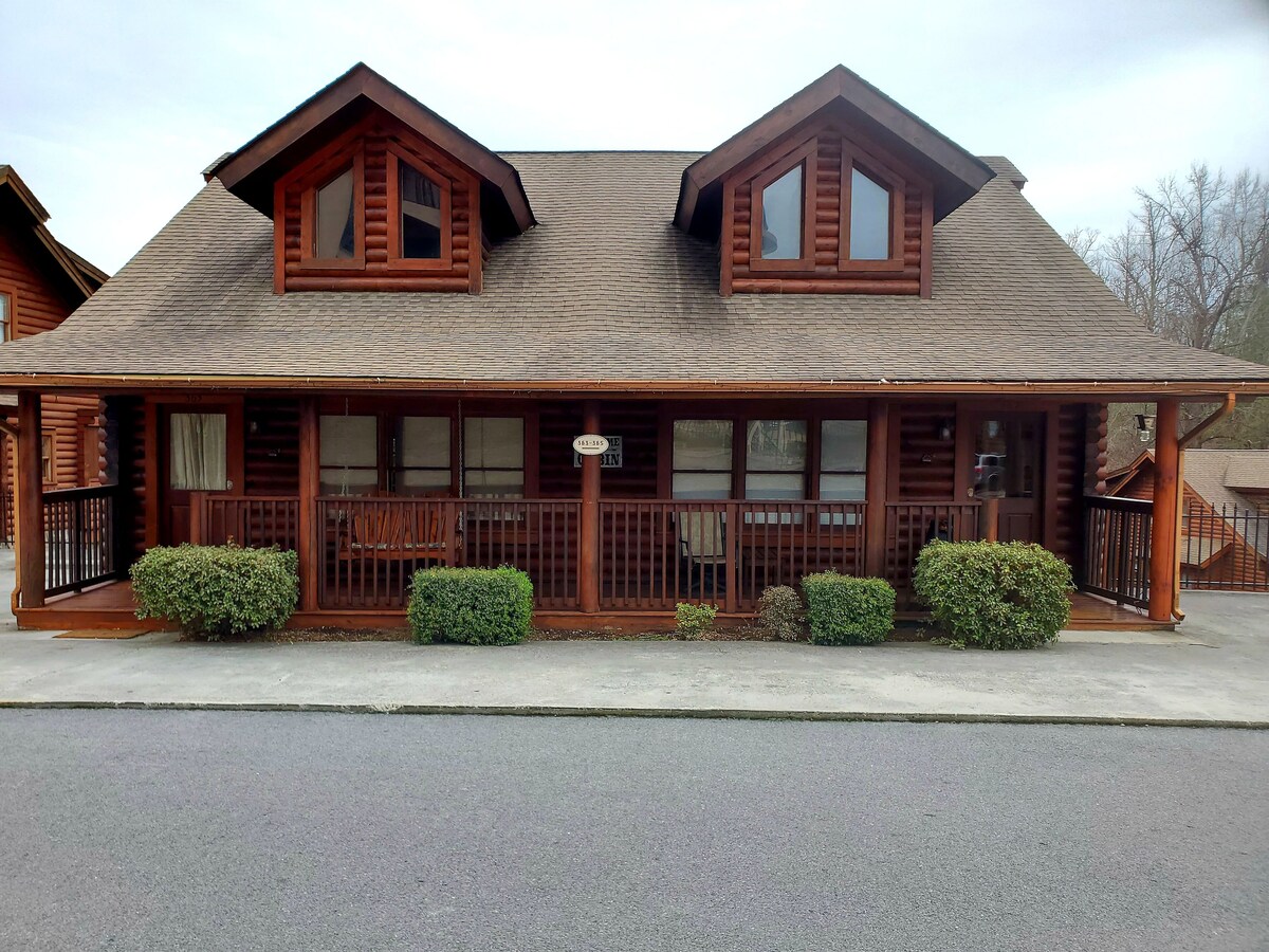 Large Cabin, 2 Master Bedrooms w/ King Sized Beds + 3 Convertible Beds, 3 Baths (Sleeps 8-9). Strong WiFi and Great Cell service at the cabin. Great location! Located in Big Bear Resort, this three level cabin has access to all resort amenities, is just a half mile from the parkway in Pigeon Forge, and 0.4 miles to grocery stores, shopping, and restaurants. No steep roads to get to cabin - and they are all paved! Main Level: living room with river stone gas fireplace, Cable TV, kitchen, dining area, washer/dryer, full bath, sofa/convertible bed, private screened in porch with hot tub. Upstairs Level: the master bedroom has a king size bed plus loft area with day bed, Cable TV, private bath, and private balcony Lower Level: fireplace, King Sized Bed + Convertible Queen size sofa bed, Cable TV, private bath, jacuzzi tub, kitchenette, and deck with gas grill. Separate entrance with parking No Smoking. We welcome Pets as long as you pay the Pet Fee ($39/night) here on VRBO. Owners are responsible for all damage caused by pets. Kid Friendly: We provide basic kid friendly accessories - a high chair, pack&play crib, a baby gate for the stairs, a baby monitor, and a few toys and games. Please clean them up afterwards if you use them! The Resort also offers a game room, fitness room, indoor and outdoor pools, and meeting facilities. Convenient to Gatlinburg, Wears Valley Road, Dollywood, Pigeon Forge, Cade's Cove and Townsend, TN. Private, yet close to it all! Our deluxe three-floor cabin has all the amenities needed to make any trip to the beautiful Smoky Mountains a dream vacation. Furnished to make your stay comfortable, the cabin features a fully-stocked kitchen & sleeping accommodations for 8-9 people. Ample parking available outside both cabin entrances. The cabin is located in the Big Bear Lodge & Resort and is easily accessible from Wears Valley Road and Pigeon Forge Parkway....with no steep or winding roads to drive! Stay in and relax or visit the many exciting attractions in Pigeon Forge and Gatlinburg. Our cabin is located right off the Parkway at Light #3/Wears Valley Road. It is part of the Big Bear Lodge & Resort on Valley Heights Drive. Our cabin is a half mile off the Parkway, 4.5 miles to Dollywood & 15-20 minutes from Gatlinburg! Keywords: cabin, resort, duplex Our prices include all fees. No hidden fees.