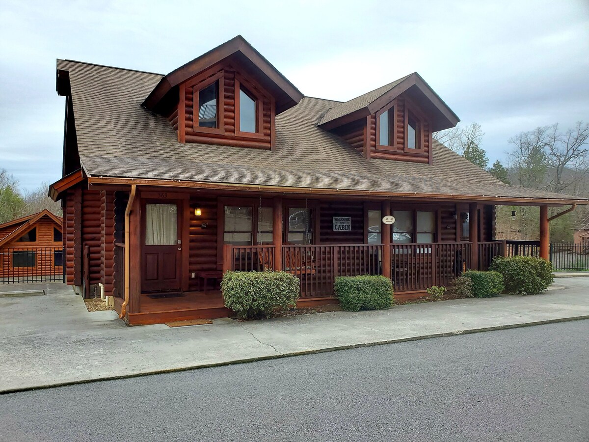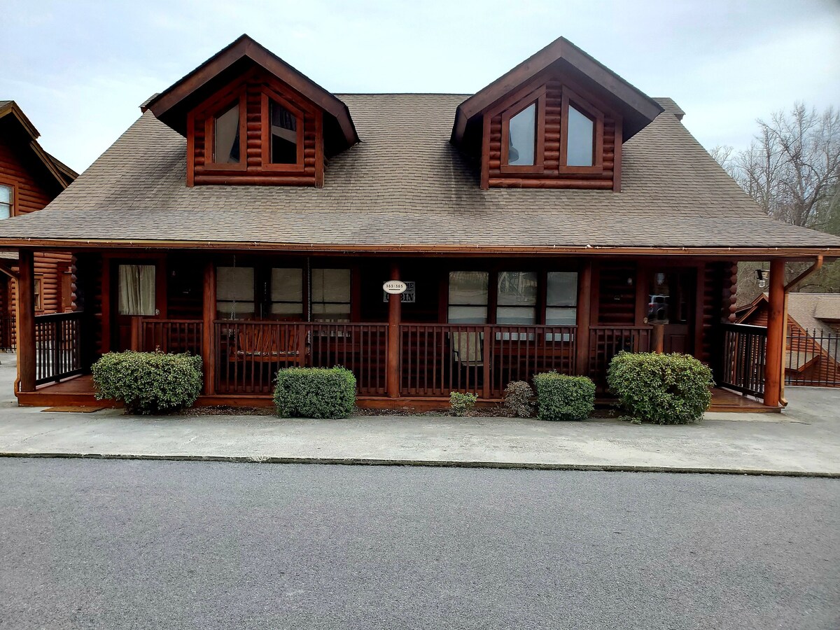 Large Cabin, 2 Master Bedrooms w/ King Sized Beds + 3 Convertible Beds, 3 Baths (Sleeps 8-9). Strong WiFi and Great Cell service at the cabin. Great location! Located in Big Bear Resort, this three level cabin has access to all resort amenities, is just a half mile from the parkway in Pigeon Forge, and 0.4 miles to grocery stores, shopping, and restaurants. No steep roads to get to cabin - and they are all paved! Main Level: living room with river stone gas fireplace, Cable TV, kitchen, dining area, washer/dryer, full bath, sofa/convertible bed, private screened in porch with private Hot Tub. Upstairs Level: the master bedroom has a king size bed plus day bed, Cable TV, private bath, and private balcony Lower Level: fireplace, King Sized Bed + Convertible Queen size sofa bed, Cable TV, private bath, jacuzzi tub, kitchenette, and deck with gas grill. Separate entrance with parking No Smoking. Pets are allowed as long as you pay the pet fee ($39/night) here on VRBO. Owners are responsible for any damage caused by pets. Kid Friendly: We provide basic kid friendly accessories - a high chair, pack&play crib, a baby gate for the stairs, a baby monitor, and a few toys and games. Please clean them up afterwards if you use them! The Resort also offers a game room, fitness room, multiple pools, and meeting facilities. Convenient to Gatlinburg, Wears Valley Road, Dollywood, Pigeon Forge, Cade's Cove and Townsend, TN. Private, yet close to it all! Our deluxe three-floor cabin has all the amenities needed to make any trip to the beautiful Smoky Mountains a dream vacation. Furnished to make your stay comfortable, the cabin features a fully-stocked kitchen & sleeping accommodations for 8-9 people. Ample parking available outside both cabin entrances. The cabin is located in the Big Bear Lodge & Resort and is easily accessible from Wears Valley Road and Pigeon Forge Parkway....with no steep or winding roads to drive! All paved roads - no gravel! Stay in and relax or visit the many exciting attractions in Pigeon Forge and Gatlinburg. Our cabin is located right off the Parkway at Light #3/Wears Valley Road. It is part of the Big Bear Lodge & Resort on Valley Heights Drive. Our cabin is a half mile off the Parkway, 4.5 miles to Dollywood & 15-20 minutes from Gatlinburg! Our prices include all fees. No hidden fees.