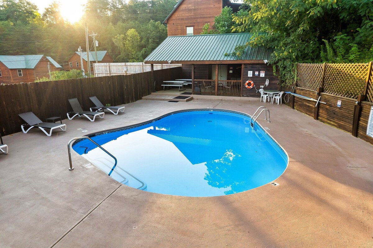 Bears Den by My Smokies Getaway Bears Den is a beautiful and spacious 3 level cabin with four bedrooms each with their own private bathroom- Perfect for both families and couples! It is located in the upscale community of Arrowhead Resort, just a short 1 mile drive from all the fun at the strip. The cabin is very comfortable and features a large hot tub, 5 large smart TV's, Hi-Speed WIFI, a game room and a beautiful seasonal view! There's a seasonal community pool too! This cabin features 3 KING suites. . On the Upper level you will find 2 bedrooms each with a King bed and private bathroom. On the main floor you will enjoy the fully equipped kitchen and spacious living area. Unlike most cabins in the area, the gas fireplace is operational all year round and there is enough seating for everyone to eat and relax together! There is also another bedroom with King bed on this floor plus a bathroom (opens to the bedroom and the kitchen). Its perfect for the grandparents! There is a sleeper sofa in the living room as well. On the lower level you will find the 4th bedroom with two log twin bunk beds- Kids love it!. The connected private bathroom has a whirlpool tub. The game room with Foosball and the outdoor hot tub are located on the lower level as well. Relax on the two covered decks and a full covered front porch and enjoy the rockers and 2 porch swings; there is room for everyone to have outside privacy. The resort pool (open Memorial- Labor day) is just a one minute ride or five minute walk from the cabin. There is level parking in front of the cabin that can accommodate 4-5 vehicles depending on size. The kitchen is equipped with a drip coffee maker as well as a Keurig machine. We do not provide K cups so be sure to bring some of your own! The HOA pool is open seasonally from Memorial- Labor day from 12pm -9pm (closed Mon mornings for routine maintenance). There is a code to the pool area that is provided at check-in. For your convenience we have a pack n play, and high chair in the cabin. Please note that the gas Fireplace is only operational from Oct 1 - March 31 as are all cabins in the area. TVs: The cabin features 5 Smart TVs. There is no cable. Absolutely no Smoking! If you smoke in the cabin you will lose your security deposit. Dogs are welcome to stay in the cabin! Up two dog max is allowed to stay in the cabin. Other type of pets, including cats, are NOT permitted. If you choose to bring a pet(s), there will be a pet fee of $150. You must disclose if you are bringing a pet(s) as this fee is added on separately after booking. Pets MUST be house broken, crated if left unattended and must not shed excessively. All pets are solely the guests responsibility; guests are responsible for their pets at all times as well as for any damage the pet(s) may cause. Guests are also responsible to ensure that any litter is cleaned up. Potentially dangerous breeds such as German Shepherds or Pitt Bulls are not allowed. **NOTE! This cabin is winter friendly but we do not offer refunds for weather. Please check the weather before you come and be prepared with all-wheel-drive and groceries should it snow. Access: The front door has an electronic lock, you will be provided the code a few days before check-in. BBQ: There is a charcoal BBQ located in front of the cabin to the right of the porch. Please note that it's just not feasible to clean this after every guest, and so you may have to clean it before use, depending on how the last guest left it. We do not provide charcoal. Cell service is generally good in the cabin. There is a landline with free local and long distance (to USA and Canada) as well. We provide a starter set of coffee, laundry detergent, dishwashing powder, dishwashing liquid, paper towels, 1 toilet paper per bath, organic body soap, Mountain Fresh Nourishing shampoo, and trash bags per reservation. There is no daily housekeeping service. Well what are you waiting for? This cabin is well equipped and very comfortable. Bring your family to Bears Den for that vacation or family reunion you've always dreamed of!:) Our prices include all fees. No hidden fees.