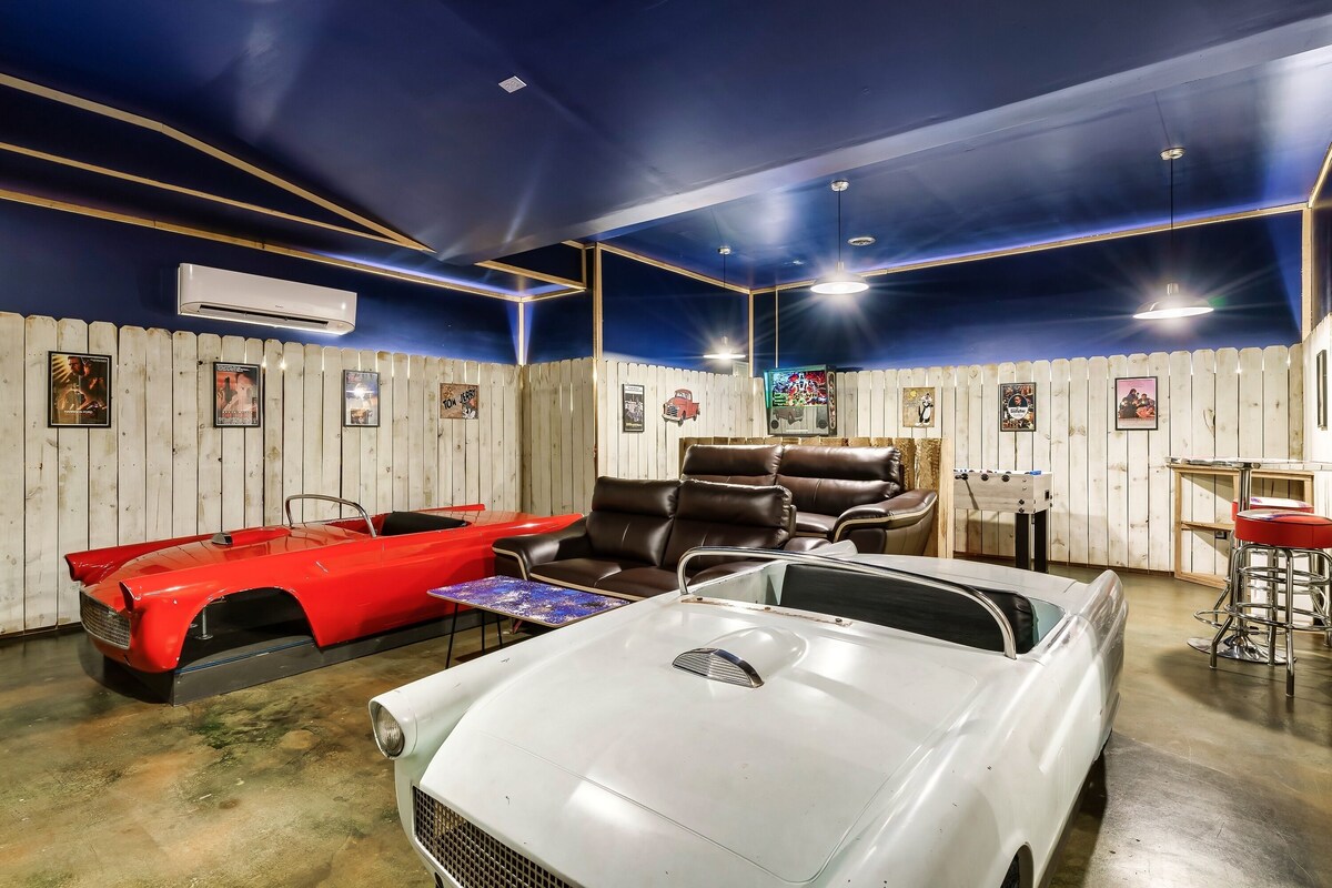 This is an owner operated cabin. Any questions, comments, concerns you may have before or during your stay will be handled by Helene. Heart of the Valley is a 4 bedroom, 4 bathroom cabin located in Wears Valley area that currently sleeps up to 13 people! The cabin is easily accessible, with a flat drive and gravel driveway. It has amazing views of the valley and surrounding mountains. The front deck gives you sunrise views and sunset views from the back deck. Great news! The pool at Honeysuckle Meadows is opening a whole month earlier than usual this year, April 26th! Book a stay and make sure you get to enjoy a pool with the view of the Smokies all around. Entirely renovated ,complete with swinging benches around the fire pit, a play set, a mini golf area, a hot tub, and even more indoors! When you enter the cabin you walk into a large open space, on the right you have the living room with a wood burning fire place and large TV. In the back of the room, on the right, is the newly renovated kitchen (fully equipped and all new appliances) with a nice bar area. To the left of the kitchen, you have the dining area (with views of the mountains). 2 bedrooms are located on that same level (new king beds and mattresses, new TV') one with an en suite bathroom and another bathroom on that main level. The upper level hosts a real bedroom with one king bed and one twin bed (new mattresses and new TV) and en suite bathroom, and a loft with great views of the valley and the surrounding mountains and a pool table. The large lower level has one theater/game room and one bedroom (2 sets of bunk beds) and and a fourth bathroom. First room on the lower level is the bunk bed room and the second one (access through the bedroom) is a large theater/game room (with outside access) with virtual pinball, arcade game and Foosball table. The theater room is a 60's diner themed media room with vintage cars! There is a a nice sized yard in the back of the cabin (from there you can access a nice community to walk the dogs) and on the right side we have a fire pit area (with swings) and play set. On the left side of the cabin, a putt putt will be waiting for you :) Plenty parking in front of the cabin. We bought this cabin in June 2020 and finished renovation December 2020. Furniture, mattresses, games, appliances, etc.. are all new. Our prices include all fees. No hidden fees.
