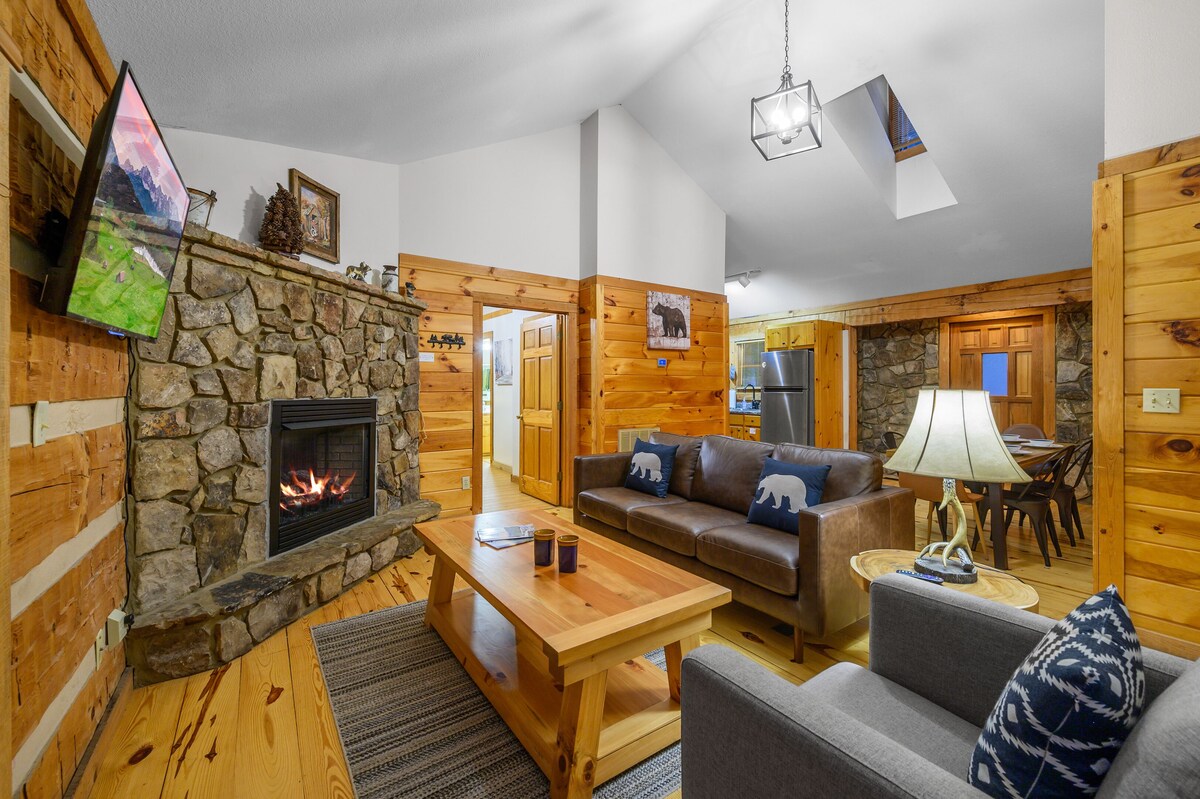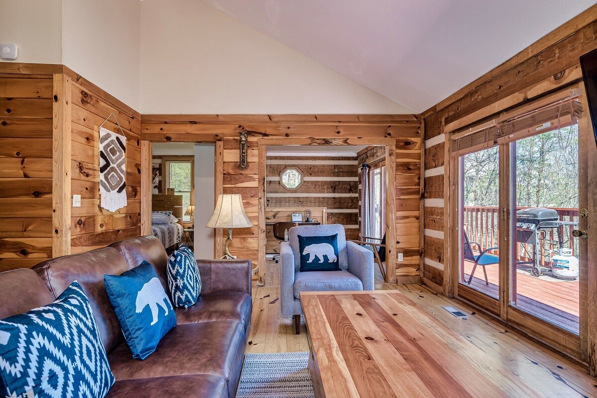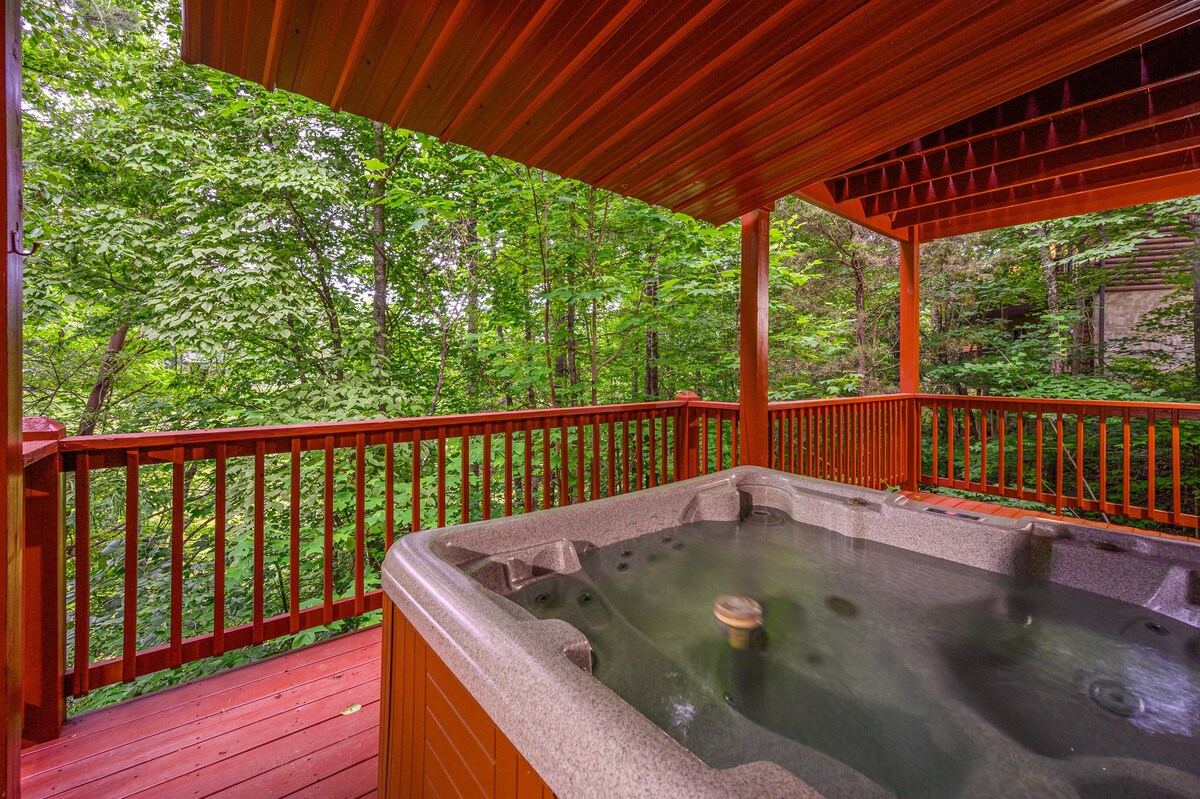 A newly renovated, family-friendly cabin nestled away in the woodlands just MINUTES away from downtown Pigeon Forge where you can find countless of attractions, shops and restaurants! This Southern gem is spacious enough for up to 10 guests looking for the ideal balance between relaxation and fun-filled activities and includes a dedicated workspace and fast Wi-Fi for remote working, four fabulous en-suite bedrooms, exercise equipment, a games room and hot tub! You’ll be welcomed into this multi-level Pigeon Forge cabin by an abundance of tall trees, fresh air and the sound of birds chirping. On arrival, you will have access to four parking spaces and the entire cabin to yourselves. The living room is the heart of the home with its warm wooden panelling, ambient stone fireplace and comfortable sofa and armchair. Gather together and relax here after a long day of hiking or visiting local attractions and watch your favourite shows on the Smart TV offering Hulu, Netflix and Prime Video (own passwords required). The kitchen is cozy but comes equipped with everything you such as a dishwasher, fridge/freezer, microwave, stove, oven, coffee maker, and blender. Enjoy your meals with your favorite friends or family at the six-seat dining table or BBQ on the deck and enjoy alfresco dining under the stars. The cabin is work-friendly and includes a dedicated office space equipped with super-fast 400mbps Wi-Fi. There is a washing machine and dryer available. Want to exercise while you're here? We've got you covered with free weights (10lb, 15lb) and a premium spin bike. It's not a Peloton but has magnetic resistance, and you can stream your favorite workouts from the Peloton App or other apps on the Smart TV in the same room. There are four spacious, en-suite bedrooms to choose from. Two are located on the ground floor and two are on the first floor. Three rooms include king-size beds and access to the balconies. One room features a bunk bed, queen sofa bed, and air hockey table. Every room has a large Smart TV. The two balconies span the entire length of the cabin and are the ideal place to enjoy a morning coffee and to connect with nature. The top level offers great views into the woods and the lower balcony includes an inviting hot tub where you can treat yourself to a glass wine and embrace the serene surroundings. When you’re ready to explore the rest of what Pigeon Forge has to offer, head out a mile away to the 5-mile Parkway strip packed with some of the best local restaurants, shops and attractions such the Titanic Museum, Ripley’s Aquarium, Dolly Parton’s Stampede and The Island theme park and entertainment complex. *Guest access* - Guests will be able to self check-in with a smartlock code (provided before arrival). - All guests must be 25+ with the exception of children with their parents. - Parking for a maximum of 4 vehicles - Max of 10 people at all times due to fire codes. If you have more people than agreed upon, you may be asked to leave without a refund - The first floor of the home is accessible with a ramp on the front porch. The lower level of the home is stair access only *Other things to note* - No smoking - The hot tub is for guests 18 and over only. Use of the hot tub is at your own risk. - The exercise bike is not a Peloton but it has magnetic resistance for a great ride. - For your protection, there is one camera at the front entrance facing the driveway. If you touch or tamper with the cameras you will be asked to leave the property immediately. - Our cabin backs up to woods. We do pest control every month and do our best to keep critters away, but there’s a chance that some insects will get inside. If you’re afraid of seeing bugs, this cabin might not be a good fit. - Long stays will require a cleaning every 2 weeks (complimentary beyond the initial cleaning fee) - We recently switched to a charcoal grill at our property. Please bring your own coals, and dispose of used coals in the nearby ash bucket. Do not put any coals on the ground due to fire hazard risks! - The following will be provided at the start of your stay: 2 rolls of toilet paper per bathroom, 2 rolls of paper towels, dishwasher pods, dish soap, laundry pods, dryer sheets, hand soap. Expect to restock additional items on your own. Our prices include all fees. No hidden fees.