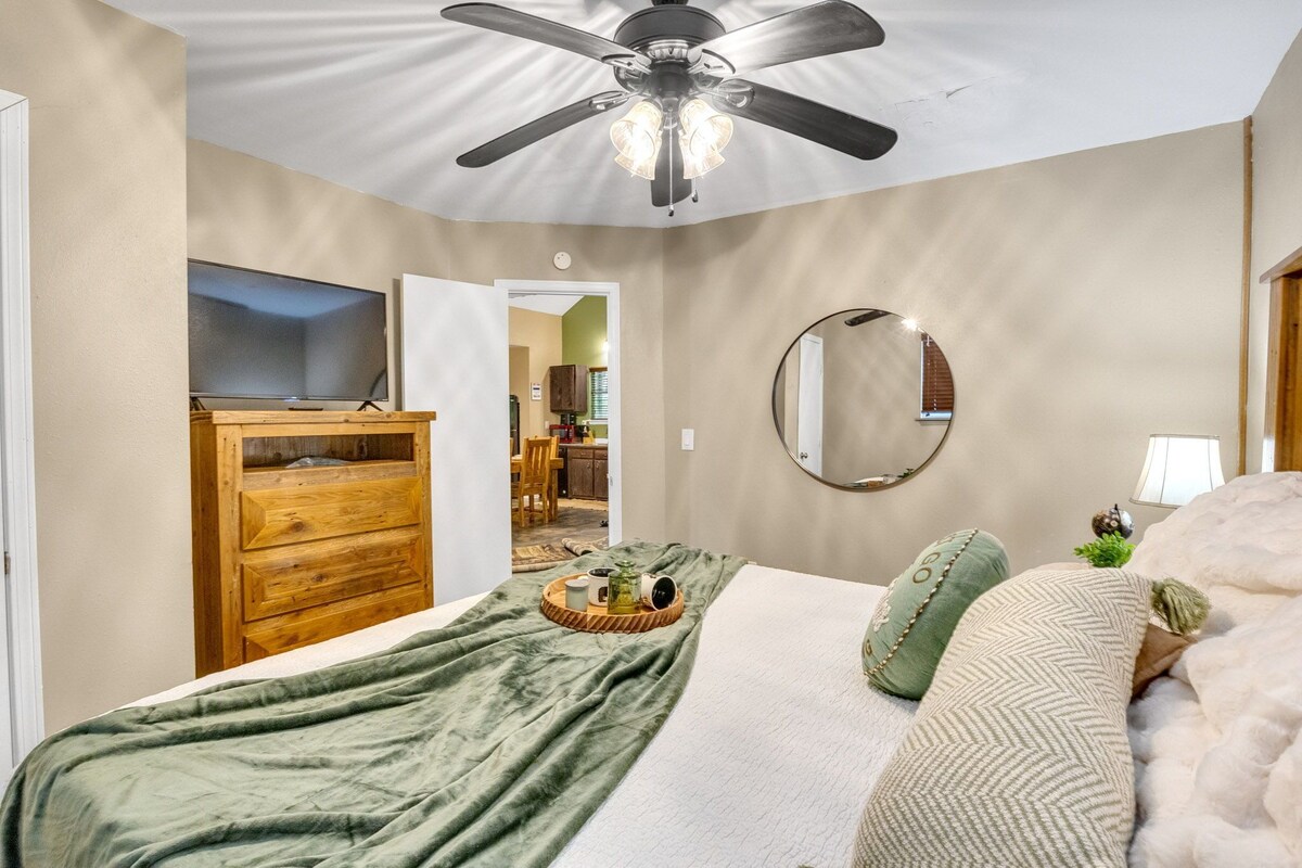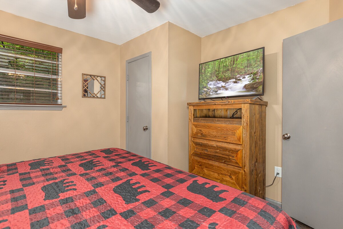 Cozy, Rustic Fun in the Smokies – FREE Attraction Tickets Every Day! Escape to a secluded, rustic retreat with all the comforts of home. Nestled in the foothills of the Great Smoky Mountains, this charming cabin blends old-fashioned fun with modern convenience. With soaring ceilings and a cozy, campy feel, you’ll be transported to a simpler time—while still being just minutes from top attractions like Dollywood, Pigeon Forge, and the Great Smoky Mountains National Park. A fantastic value, this private cabin experience includes free attraction tickets, making your getaway both affordable and unforgettable. Sleeps 6+ | Pet-Friendly w/fee of $84.56 each | Private Hot Tub | Wraparound Deck with Rockers | Foosball Table | Fully-Stocked Kitchen | Xfinity Wi-Fi The Cabin Experience: *Two king bedrooms on the main level for easy access *Loft hideaway with a queen bed and futon—perfect for kids or an extra guest *One full bath on the main level with a shower/tub combo and a jetted tub in the loft Classic cabin vibes with rustic, campy charm *Wraparound covered deck—the perfect place to sip coffee in the crisp mountain air *Full kitchen with appliances, pots and pans, dishes, silverware, coffee makers, ready for cooking! *Private hot tub on the screened-in deck to use in any weather *2 person retro Arcade game with over 60 classic games like Pac-Man, Space Invaders, etc *Foosball table and entertainment loft for a little friendly competition *Wi-Fi and streaming TV with Xfinity Internet—stay connected while you unwind *Pet-Friendly! Bring your furry friend along for the adventure. The pet fee is $84.56 per pet per stay. No pets on furniture, please. Need more space? We also manage the almost identical two-bedroom cabin next door—perfect for group trips! Find both on our website under Bear Creek Hollow by Mountain Time Cabin Rentals. The Perfect Location – Secluded, Yet Close to Everything Tucked away in the trees, but just five miles from Pigeon Forge and only four miles from Dollywood, this cabin offers the best of both worlds. Spend your days exploring hidden hiking trails, whitewater rafting, or strolling through the Old Mill District, then return to your peaceful mountain hideaway for a quiet evening under the stars. Secluded in the woods but close to the action! The drive to the cabin includes paved mountain roads with some hills, but in normal conditions, any car can reach the property with no issues. Wi-Fi calling available through Xfinity Wi-Fi. Bonus: Free Attraction Tickets Each day of your stay, you’ll receive one free ticket per attraction from an incredible lineup, including: Pirates Dinner Show, Comedy Barn, Country Tonite, Dollywood, Splash Country, WonderWorks, Alcatraz Crime Museum, Legacy Ziplines, Big Creek Whitewater Rafting, Rocky Top Mountain Coaster, Paula Deen’s Lumberjack Adventure, Soaky Mountain Water Park, Five Oaks Riding Stables, and more. (Subject to availability and season.) Cancellation Policy Cancel 30+ days before check-in: 100% refund Cancel 14 days before check-in: 50% refund of rent plus all fees Book your stay today and experience the nostalgic charm of a Smoky Mountain getaway! Pet friendly with prior approval and an added fee $84.56 pet fee per pet. Please note, we do not include the pet fee in the nightly price since not every guest has a pet, and some have more than others. Let us know how many pets you have, make sure you follow the pet policy, and we will request the additional pet fees of $84.56 per pet. Pet policy: Have your pet's vaccinations up to date and treat for fleas. Be aware that Tennessee has a lot of ticks, so check yourselves and your pets after going outside. We ask that you crate your pet when you leave it alone in the cabin and bring a blanket to put down on the furniture if your pet sits on it, though we prefer you bring the pet's own bed for it to rest on. Please clean up excessive pet hair if your pet is shedding. All pets must be leashed at all times while outside. Guest is responsible for cleaning up any/all pet refuse. Pet must not cause damage to premises or furnishings. If damages are caused, the cost of the damage will be requested to be reimbursed by the guest. Guest should prevent pets from producing excessive noise at a level that disturbs neighbors. Homeowner assumes no responsibility for illness or injury that may incur to pets or humans while on the premises. The Guest shall be solely responsible for the pet while on the property. Our prices include all fees. No hidden fees.